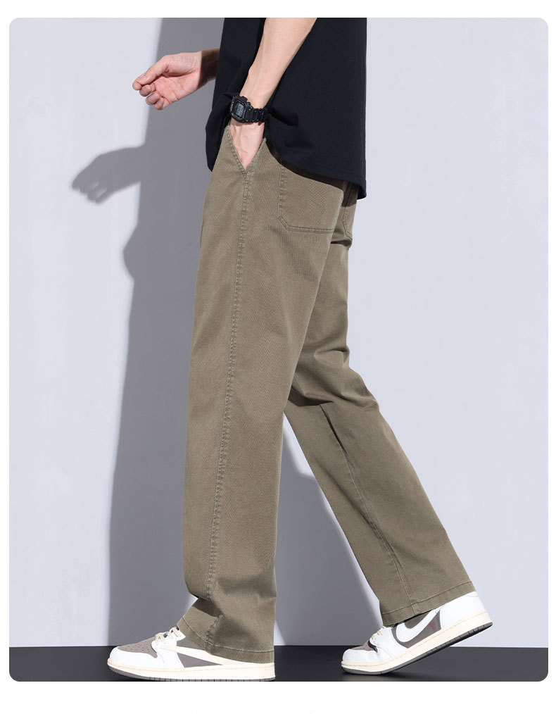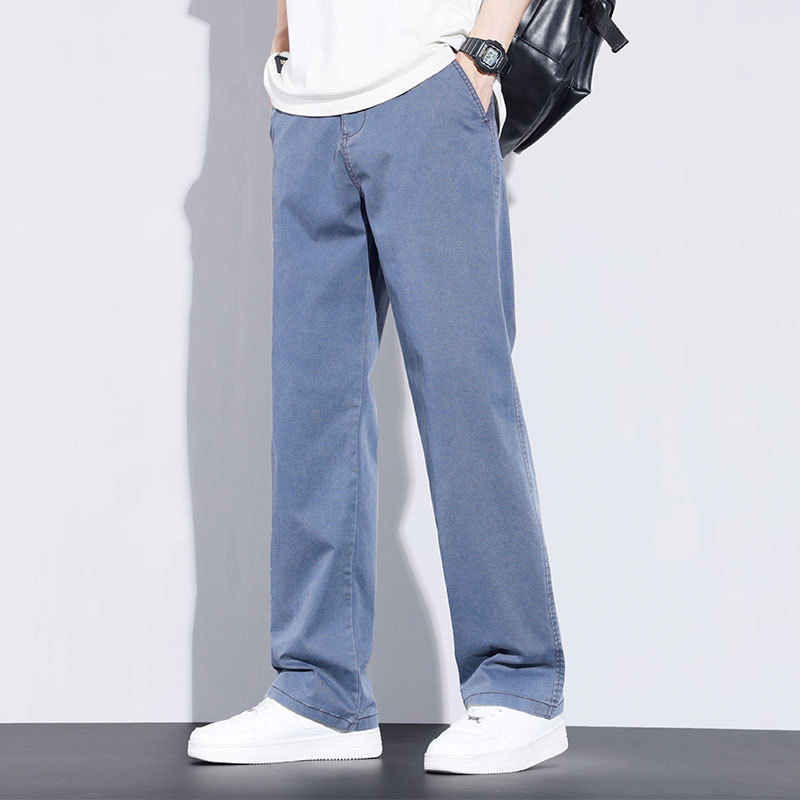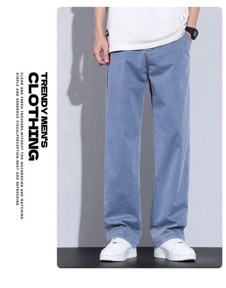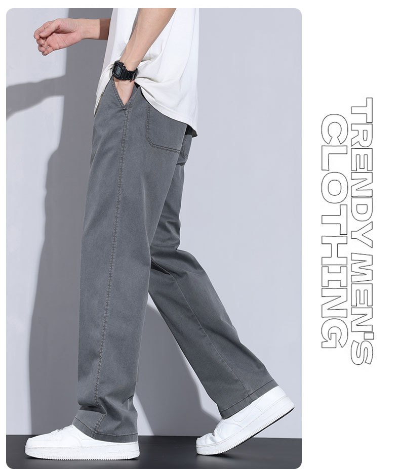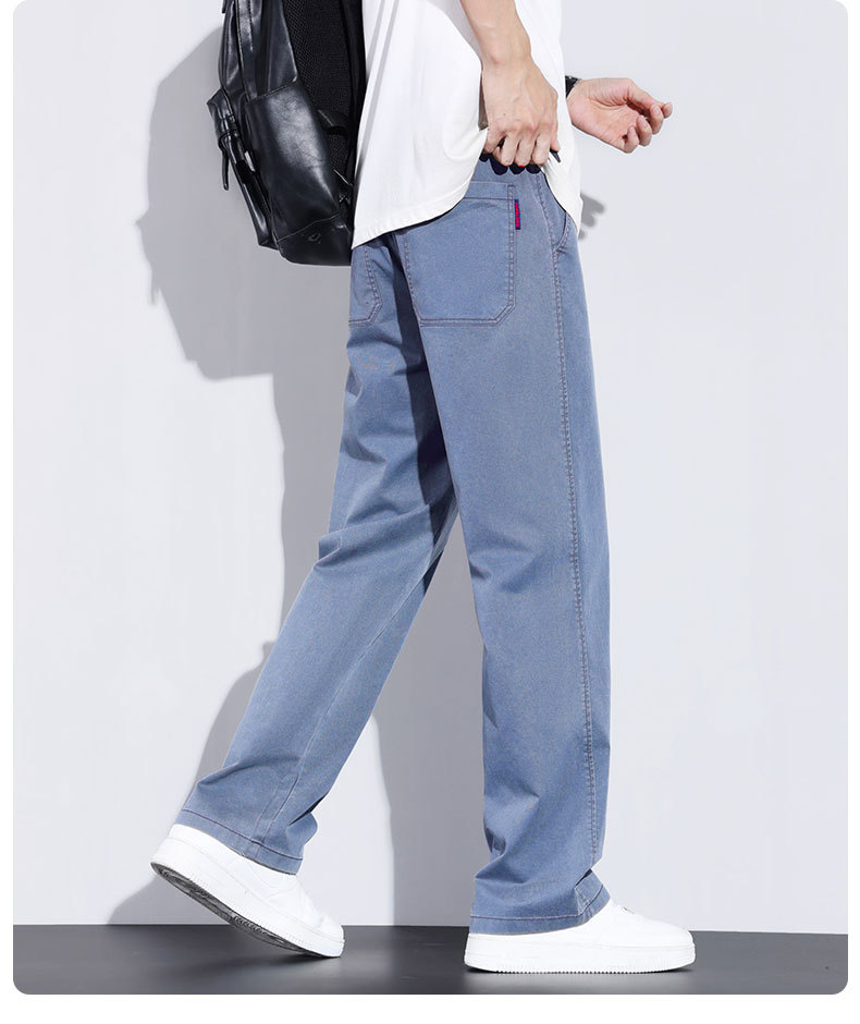 무료 배송 남성용 텐셀 캐주얼 바지 여름 얇은 느슨한 스트레이트 와이드 레그 바지 남성용 아이스 실크 통기성 스포츠 바지