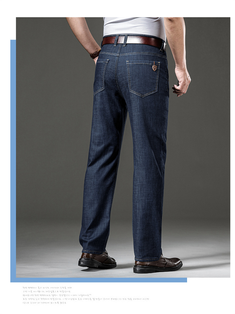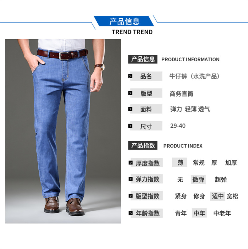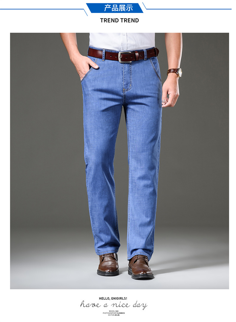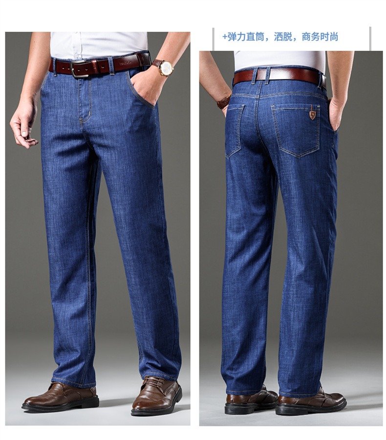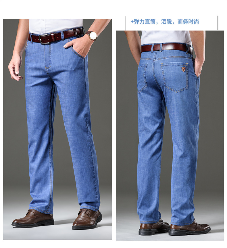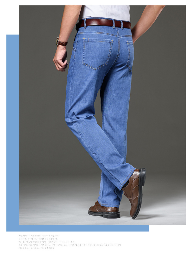 무료 배송 [아이스 실크] 라이트 워시 스트레치 청바지 남성 비즈니스 캐주얼 루즈 스트레이트 바지 남성스토어 가기