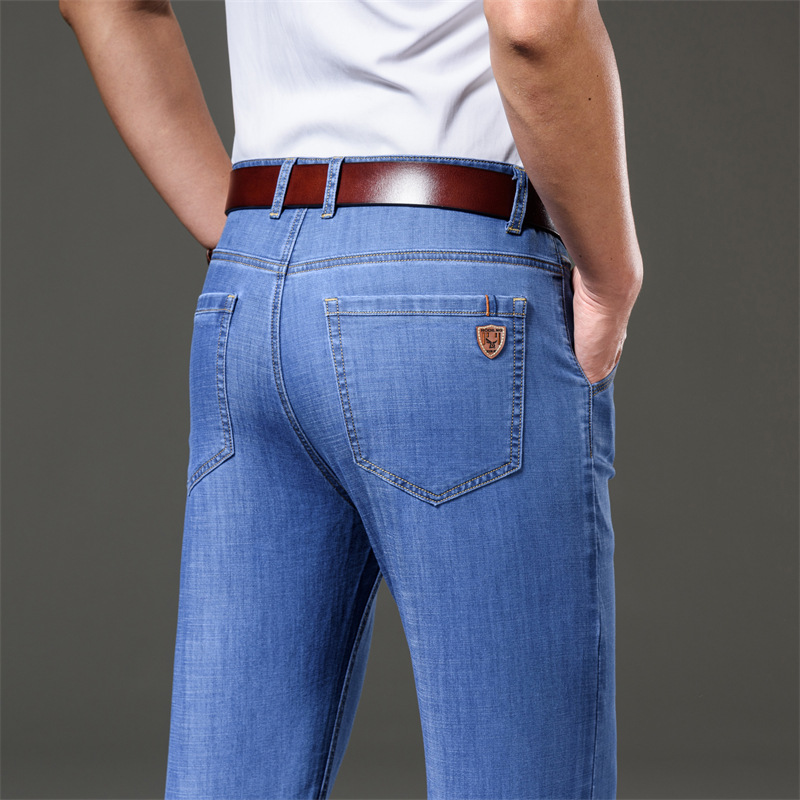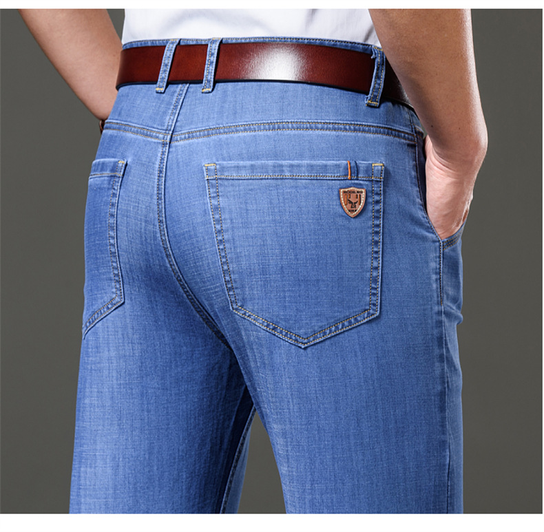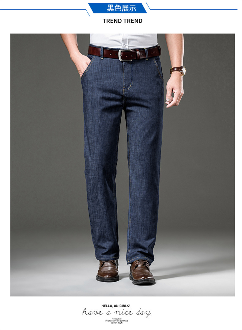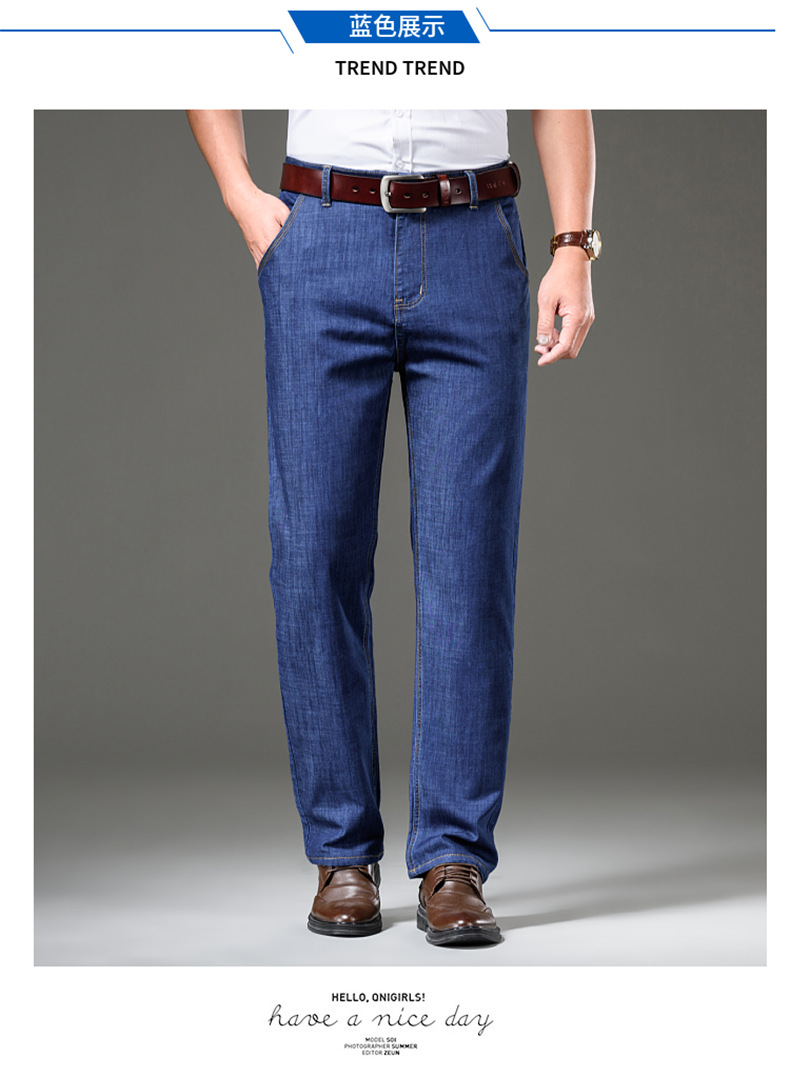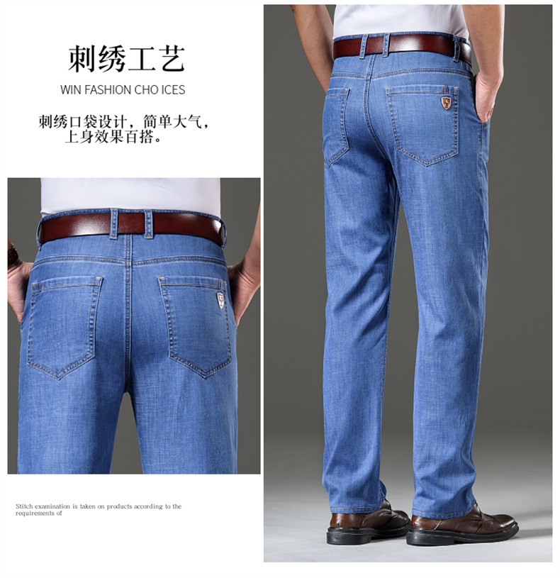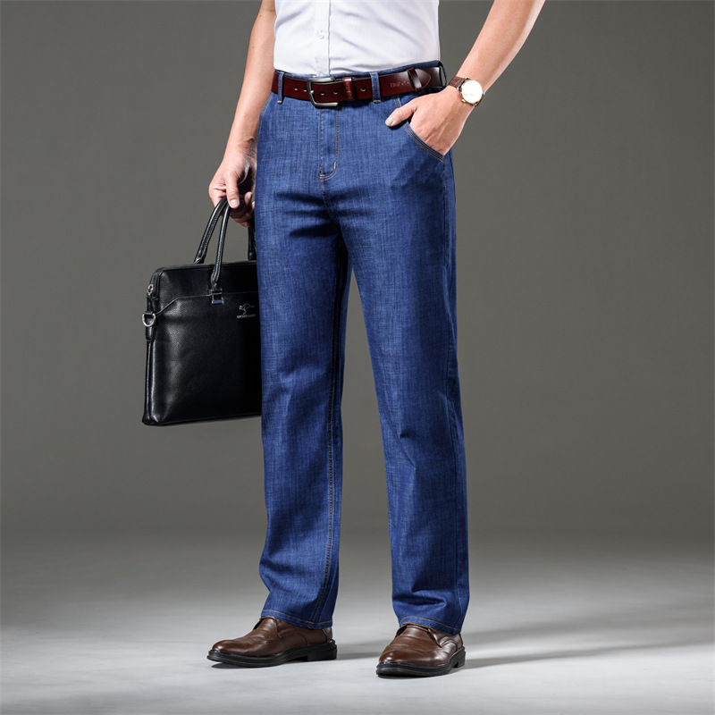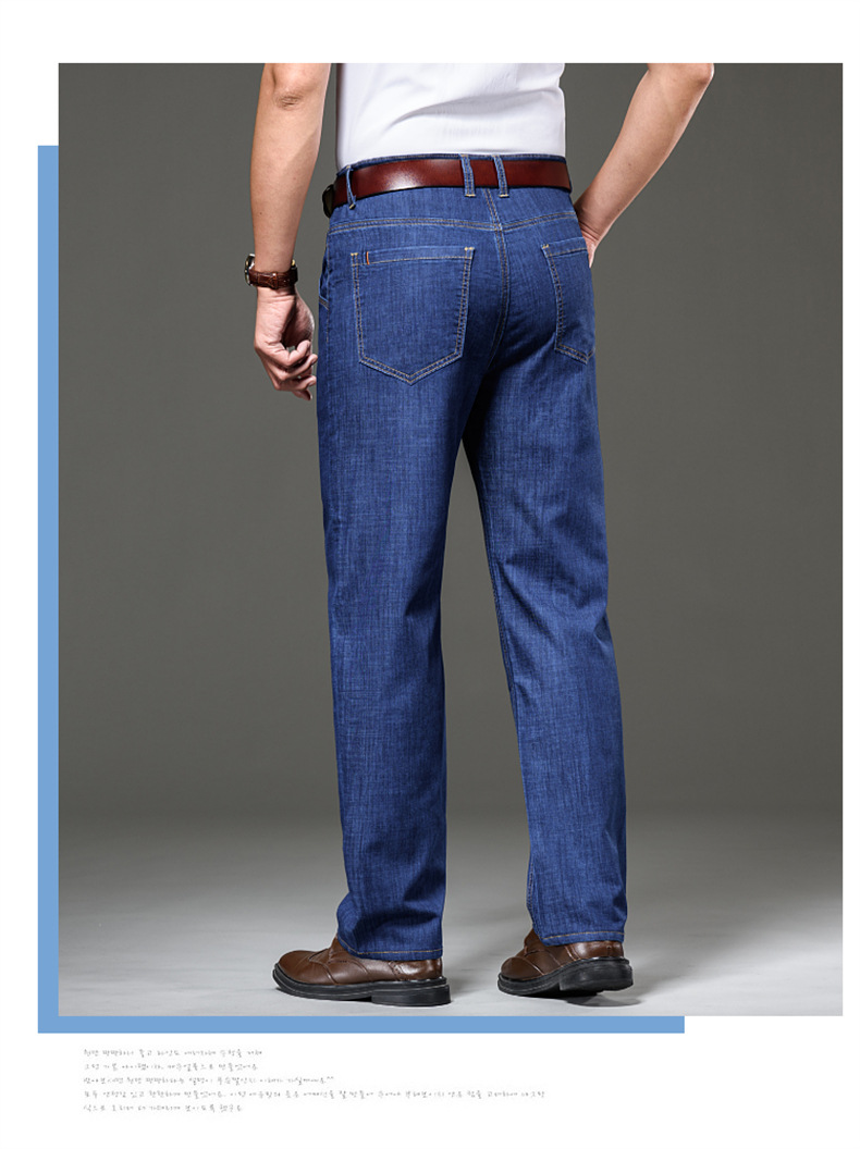 무료 배송 [아이스 실크] 라이트 워시 스트레치 청바지 남성 비즈니스 캐주얼 루즈 스트레이트 바지 남성스토어 가기