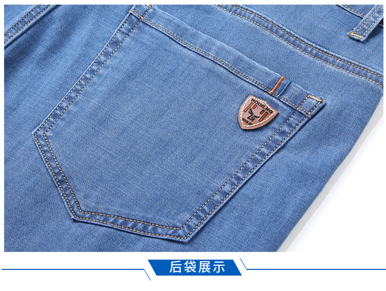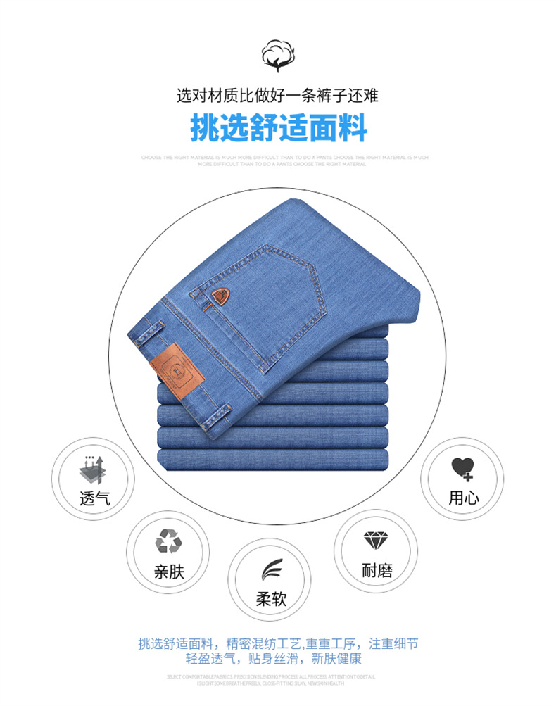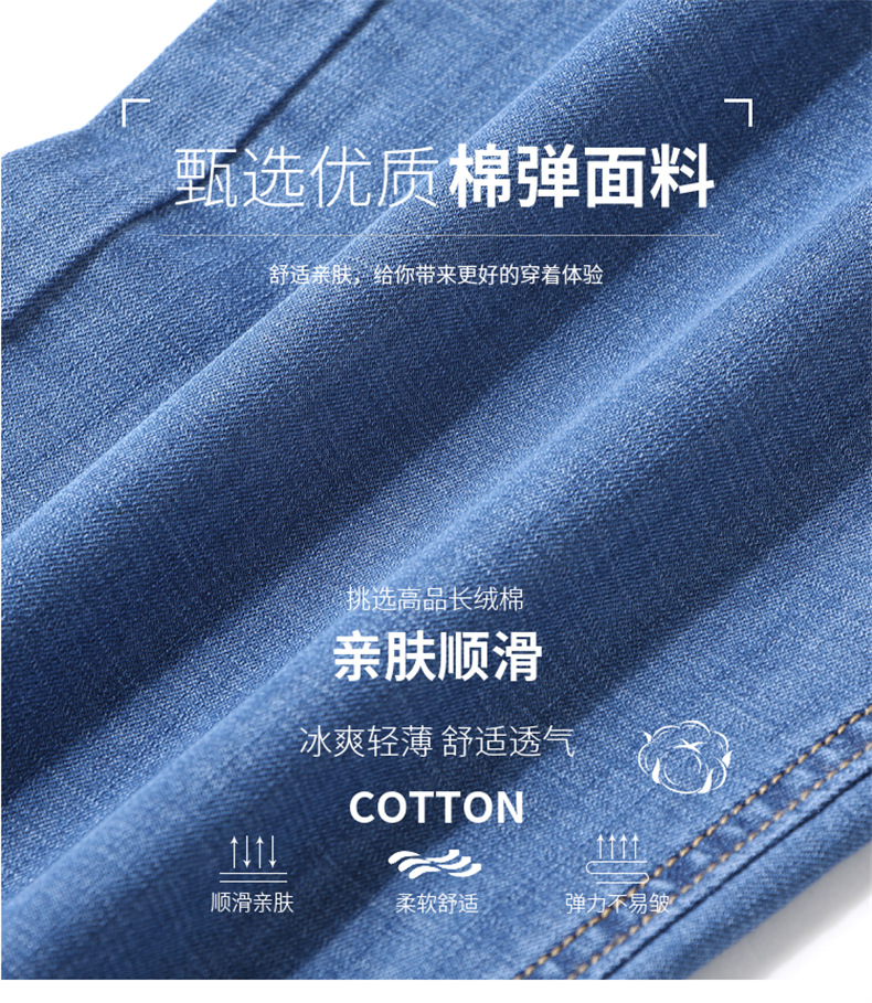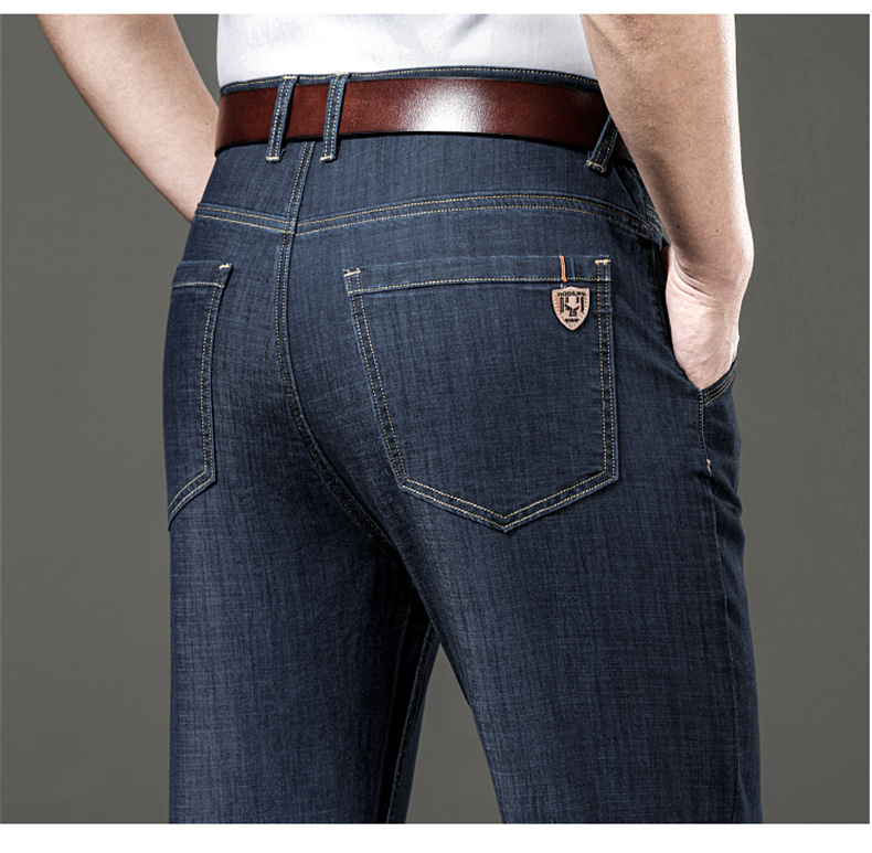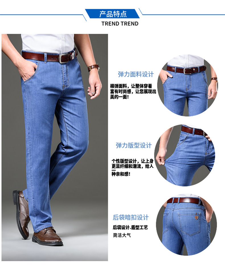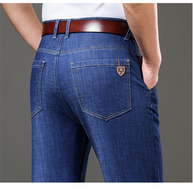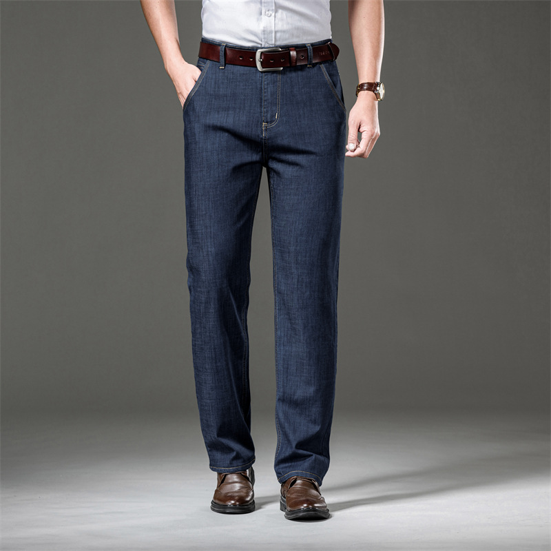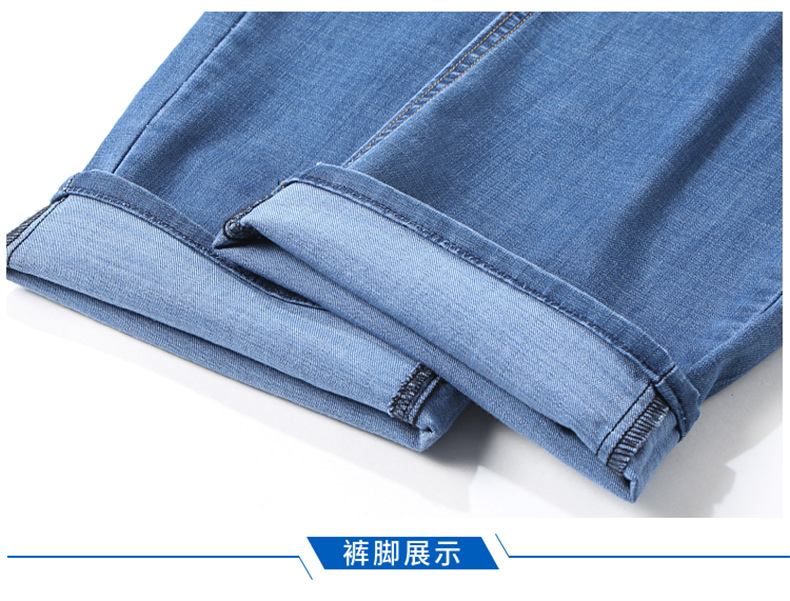 무료 배송 [아이스 실크] 라이트 워시 스트레치 청바지 남성 비즈니스 캐주얼 루즈 스트레이트 바지 남성스토어 가기