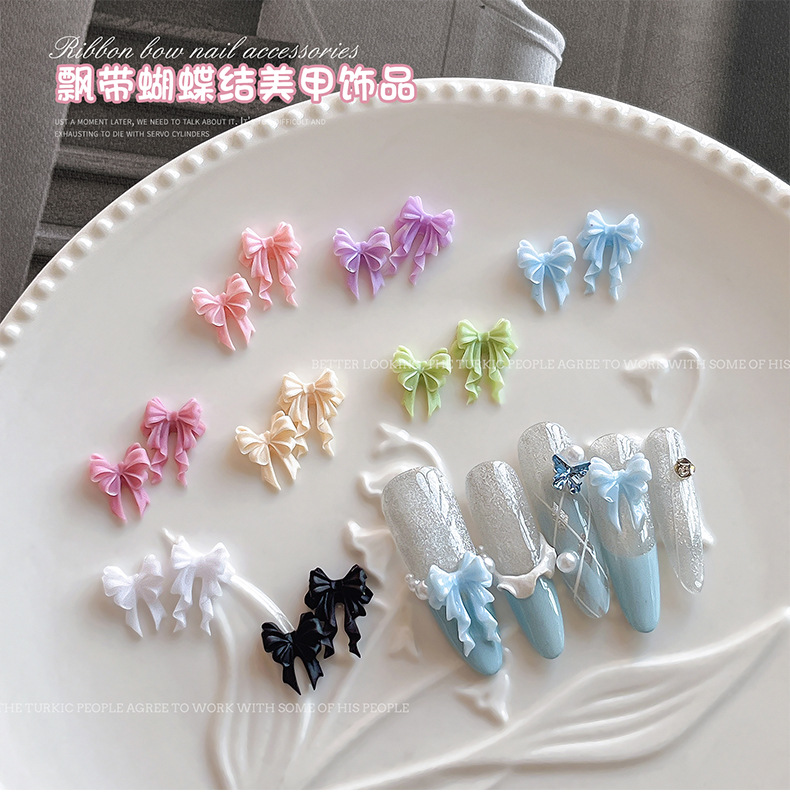 활 네일 장식품 마카롱 컬러 3 차원 혼합 리본 나비 넥타이 수지 손톱 국경 장식 도매
