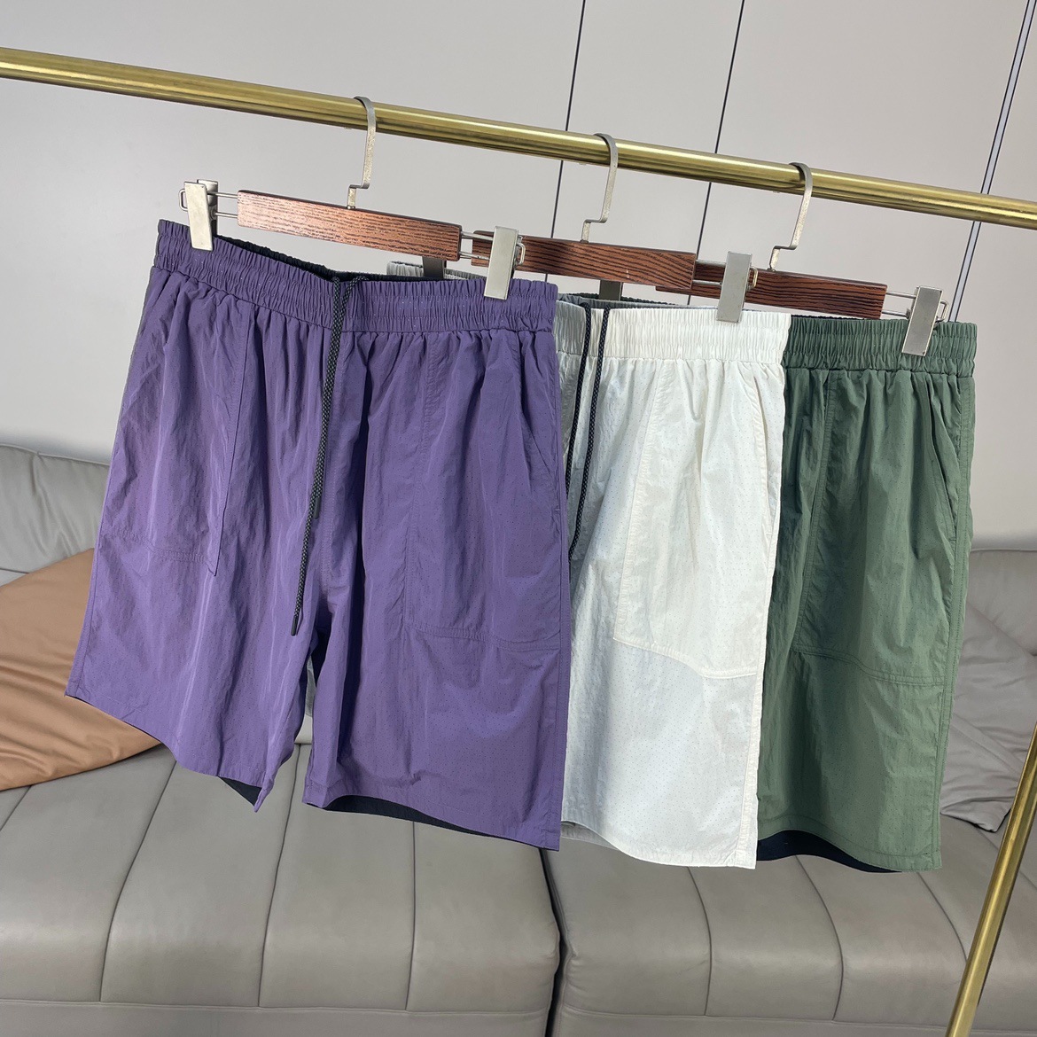 남자 여름 야외 캐주얼 올 매치 스포츠 빠른 건조 느슨한 통기성 및 편안한 양면 착용 스트레이트 컷 반바지 트렌디스토어 가기