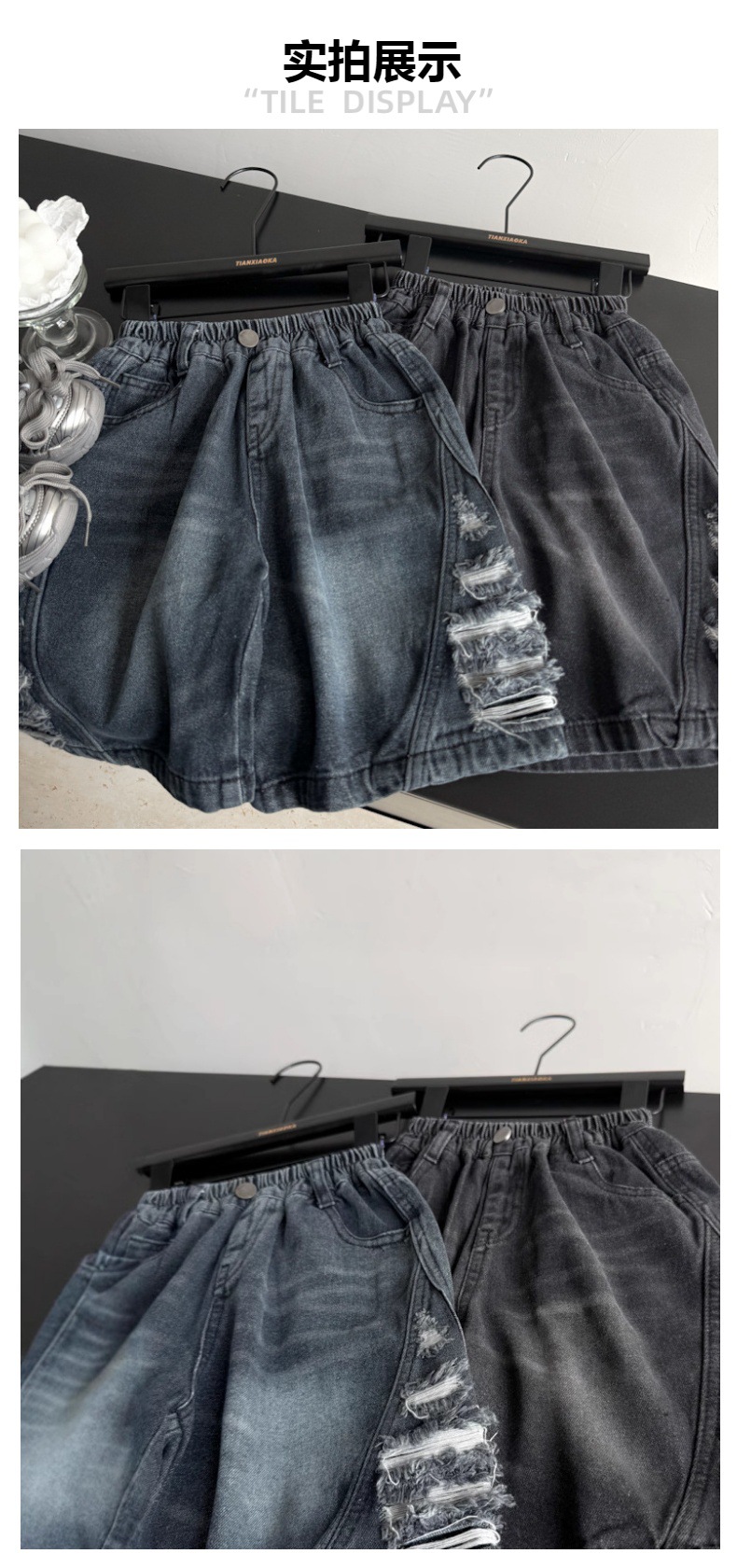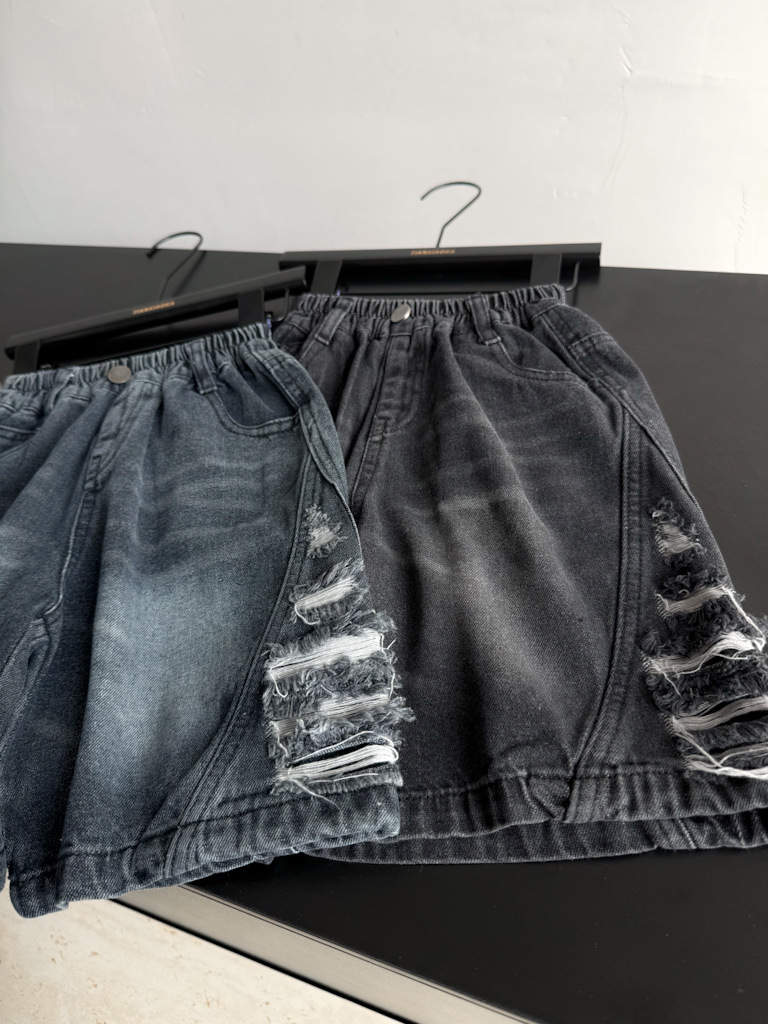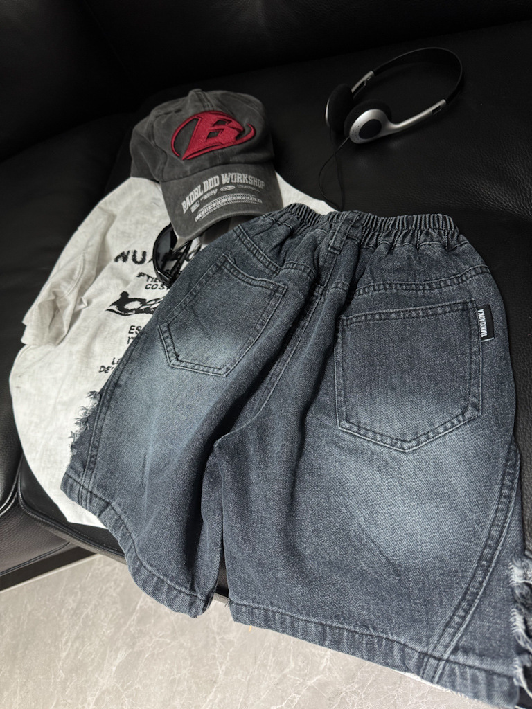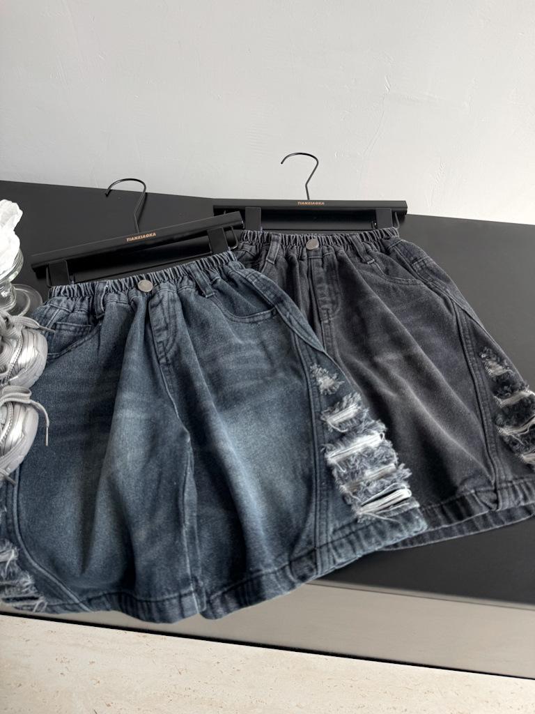 2025년 여름 신상 남녀 아동용 데미지 워싱 데님 반바지 루즈핏 트렌디 쿨 스타일 안감 있는 아동복 도매스토어 가기