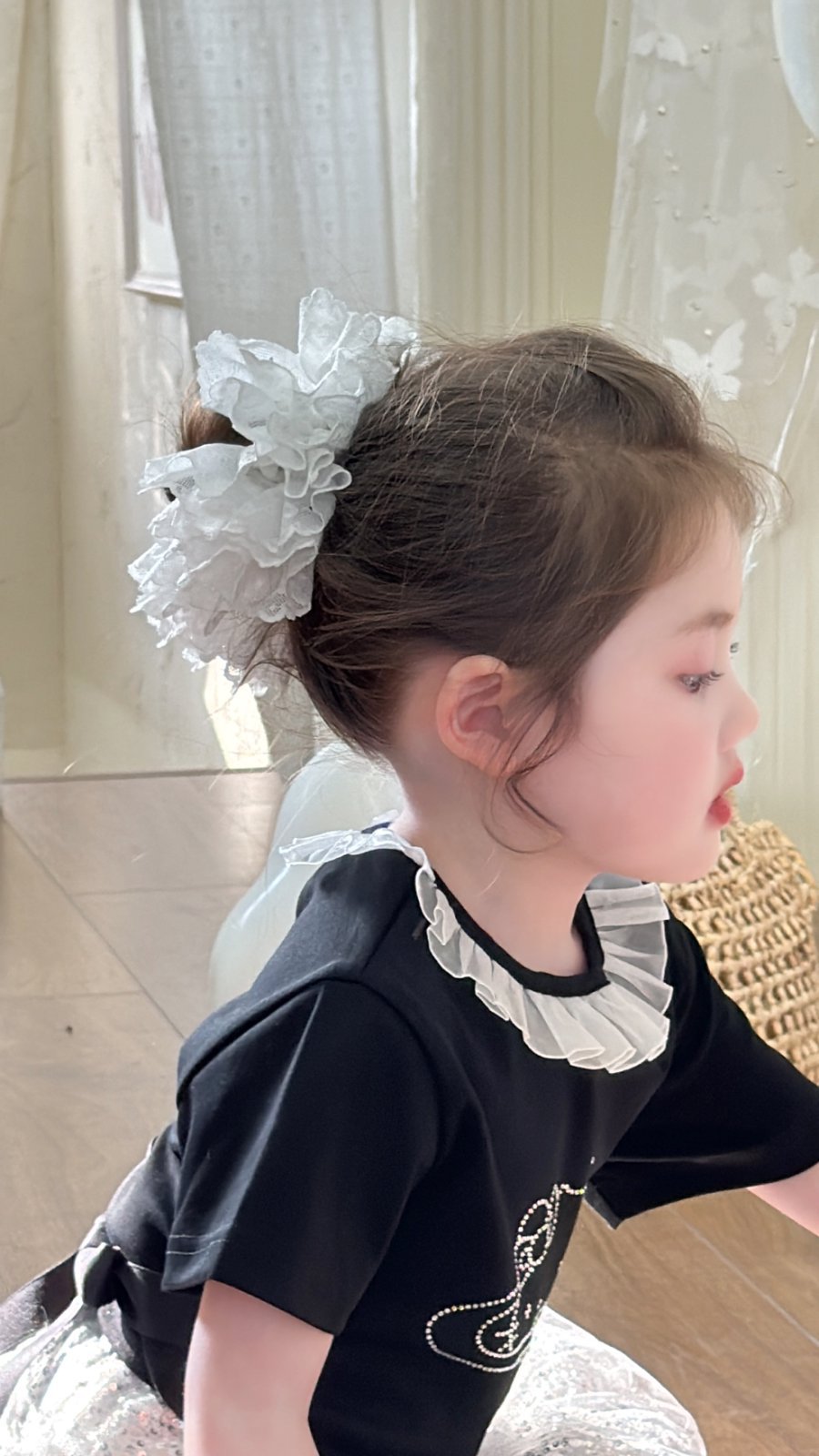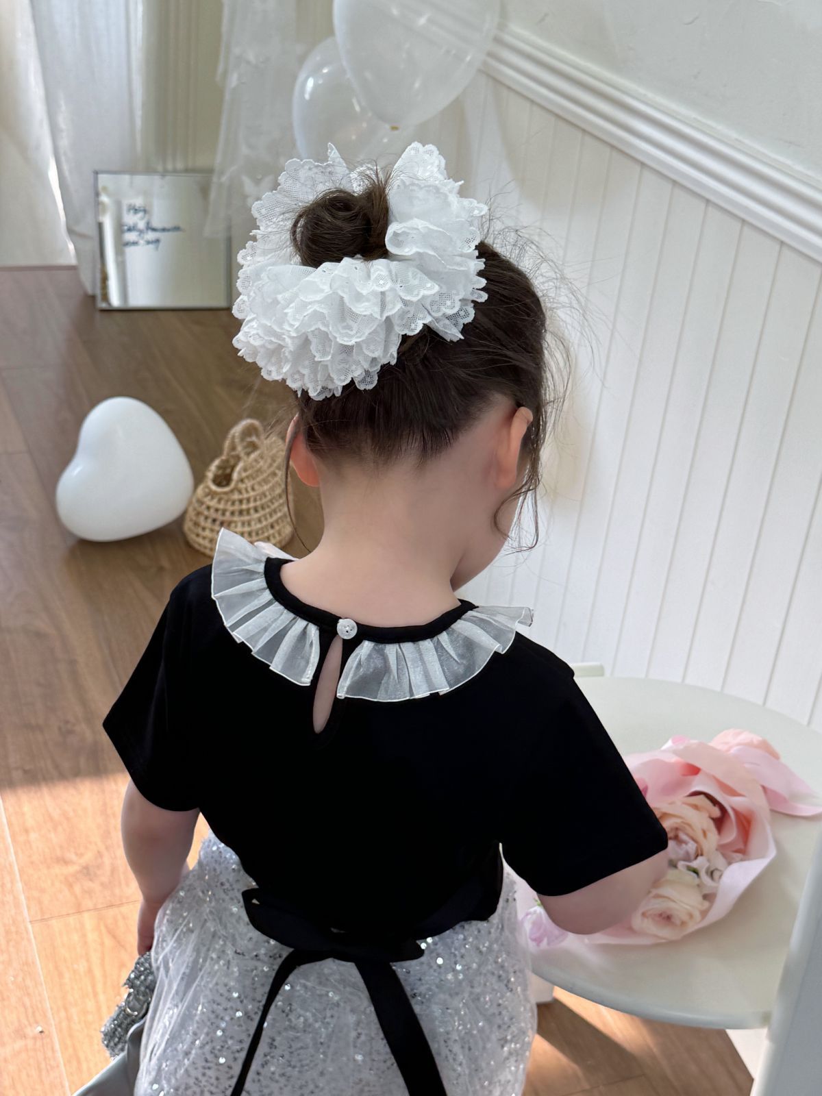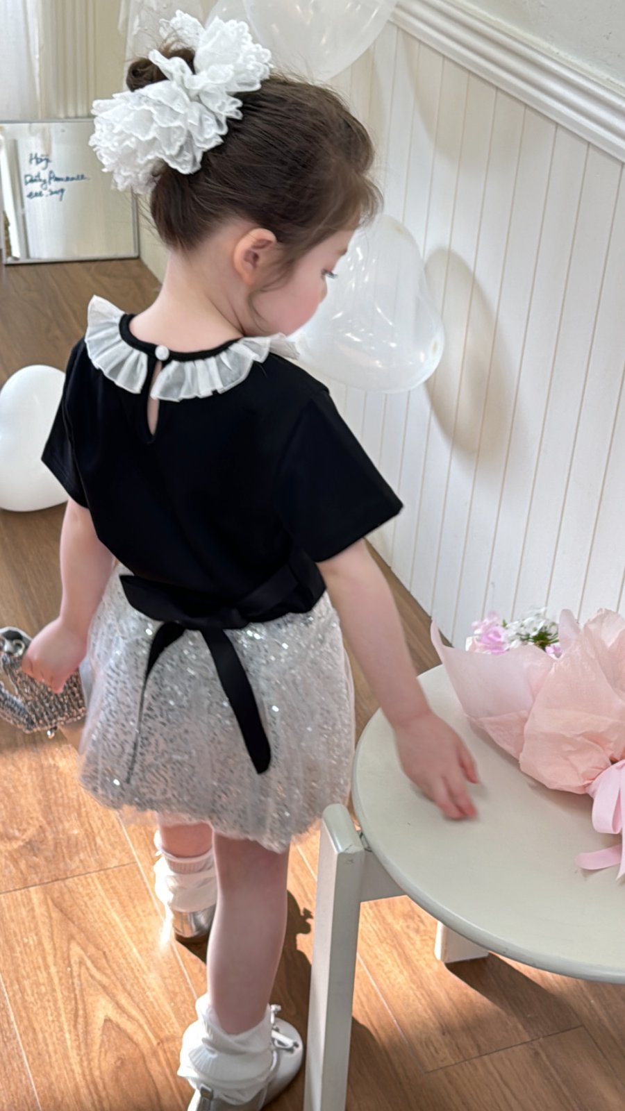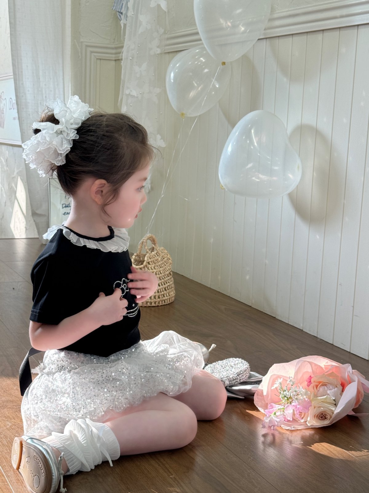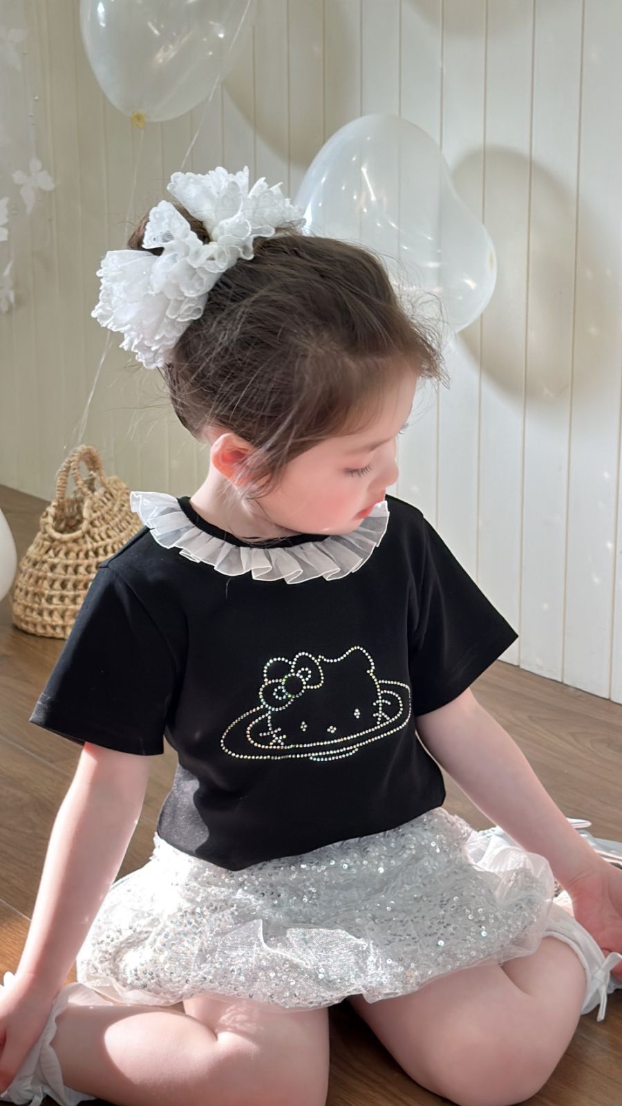 사이즈 롤 25 여름 새로운 소녀 짧은 소매 티셔츠 레이스 칼라 만화 핫 다이아몬드 달콤한 귀여운 탑 스팽글 스커트스토어 가기