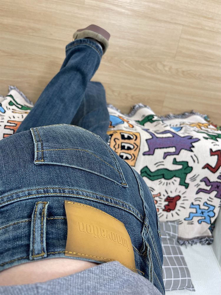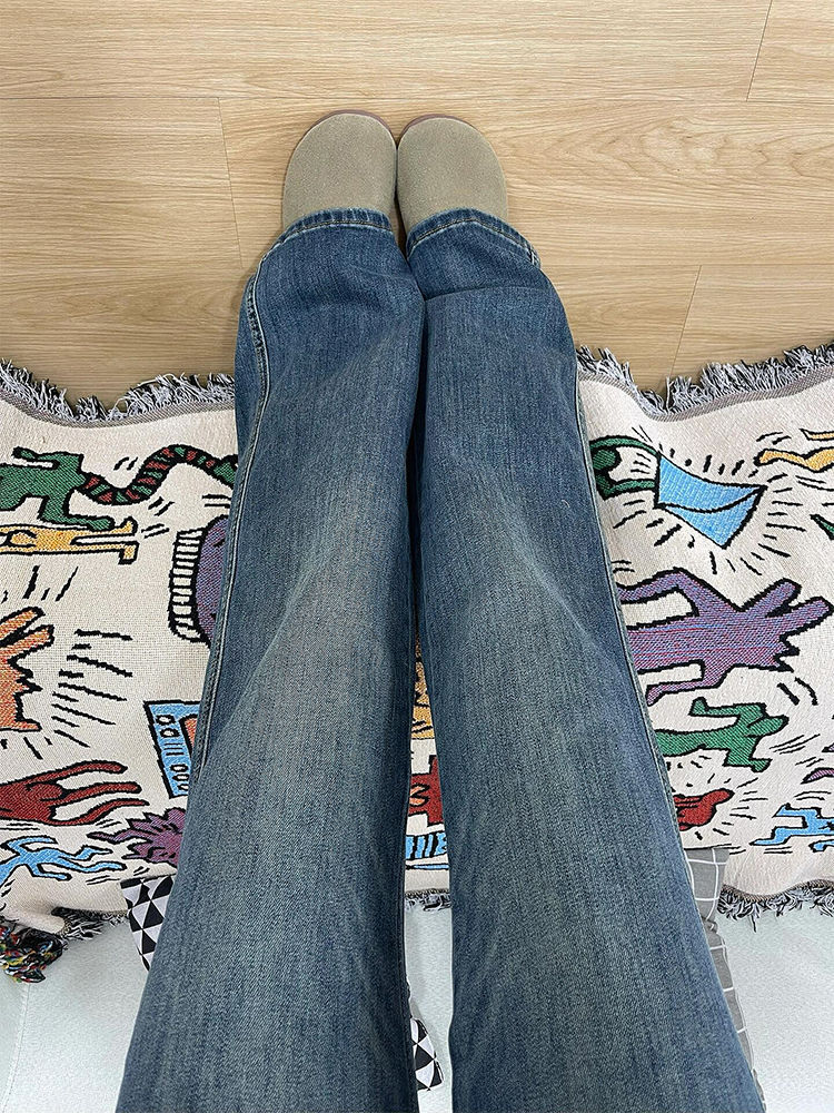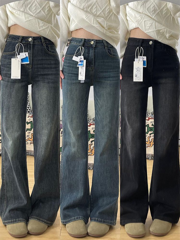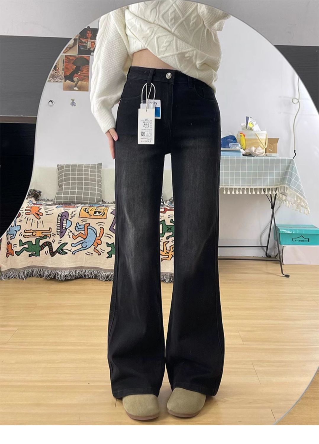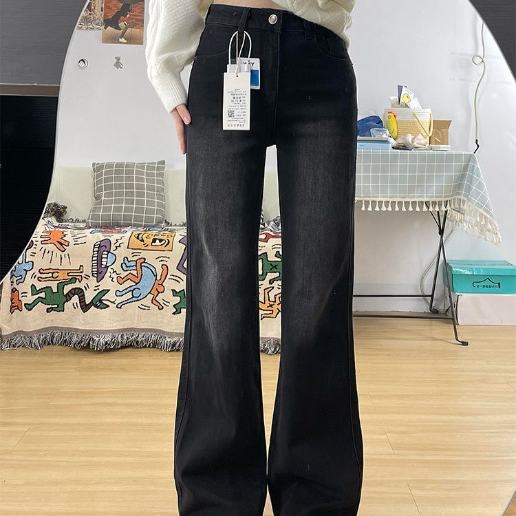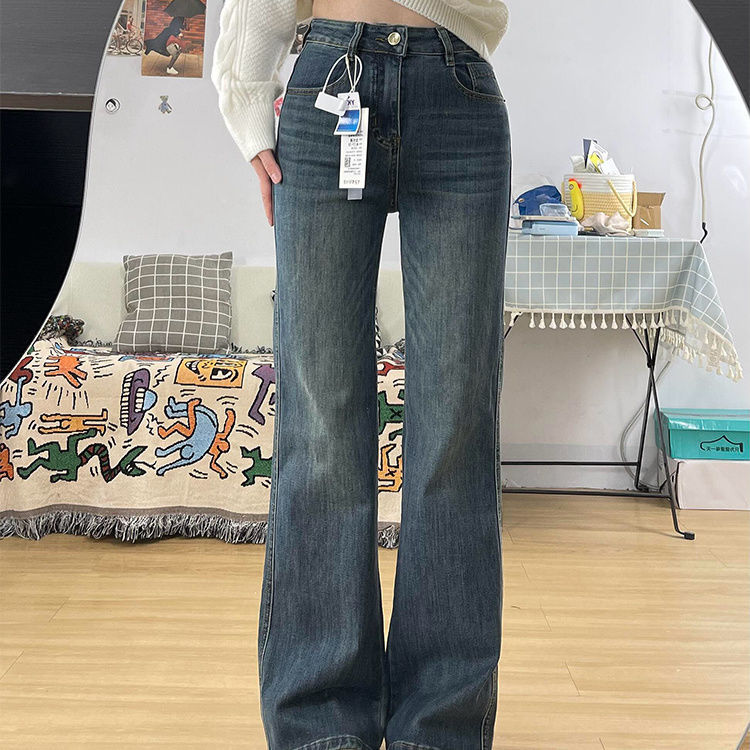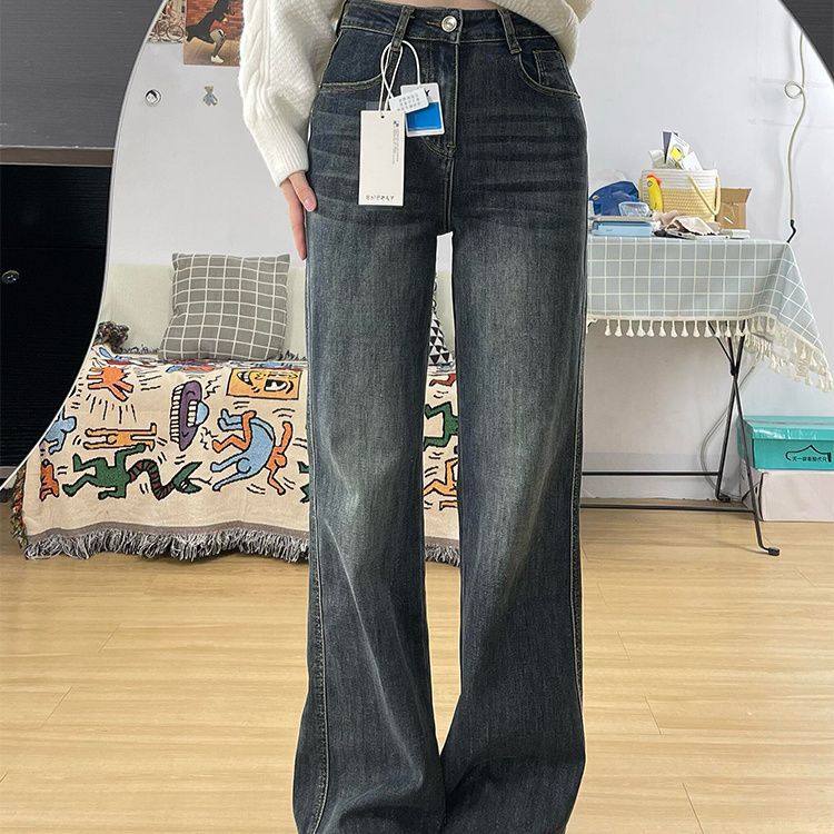 향수 블루 좁은 에디션 스트레이트 레그 청바지 여성용 봄 새 플러스 사이즈 통통녀 하이 웨이스트 슬림 핏 노레그 마이크로 라르 바지스토어 가기
