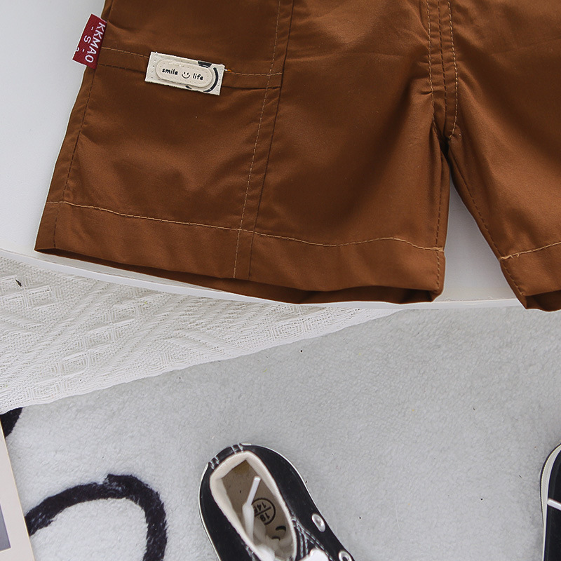 • KKM 레오파드 프린트 포켓 반팔 투피스 세트 브라운
