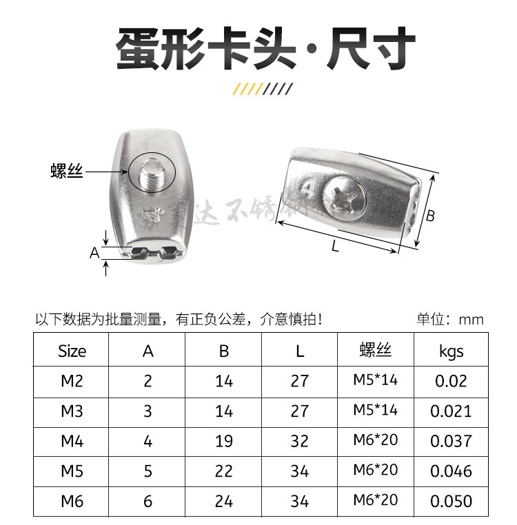 와이어 로프 클램프 316 스테인레스 스틸 계란형 클램프 라운드 버클 와이어 로프 잠금 장치 이중 스트랜드 잠금 장치 M &