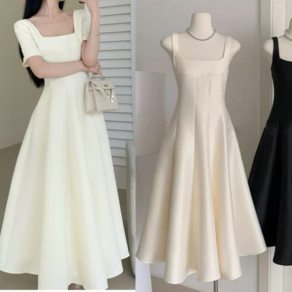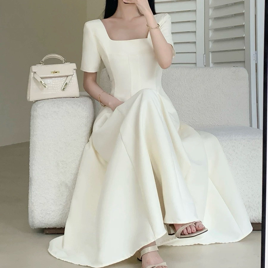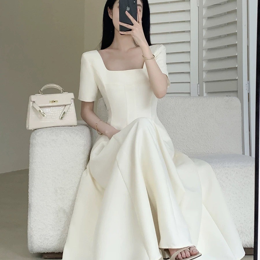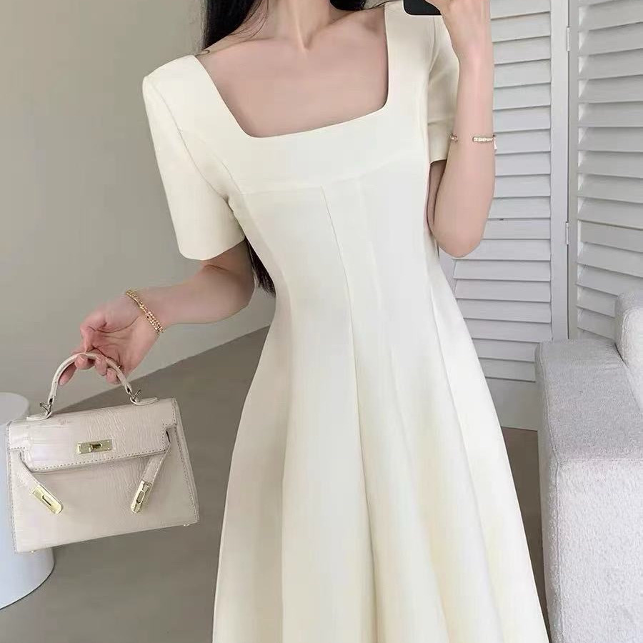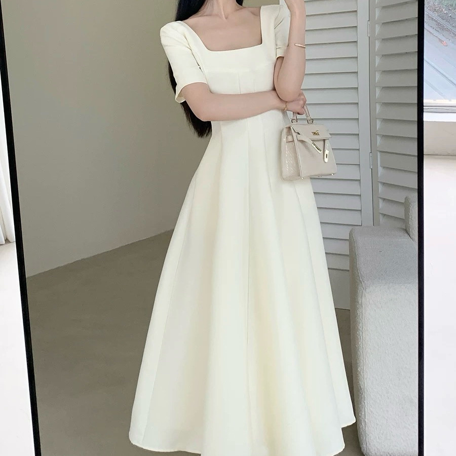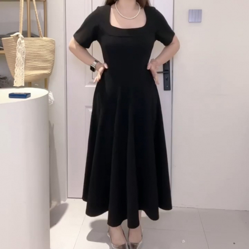 플러스 사이즈 여성 2025 프랑스 스타일 여름 새 스타일 헵번 스타일 하이 엔드 텍스처 스퀘어 넥 공주 원피스스토어 가기