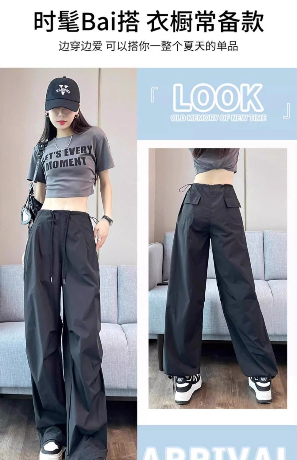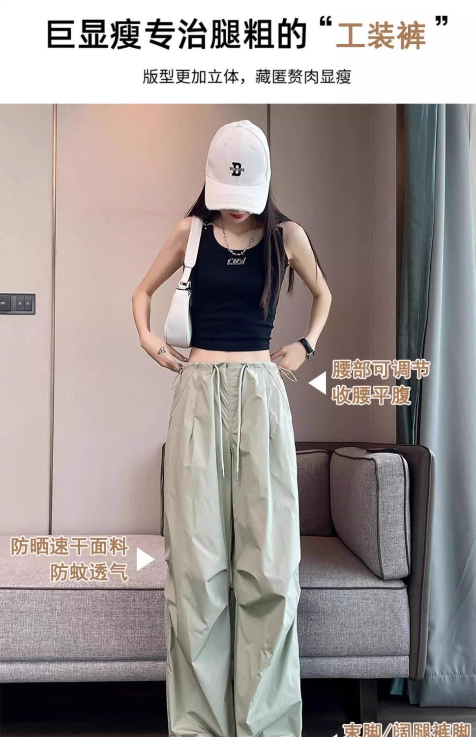 여성용 아메리칸 스타일 속건성 작업복, 여름 로우 웨이스트 드로스트링 디자인, 투웨어 레깅스 스웨트팬츠, 루즈 캐주얼 하이킹 팬츠스토어 가기