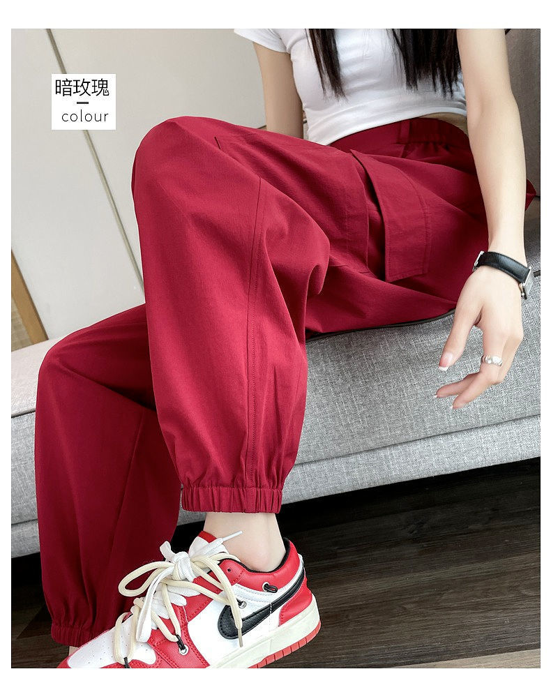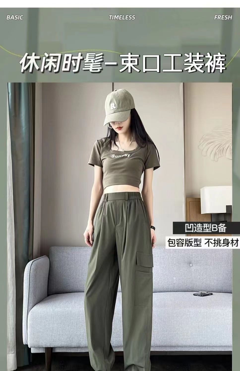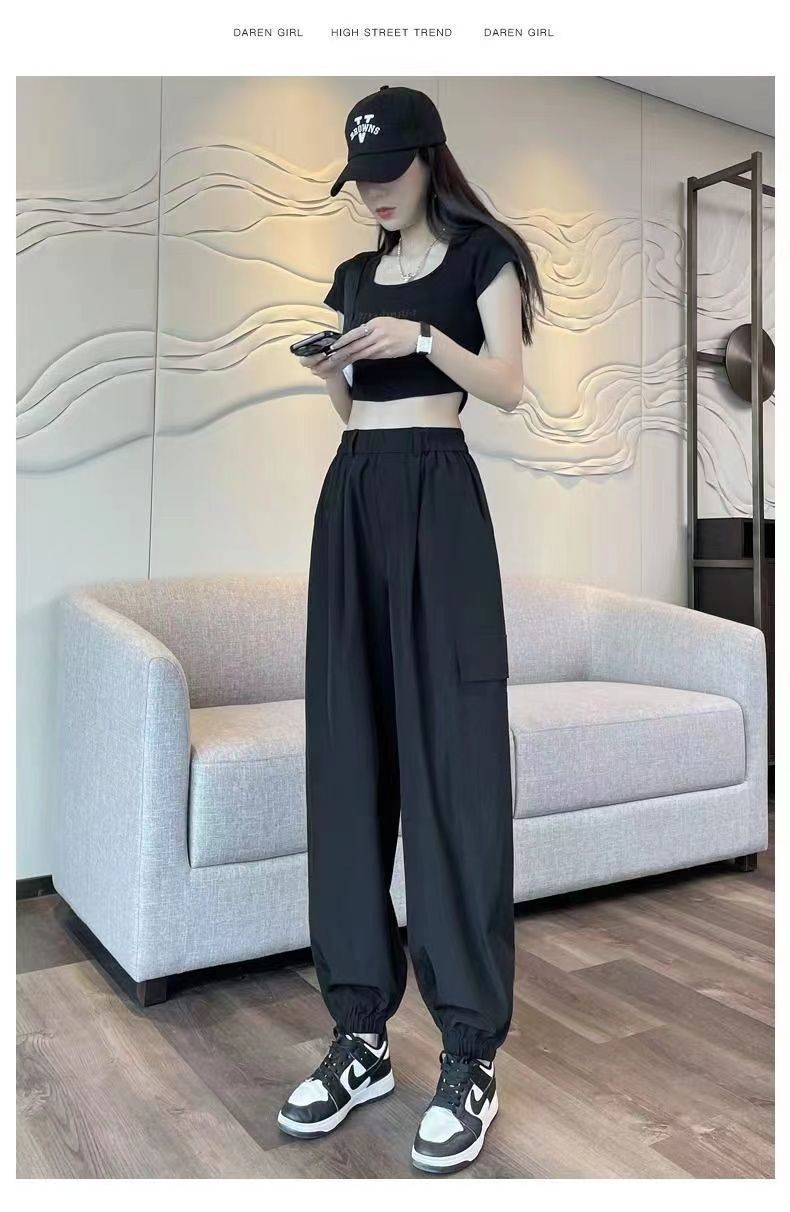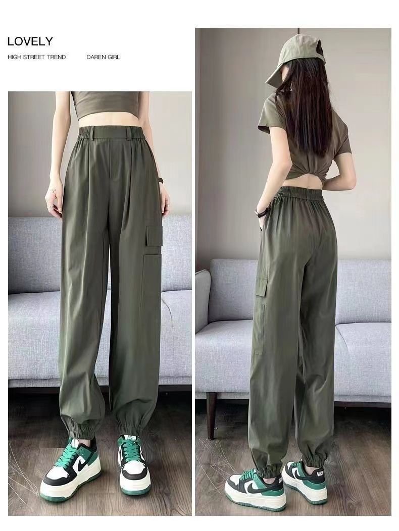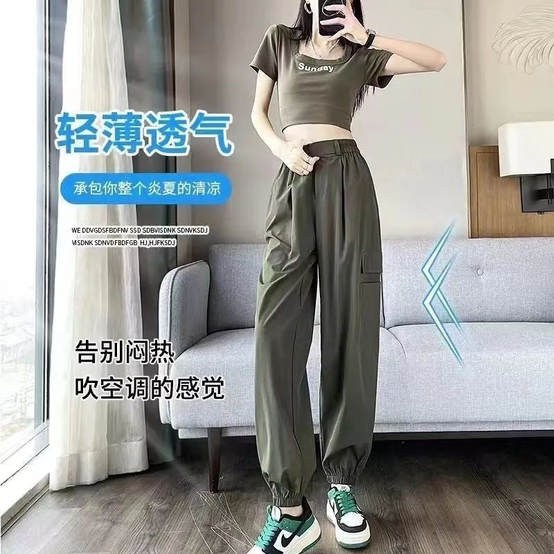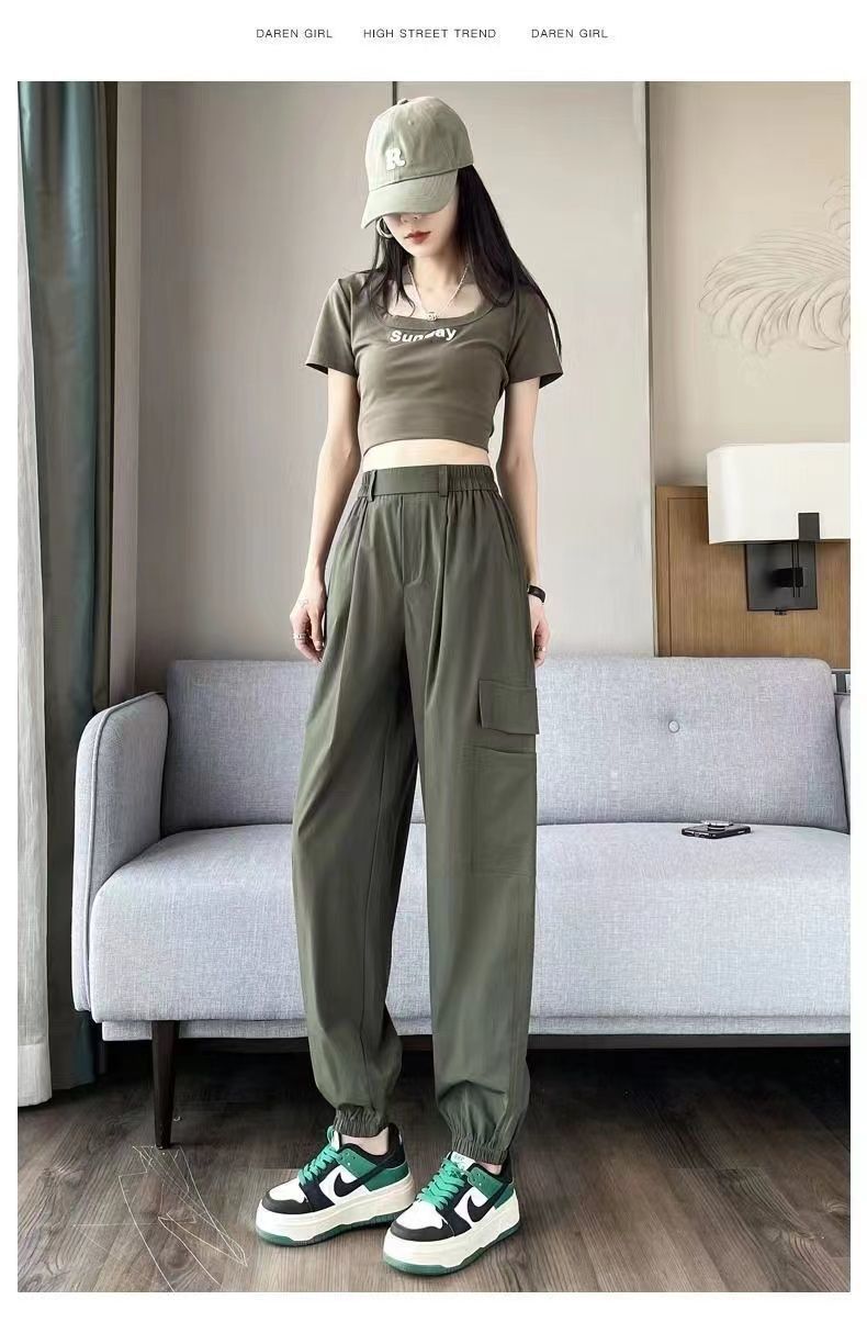 2024 새로운 도착 트렌디 한 아메리칸 스타일 툴링 바지 여성 높은 허리 슬리밍 올 매치 퀵 건조 스포츠 캐주얼 바지 여름스토어 가기