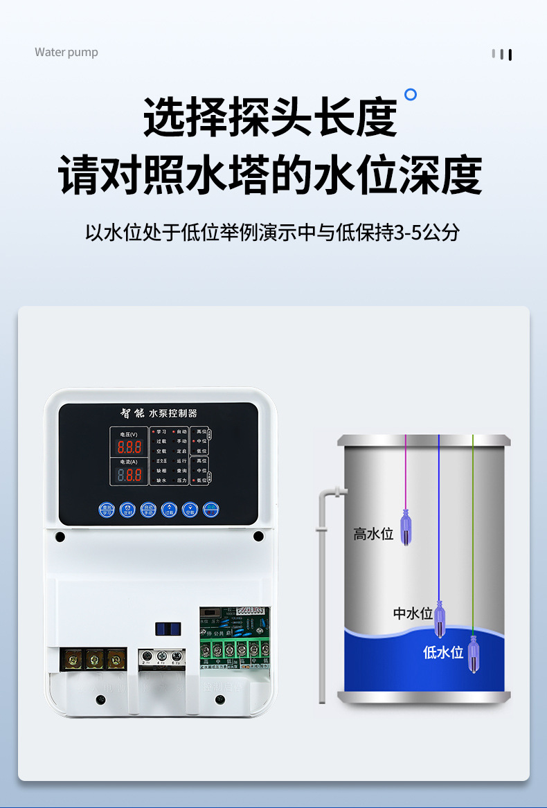 완전 지능형 수위 감지 스위치, 자동 펌핑 스위치, 워터 펌프 컨트롤러, 워터 타워 물 부족 보호, 액체 레벨 펌프 보물