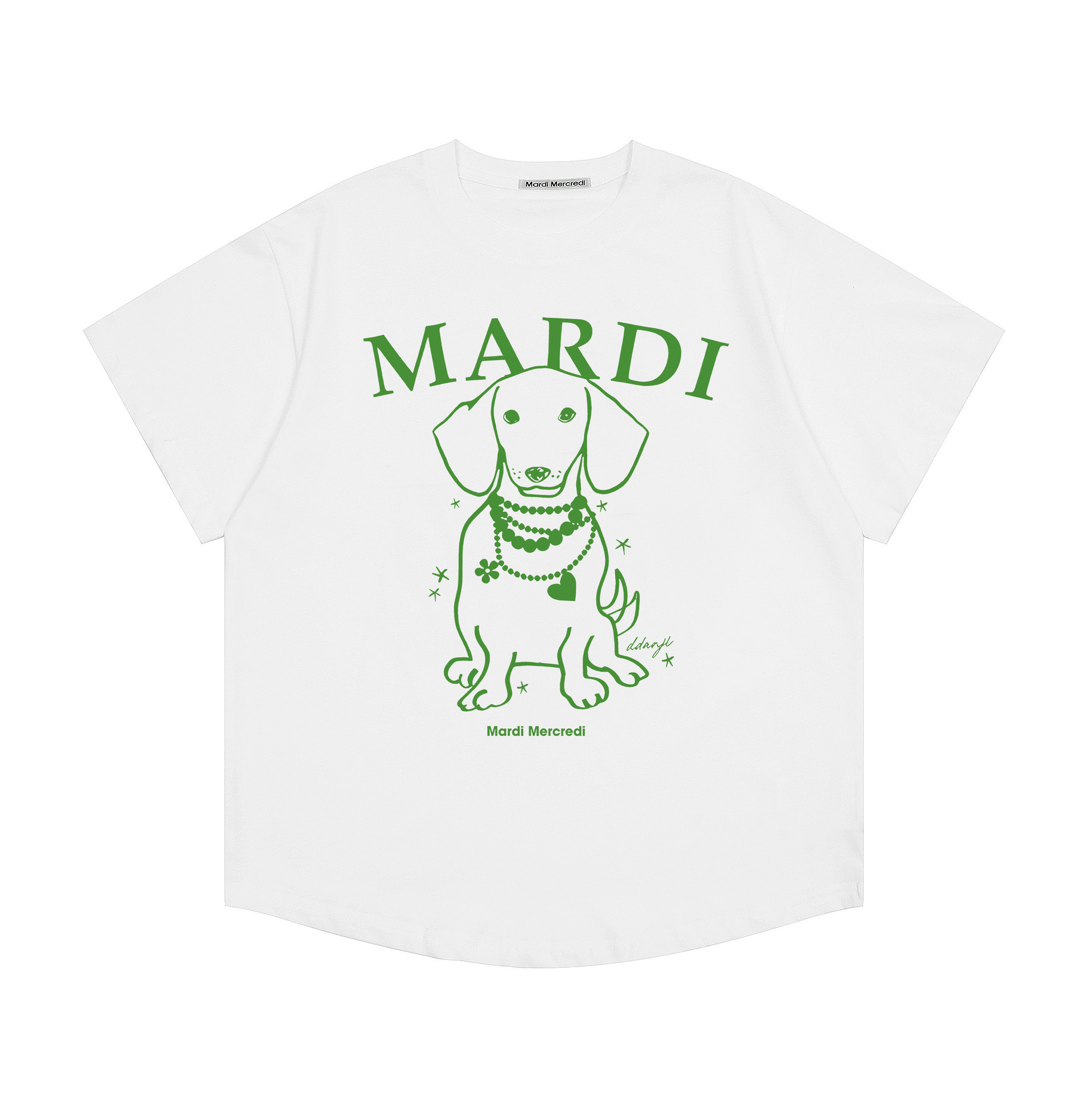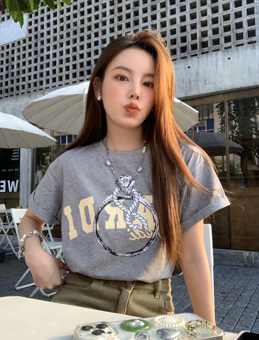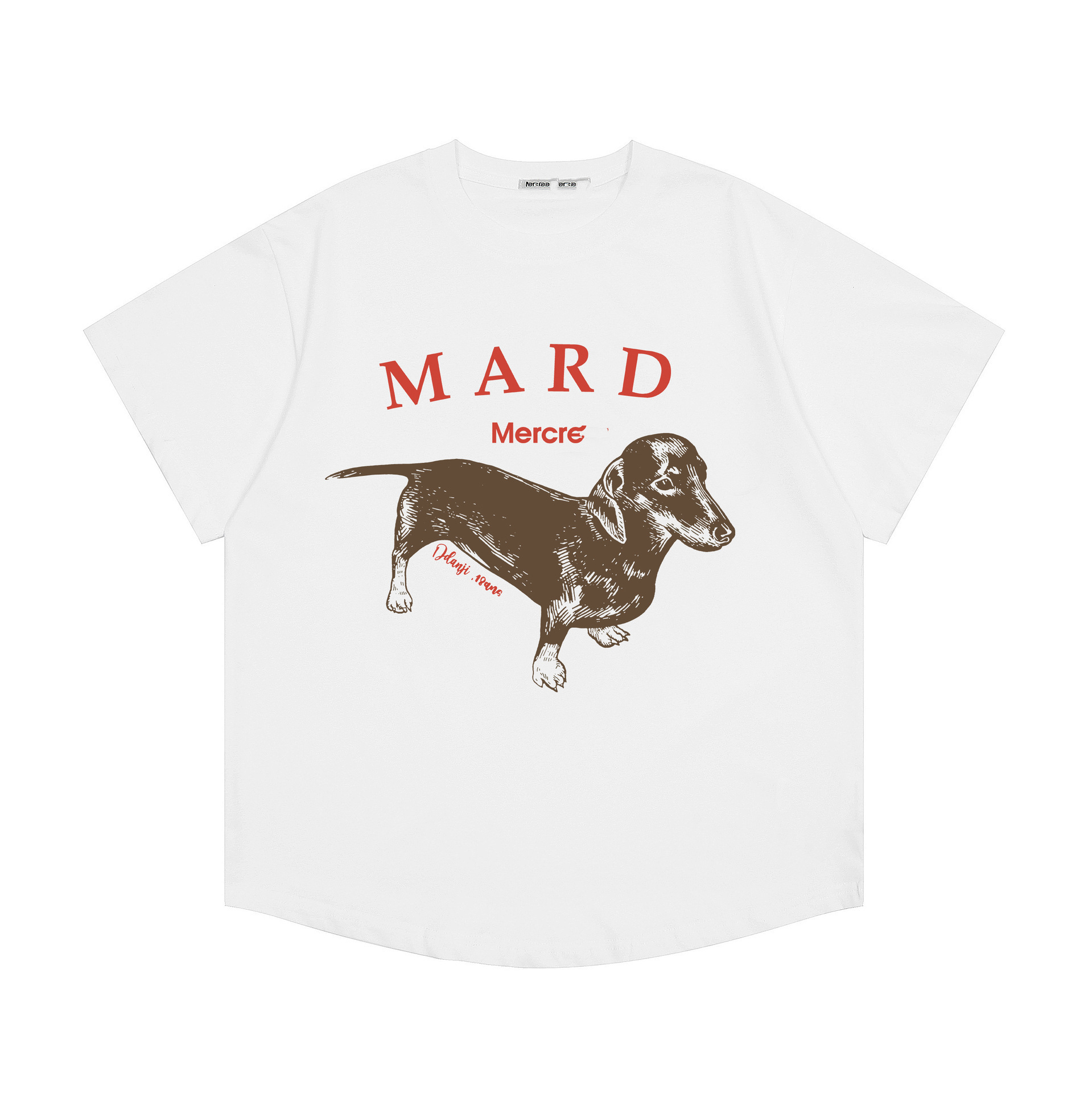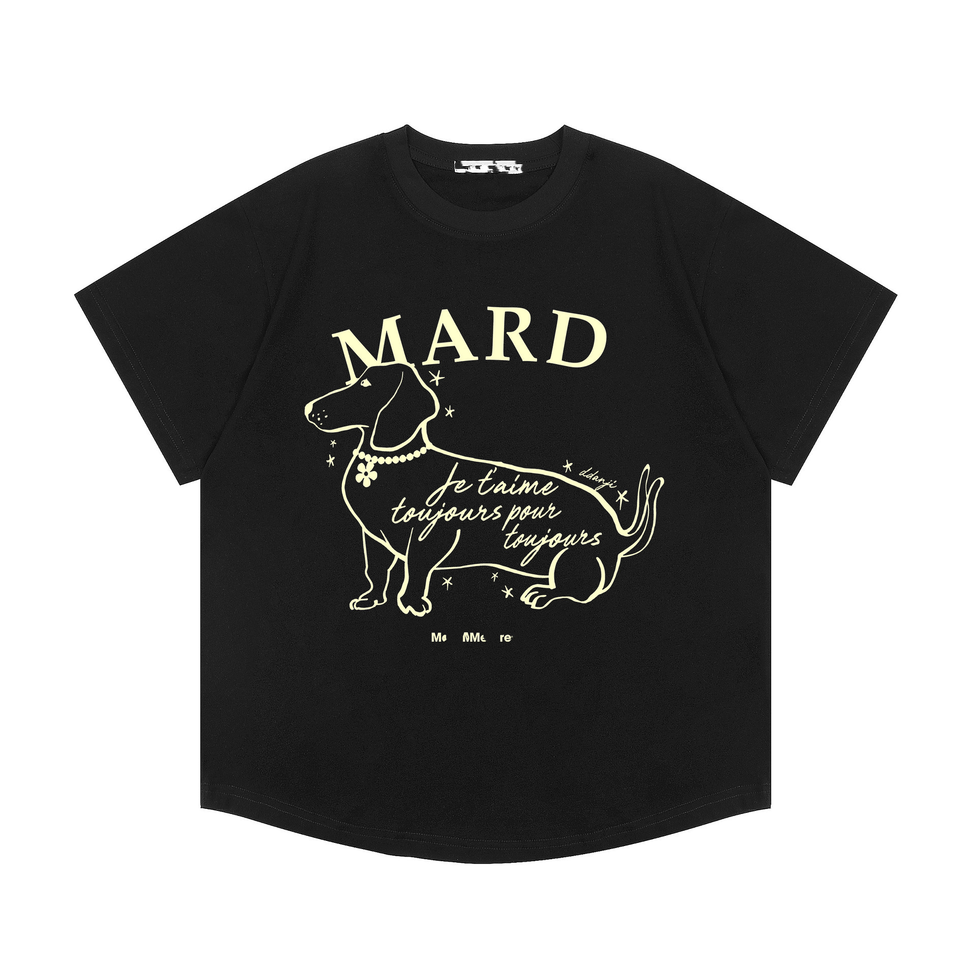 한국 유행 브랜드 반팔 데이지 닥스 훈트 개 인쇄 여름 라운드 넥 퓨어 코튼 골드 하이 실버 같은 스타일 느슨한 티셔츠 여성을위한