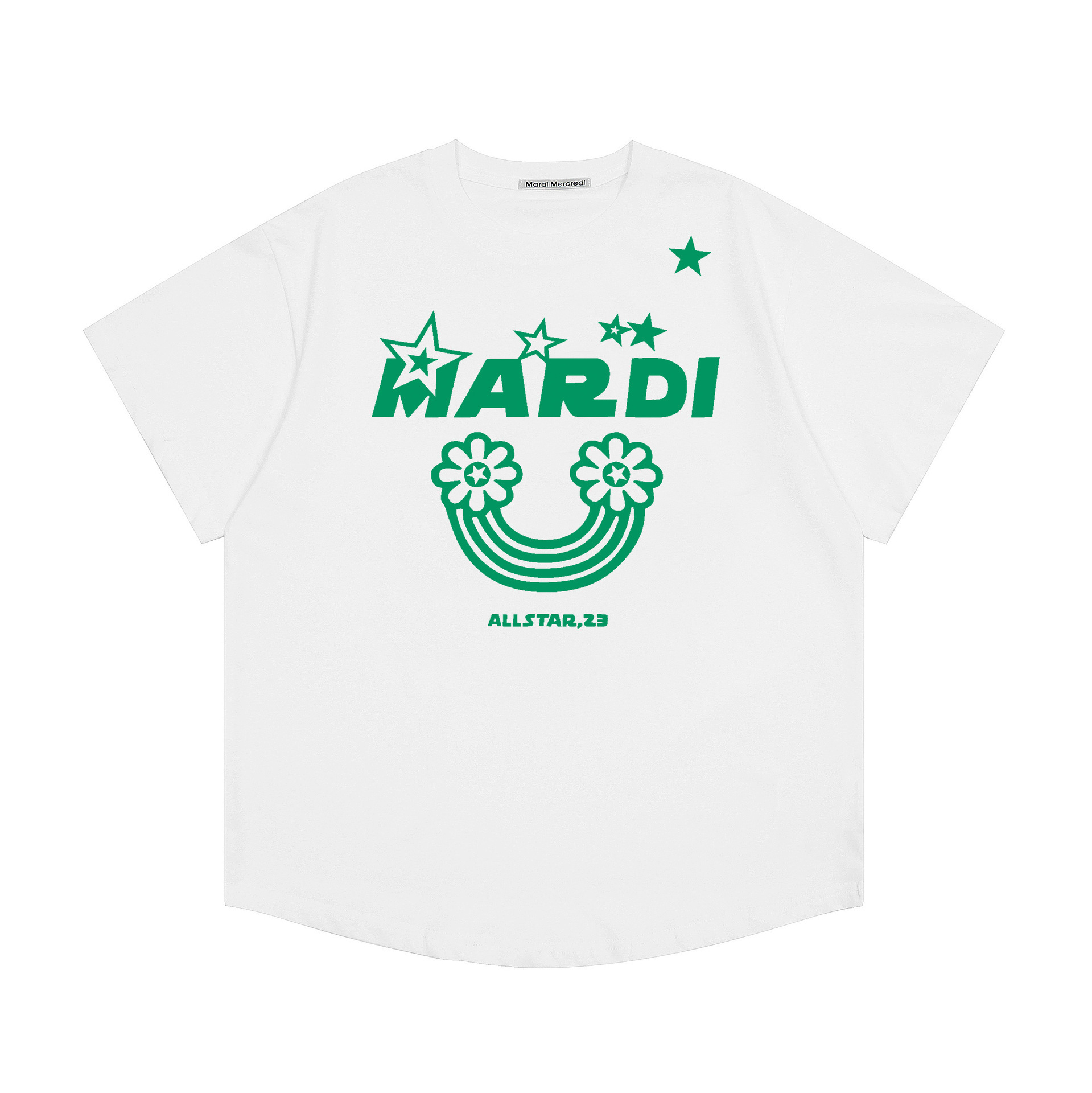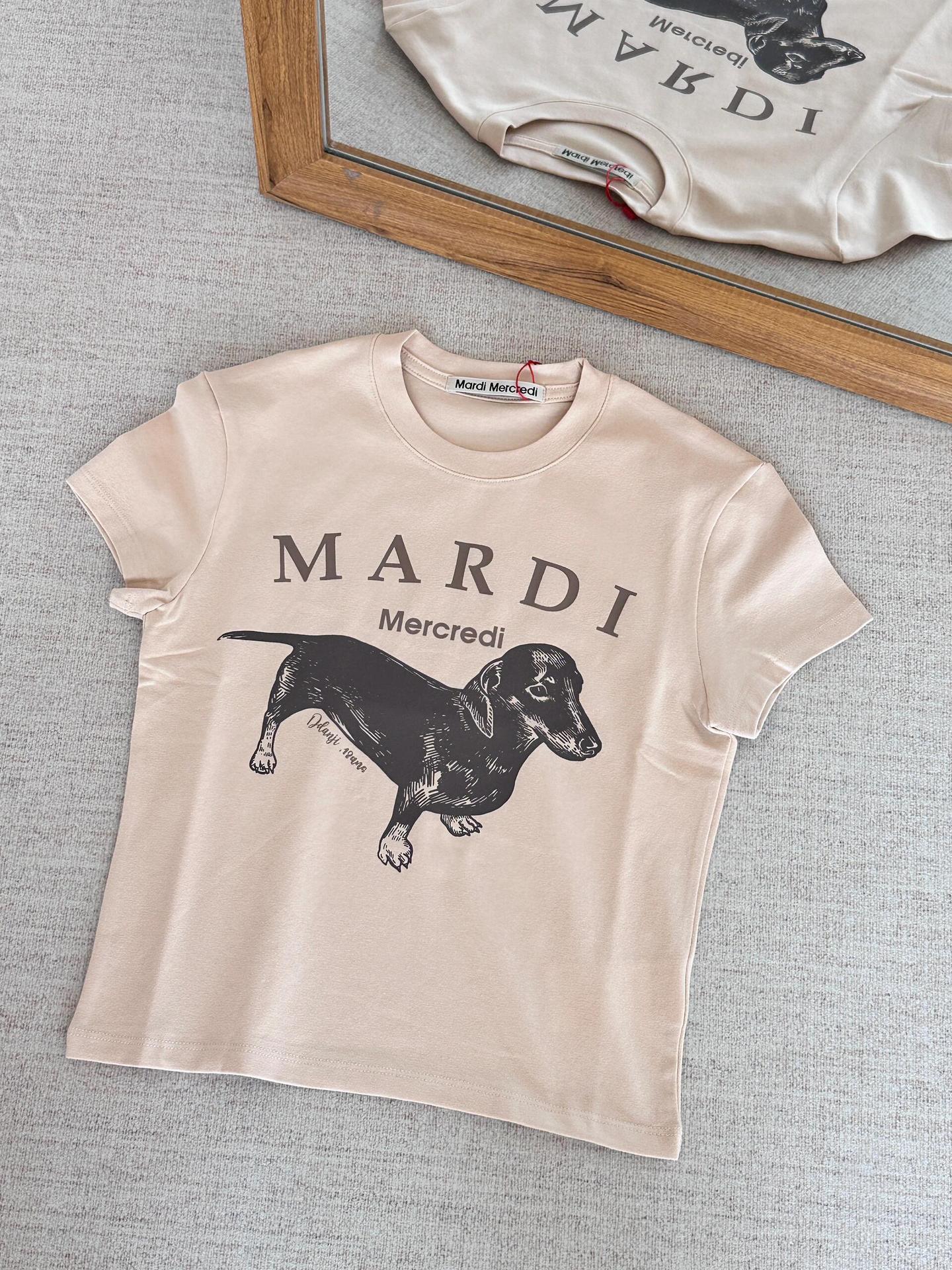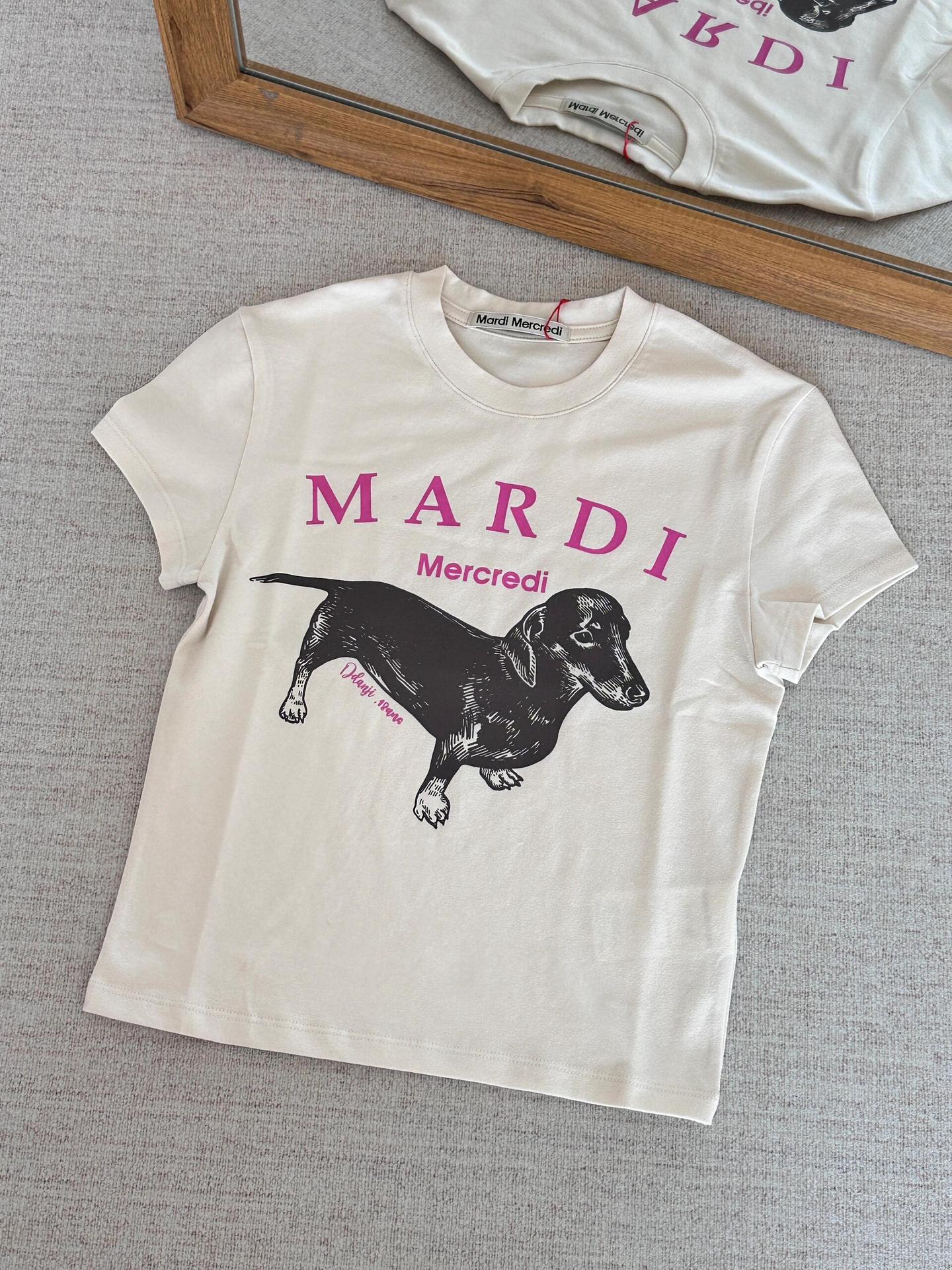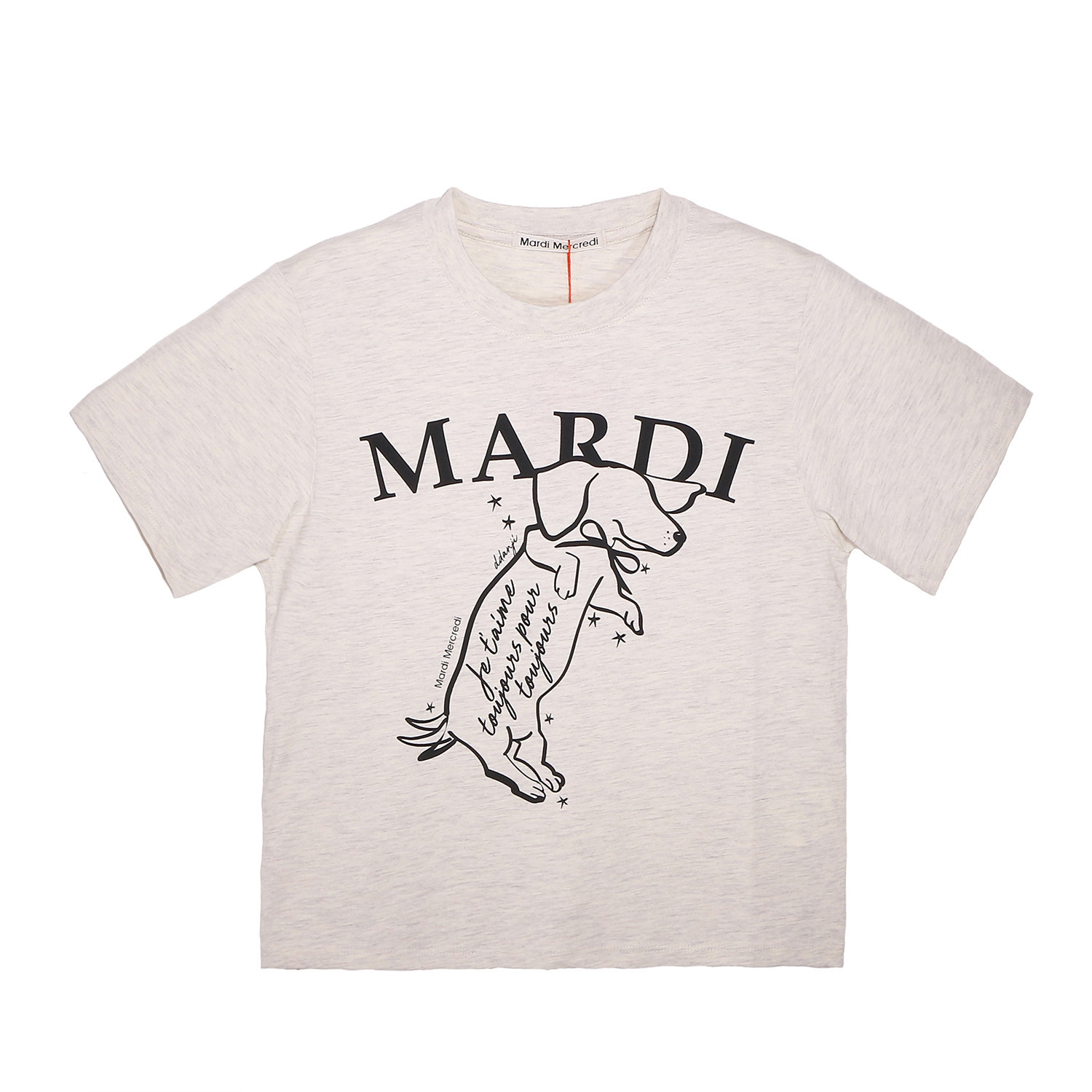 한국 유행 브랜드 반팔 데이지 닥스 훈트 개 인쇄 여름 라운드 넥 퓨어 코튼 골드 하이 실버 같은 스타일 느슨한 티셔츠 여성을위한