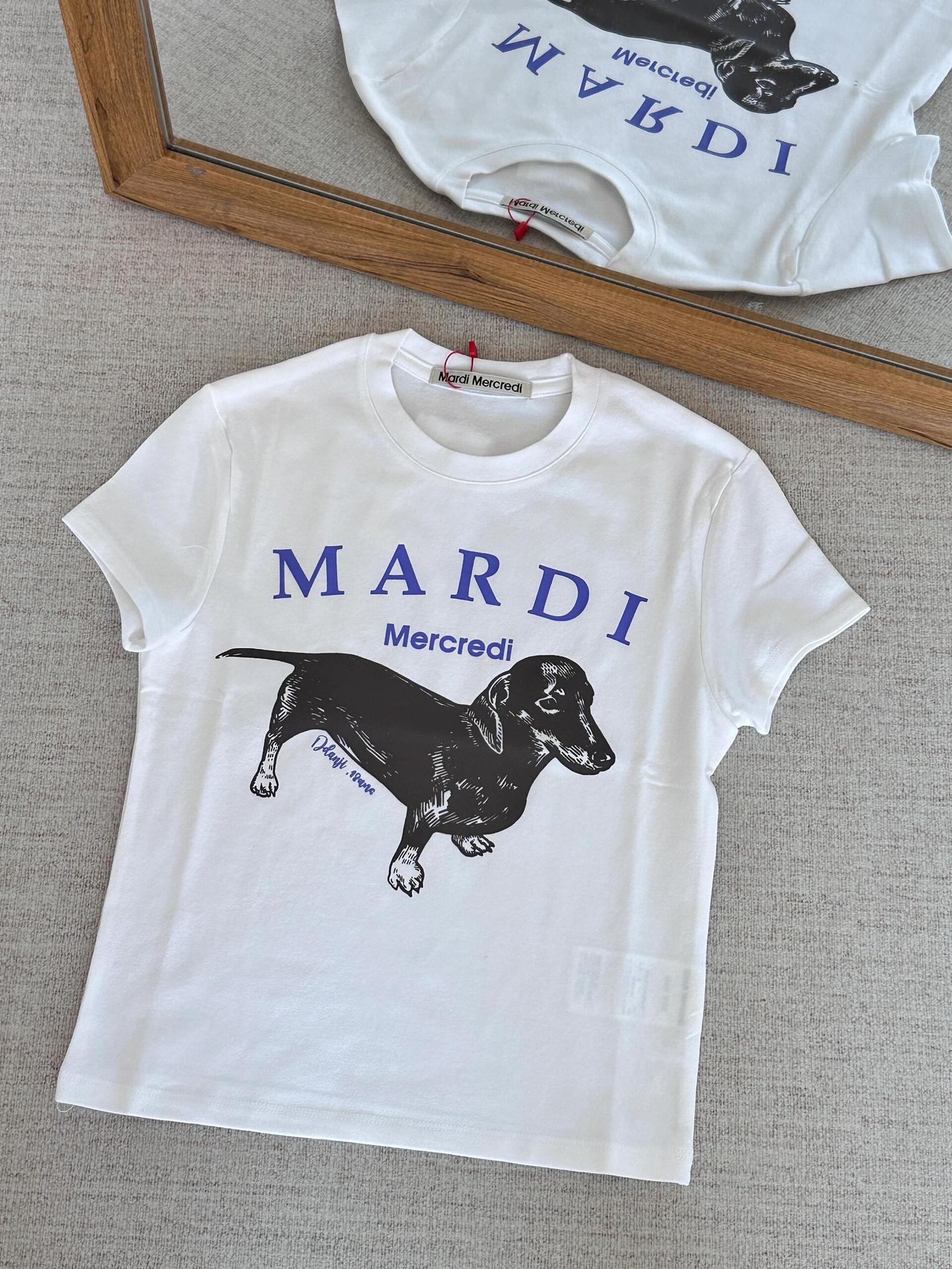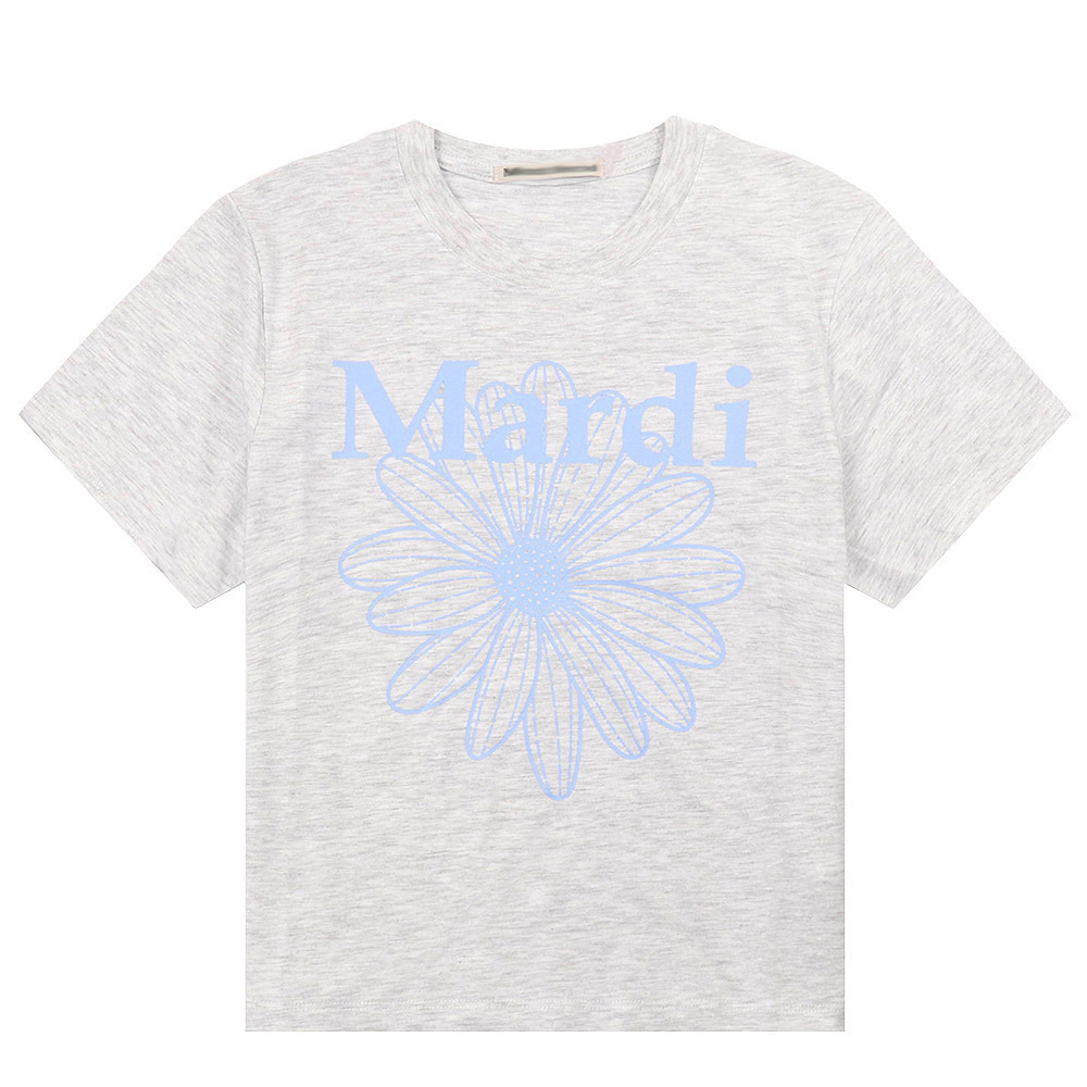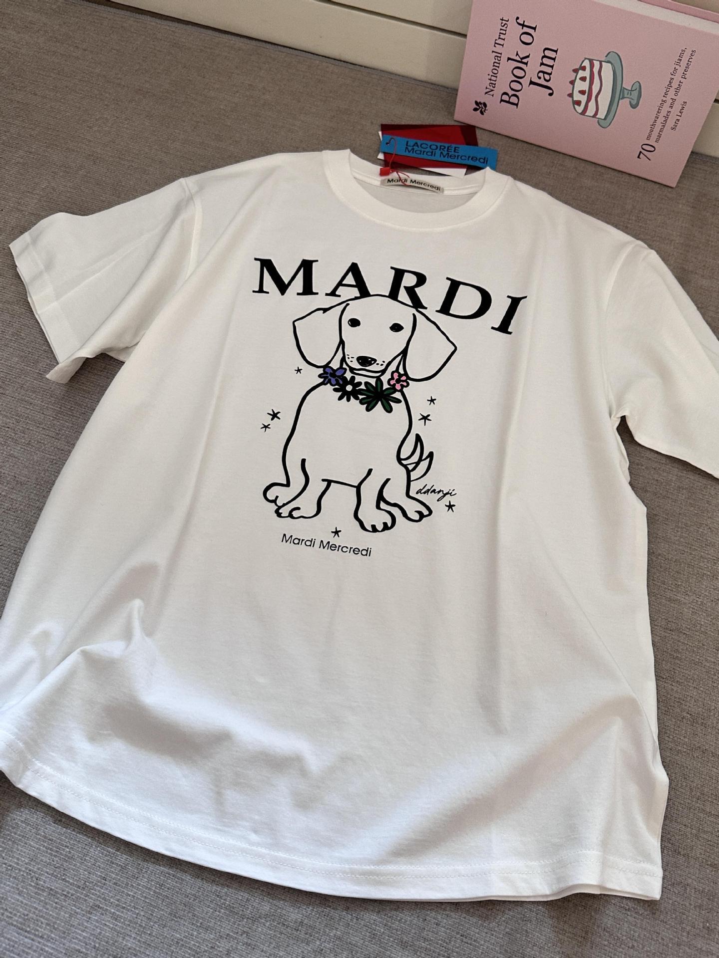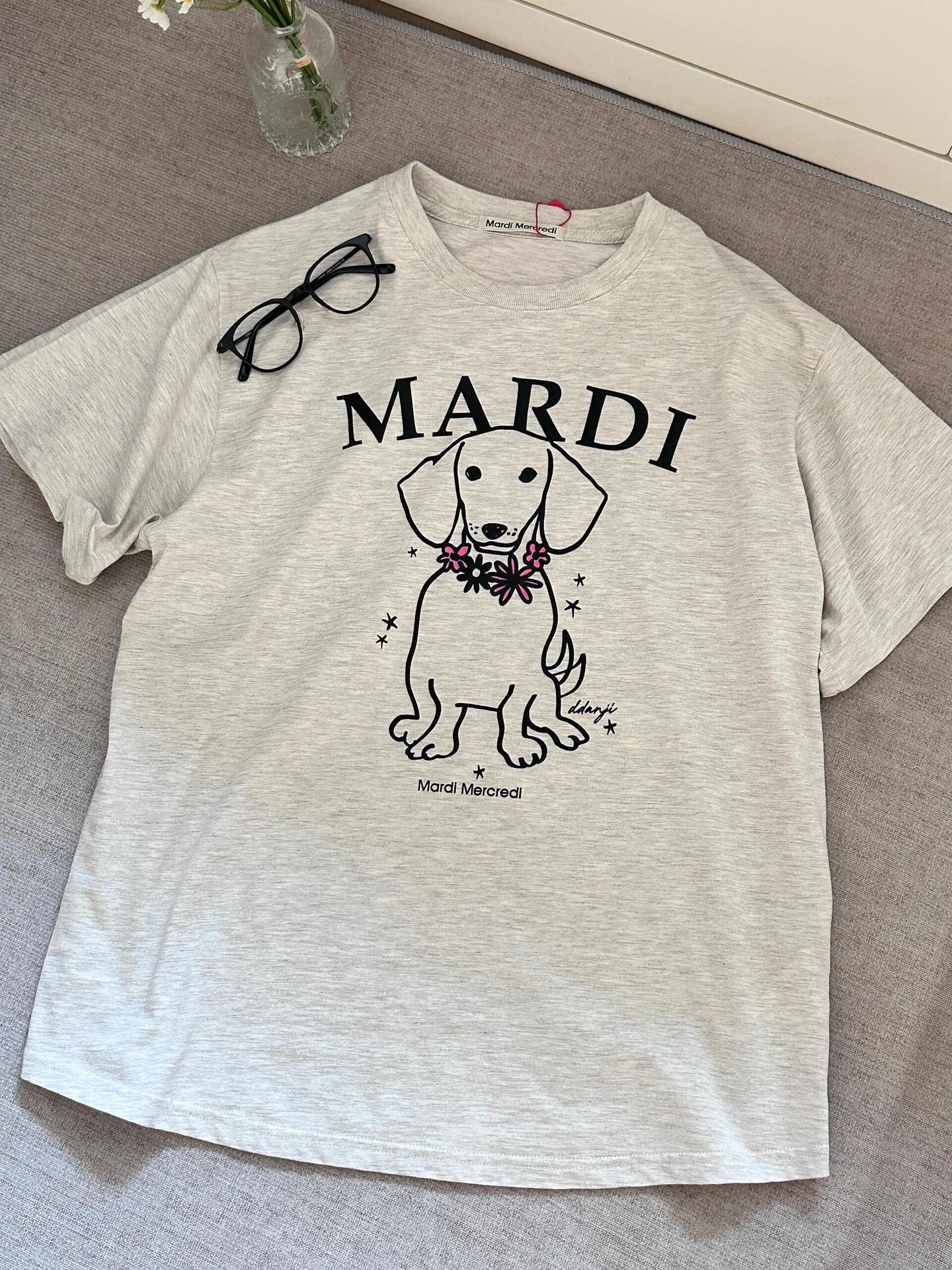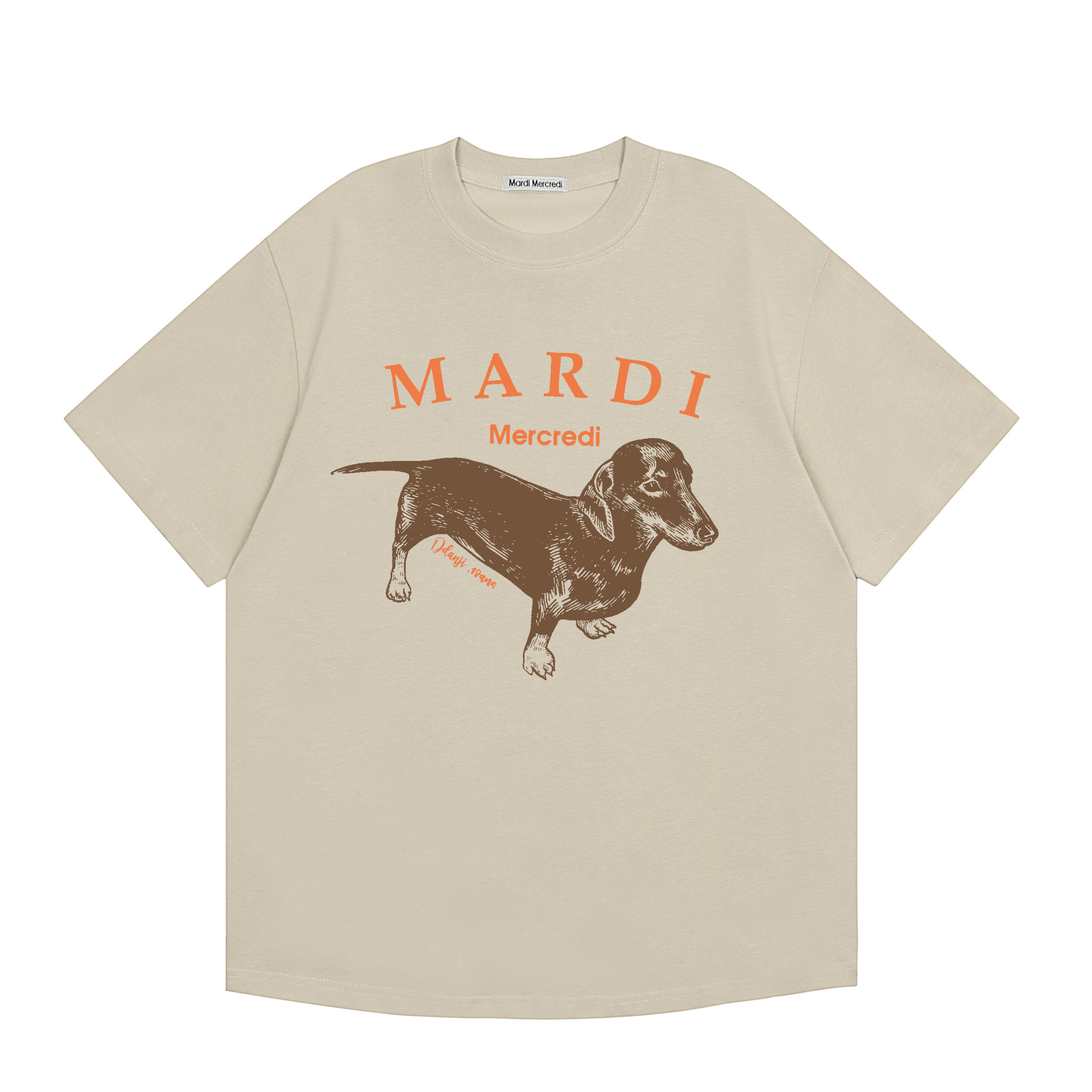 한국 유행 브랜드 반팔 데이지 닥스 훈트 개 인쇄 여름 라운드 넥 퓨어 코튼 골드 하이 실버 같은 스타일 느슨한 티셔츠 여성을위한스토어 가기