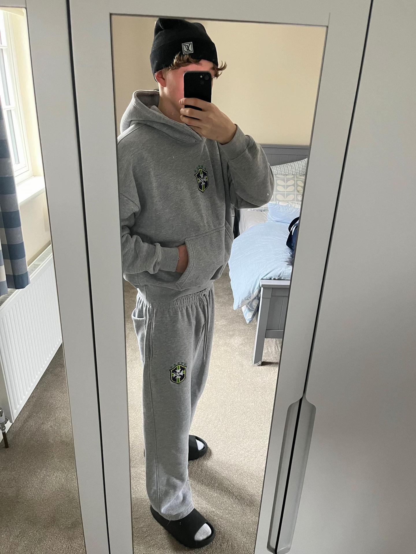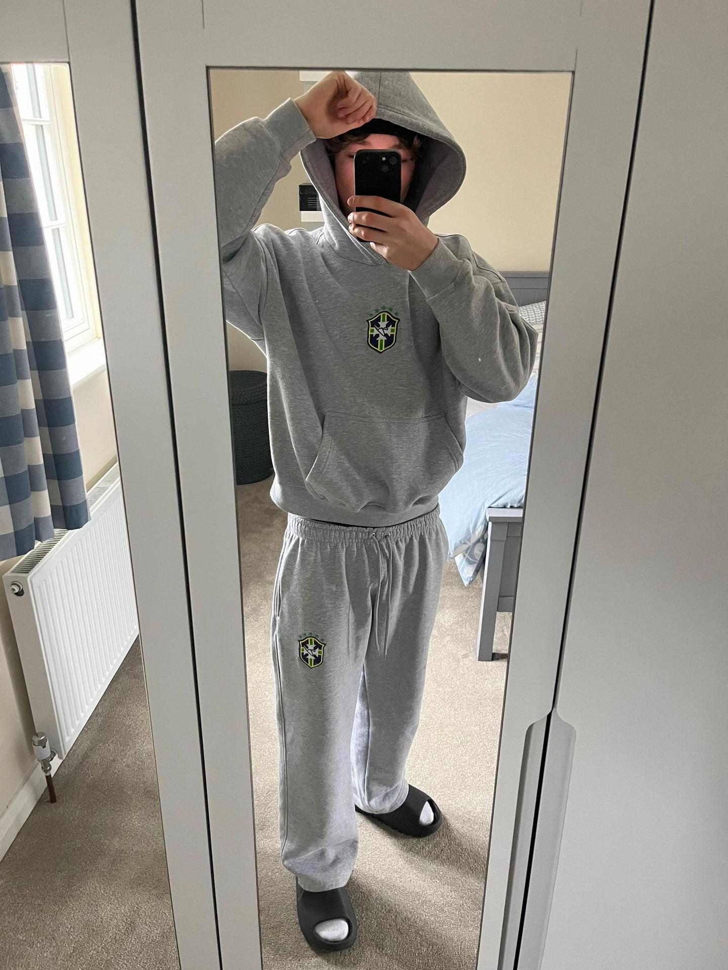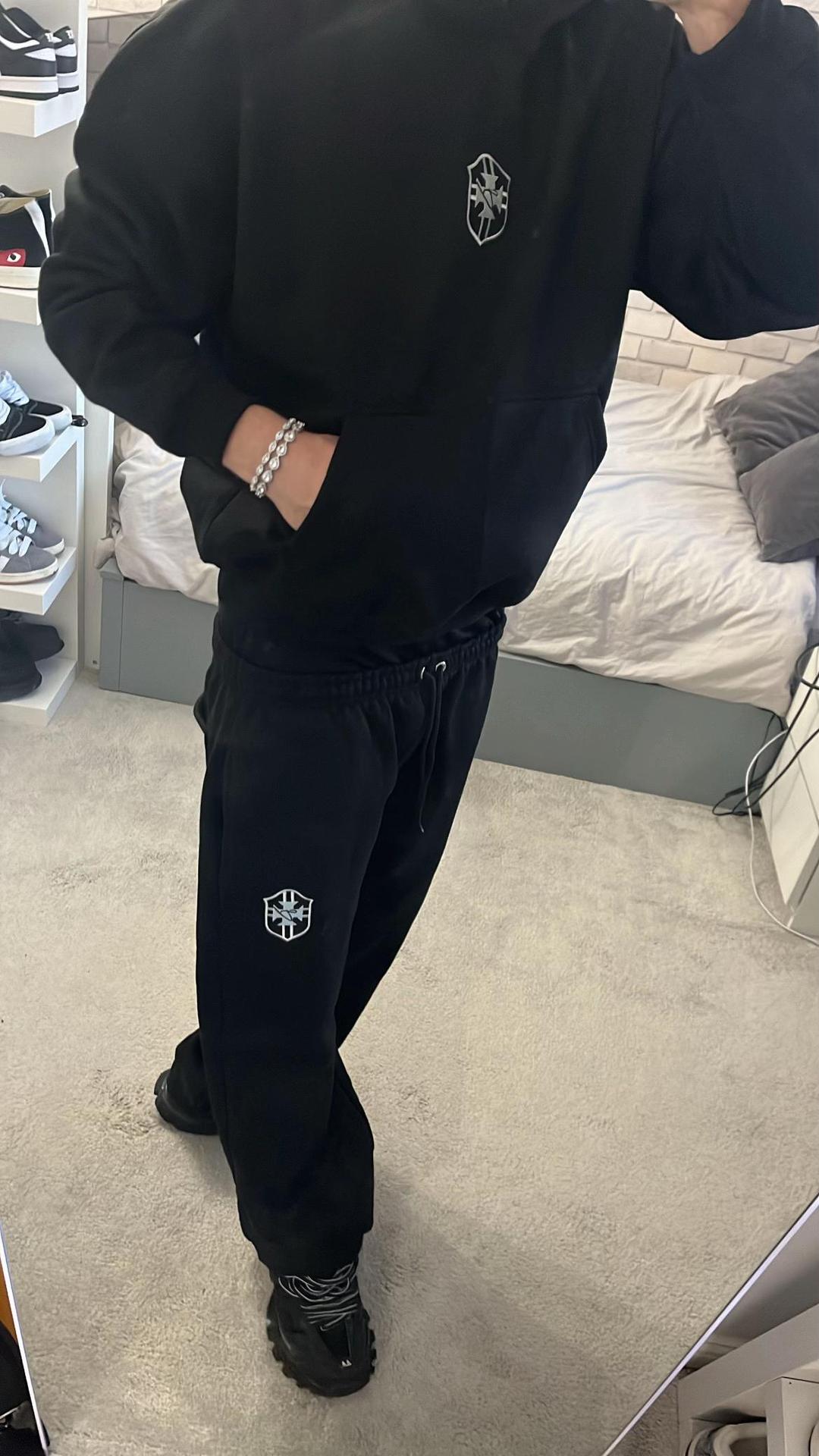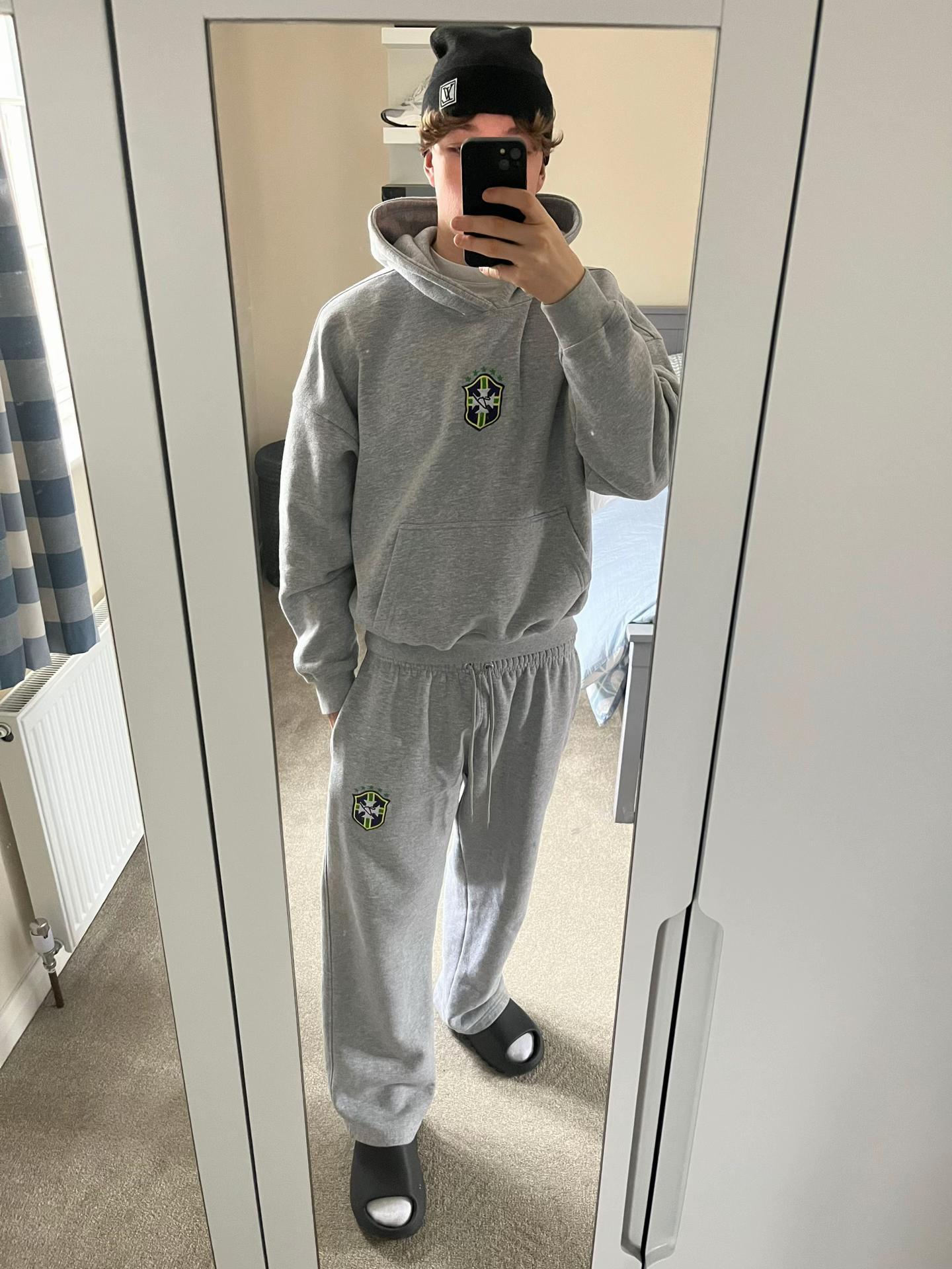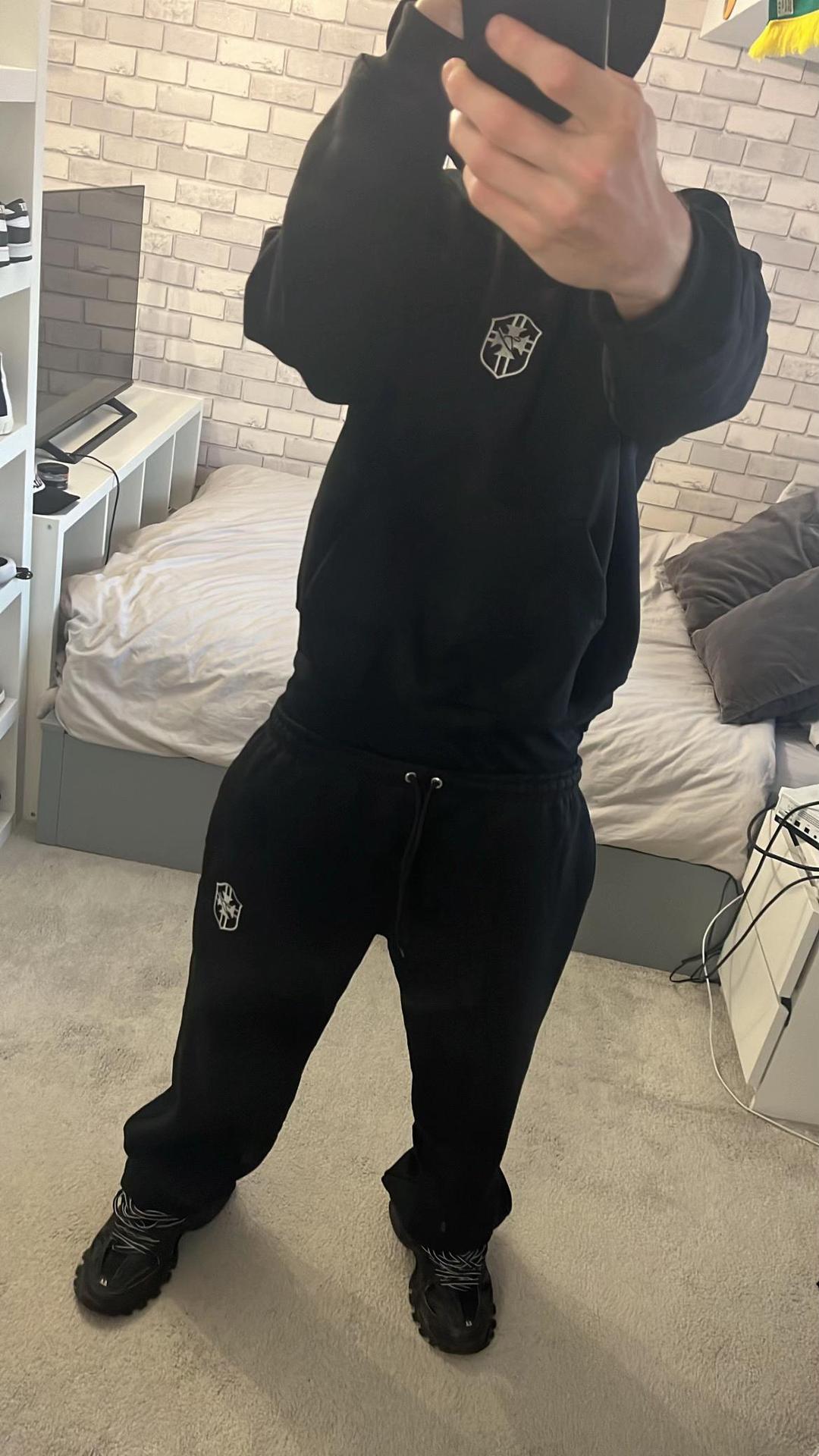 자수 가을과 겨울 트렌디 브랜드 패션 자수 풀오버 긴팔 후드 스웨트 세트 남성 캐주얼 올 매치 코트 트렌디스토어 가기