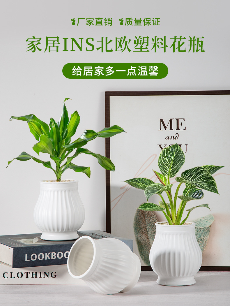 북유럽 스타일의 플라스틱 꽃병, 내구성이 뛰어나고 깨지기 쉽지 않으며, 인공 꽃 장식용 꽃병, 수분 저장 기능이 있는 꽃병