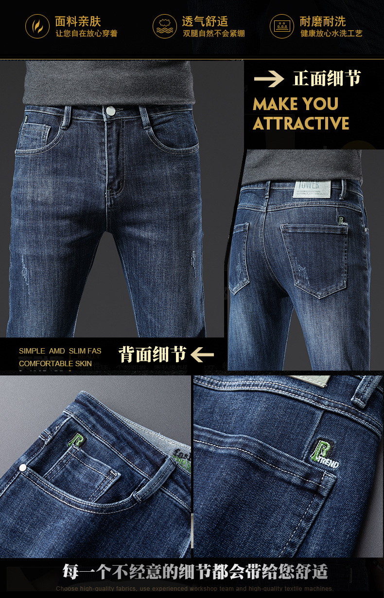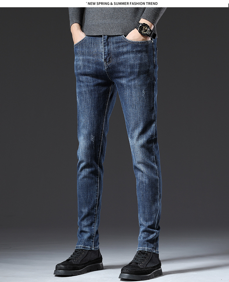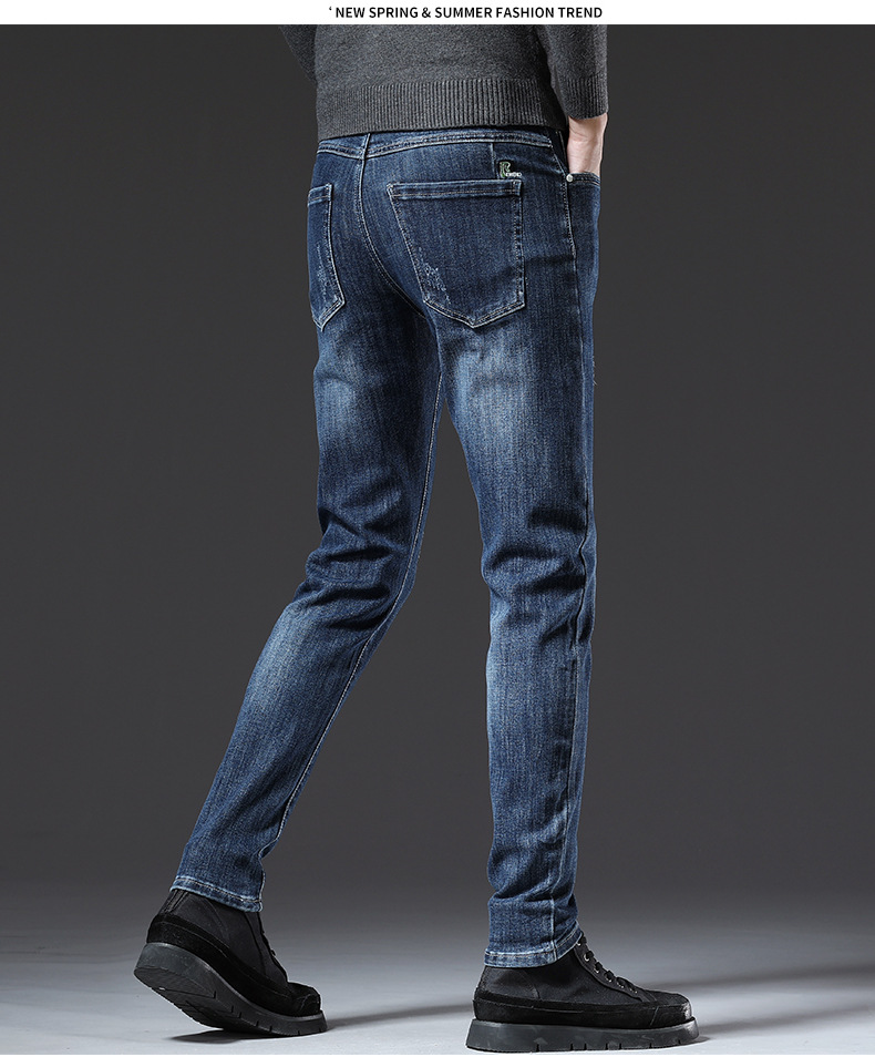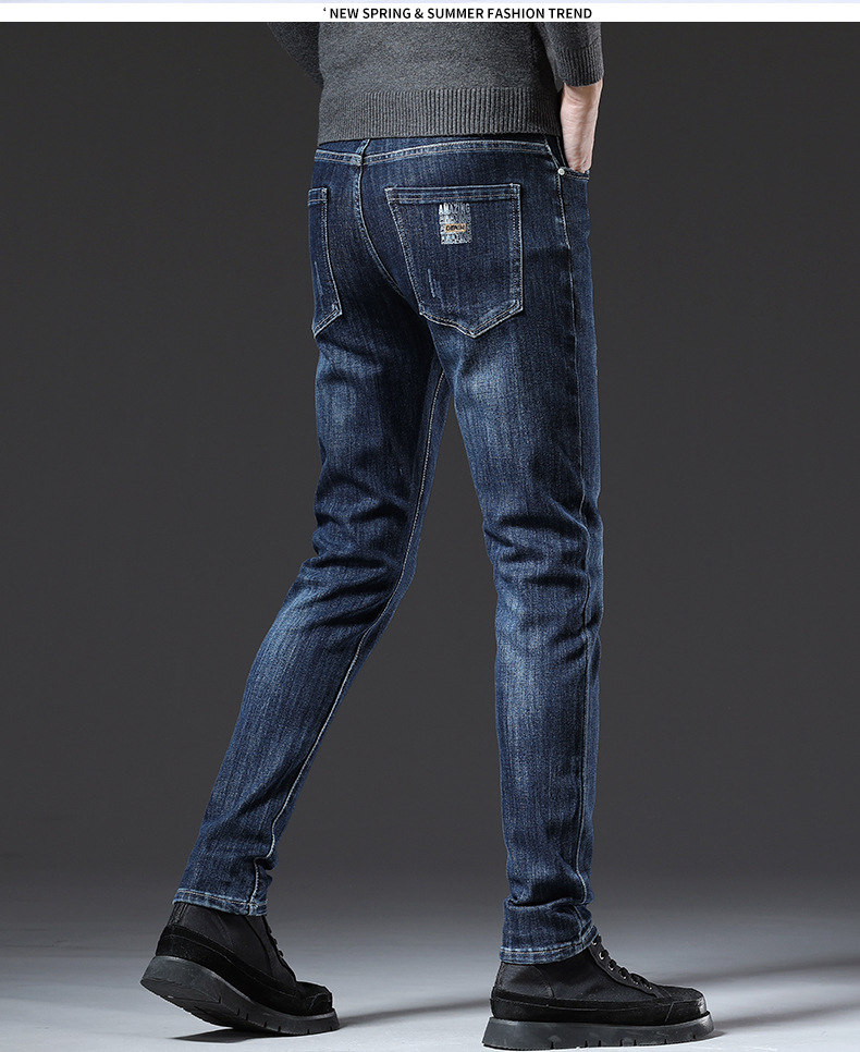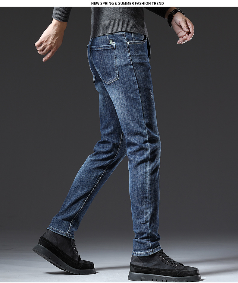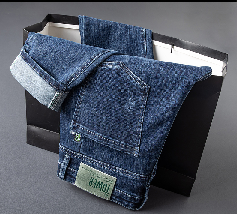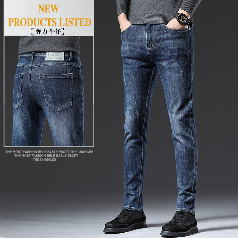 무료 배송 2024 청바지 남성용 가을 스트레치 슬림 트렌디 브랜드 한국 스타일 트렌디 브랜드 미드 웨이스트 캐주얼 스트레이트 레그스토어 가기