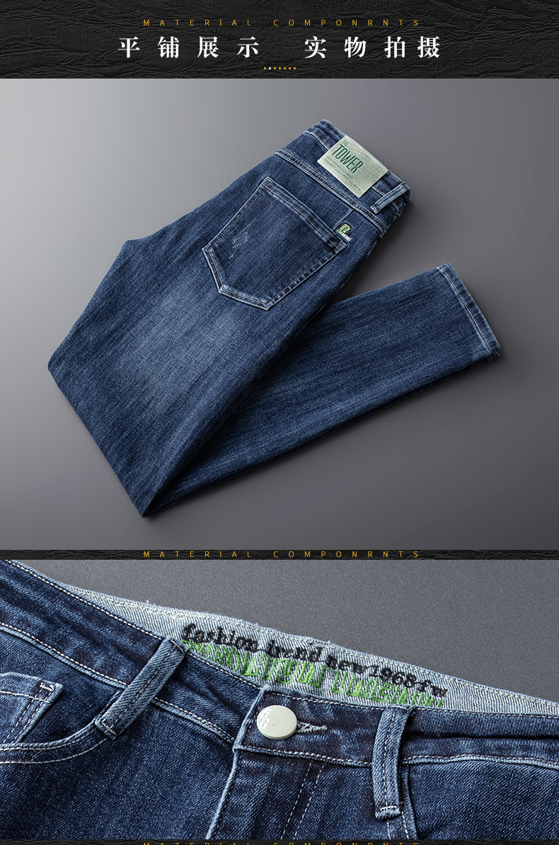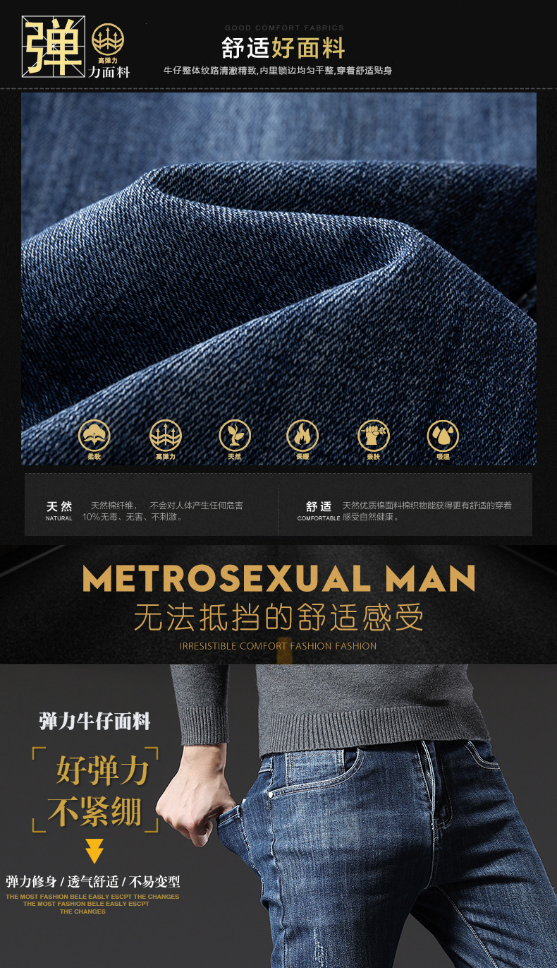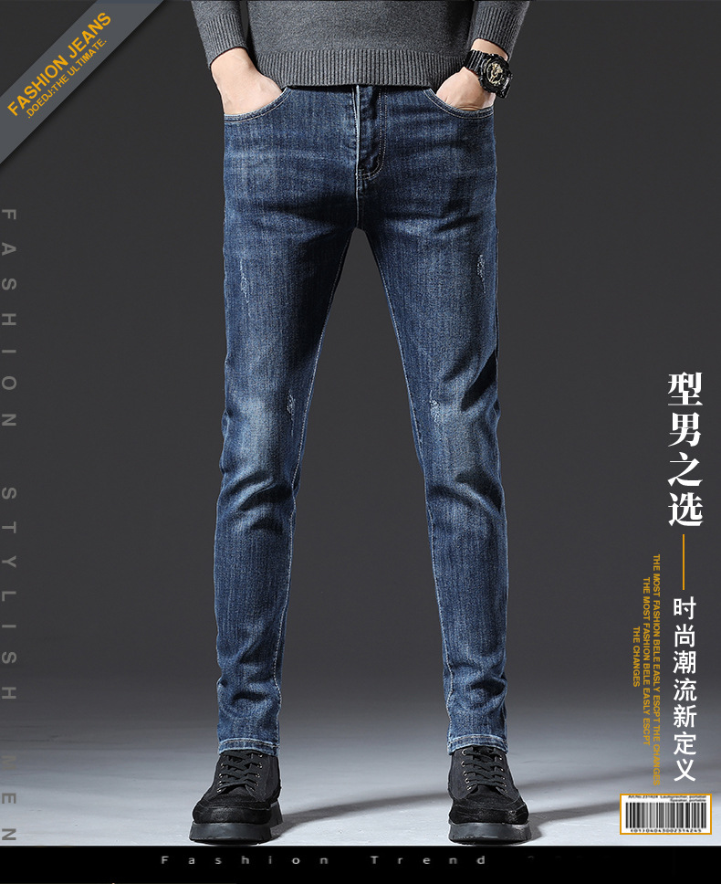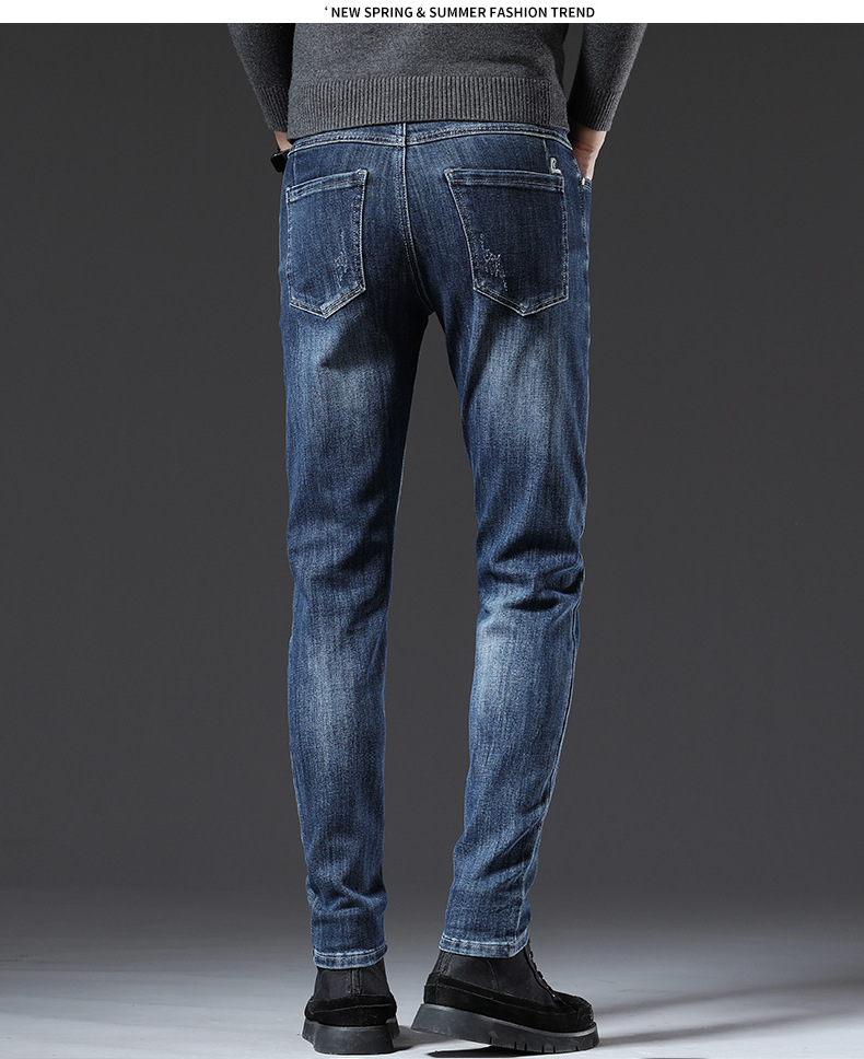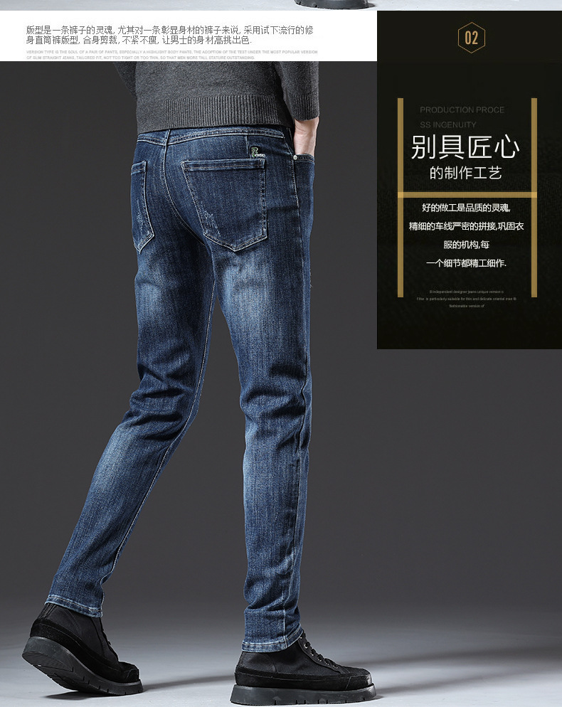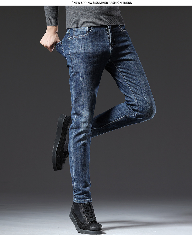 무료 배송 2024 청바지 남성용 가을 스트레치 슬림 트렌디 브랜드 한국 스타일 트렌디 브랜드 미드 웨이스트 캐주얼 스트레이트 레그스토어 가기