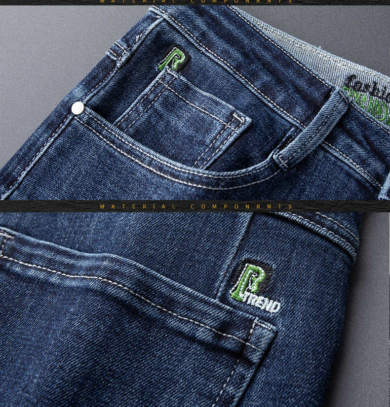 무료 배송 2024 청바지 남성용 가을 스트레치 슬림 트렌디 브랜드 한국 스타일 트렌디 브랜드 미드 웨이스트 캐주얼 스트레이트 레그