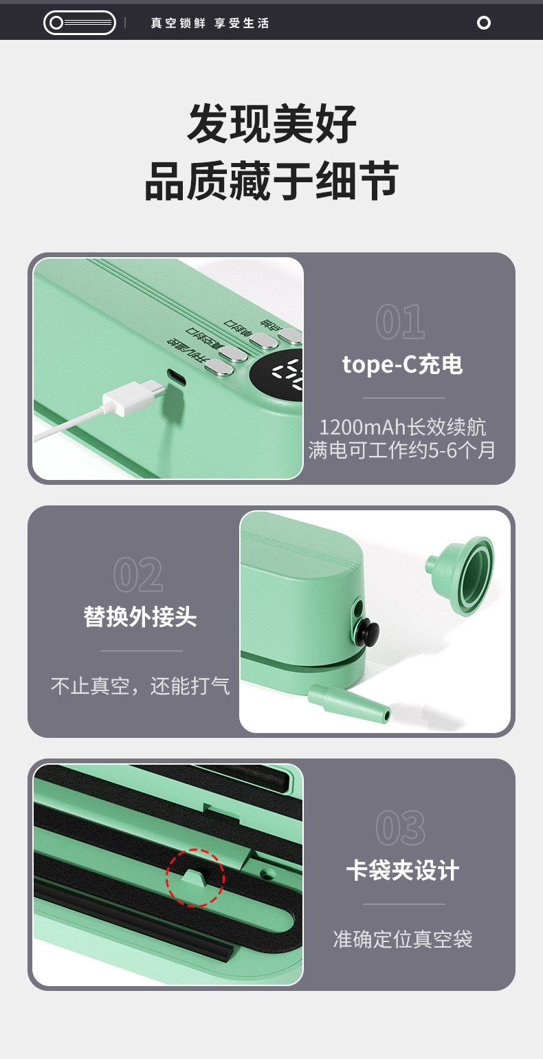 Xiyin temu 국경 폭발 무선 진공 밀봉 기계 작은 휴대용 식품 포장 플라스틱 밀봉 기계 신선한 유지 기계