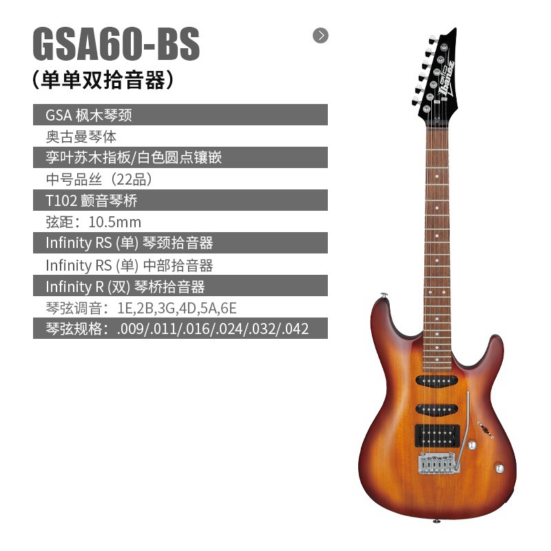 Ibanez GSA60 일렉트릭 기타 SA260/360/460 싱글 쉐이크 한정판 전문 남성과 여성 초보자스토어 가기