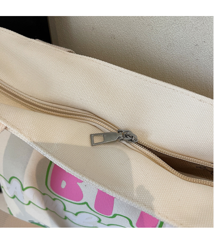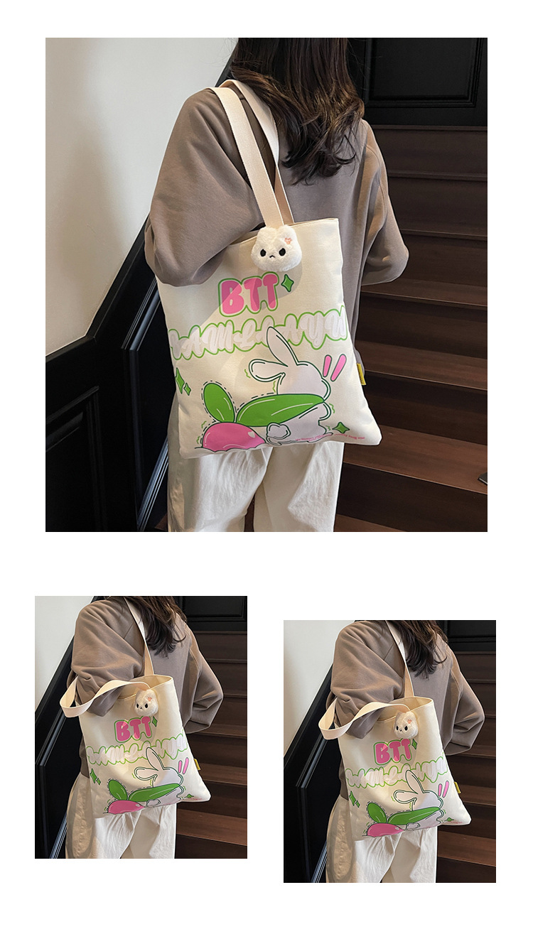 높은 가치의 인쇄 토끼 캔버스 가방 여성의 2025 봄과 여름 새로운 대용량 어깨 가방 귀여운 올 매치 핸드백스토어 가기