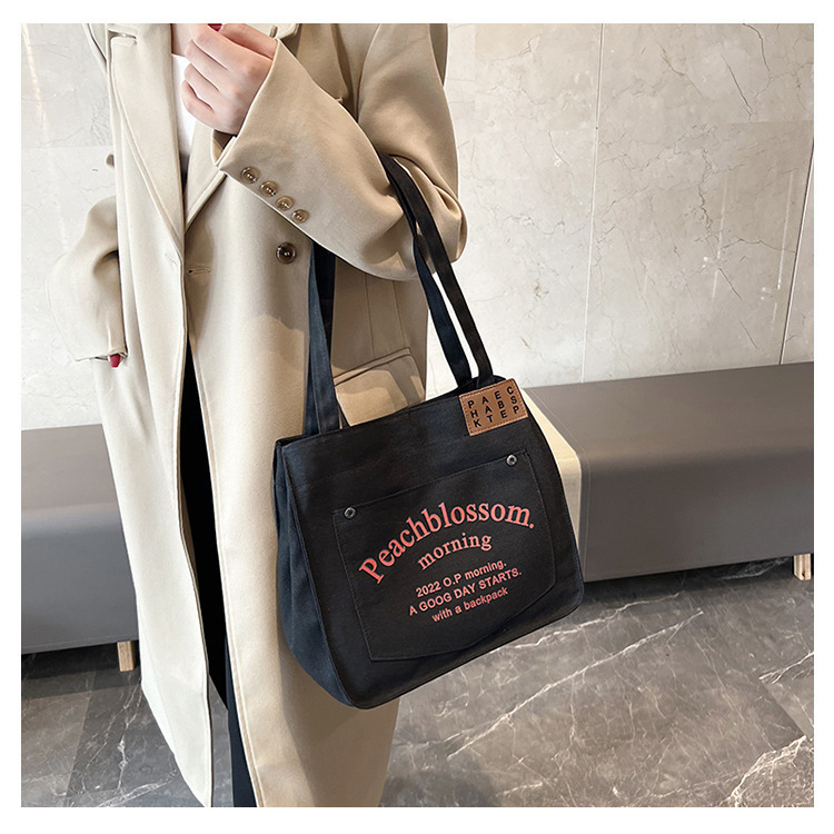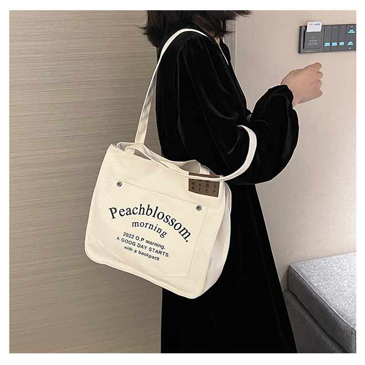 대용량 간단한 편지 보관 가방 유행 패션 캔버스 휴대용 쇼핑백 2025 새로운 어깨 토트 백