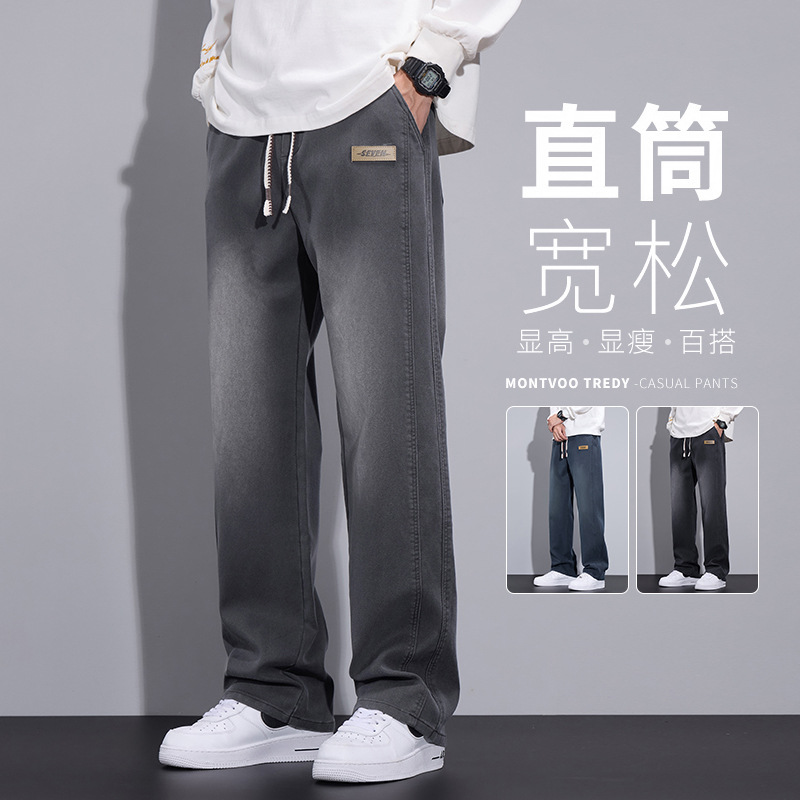 무료 배송 루즈 스트레이트 레트로 청바지 2025 봄 여름 신작 트렌디 브랜드 남성 와이드 레그 캐주얼 데님 레이스토어 가기