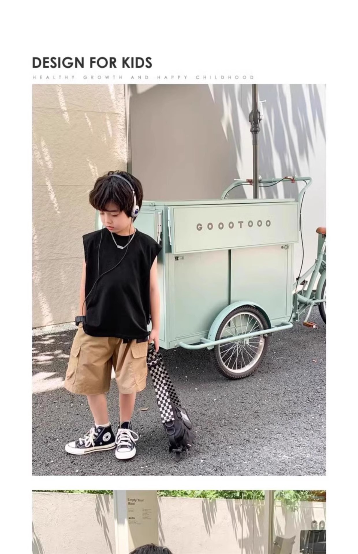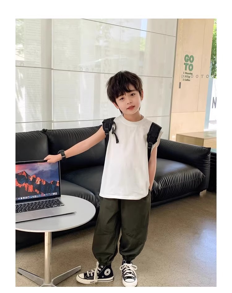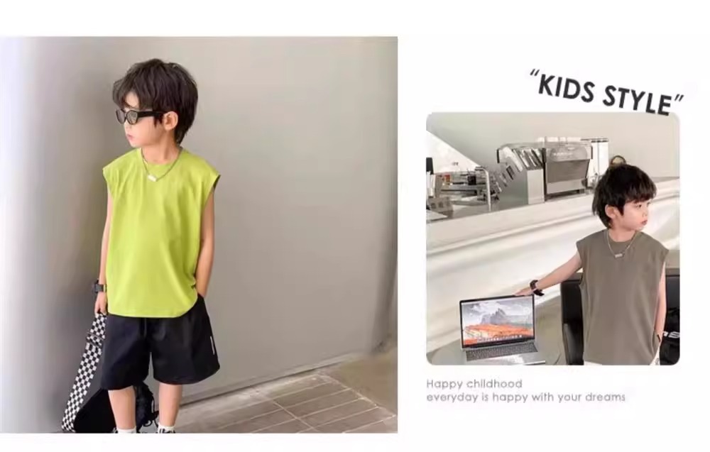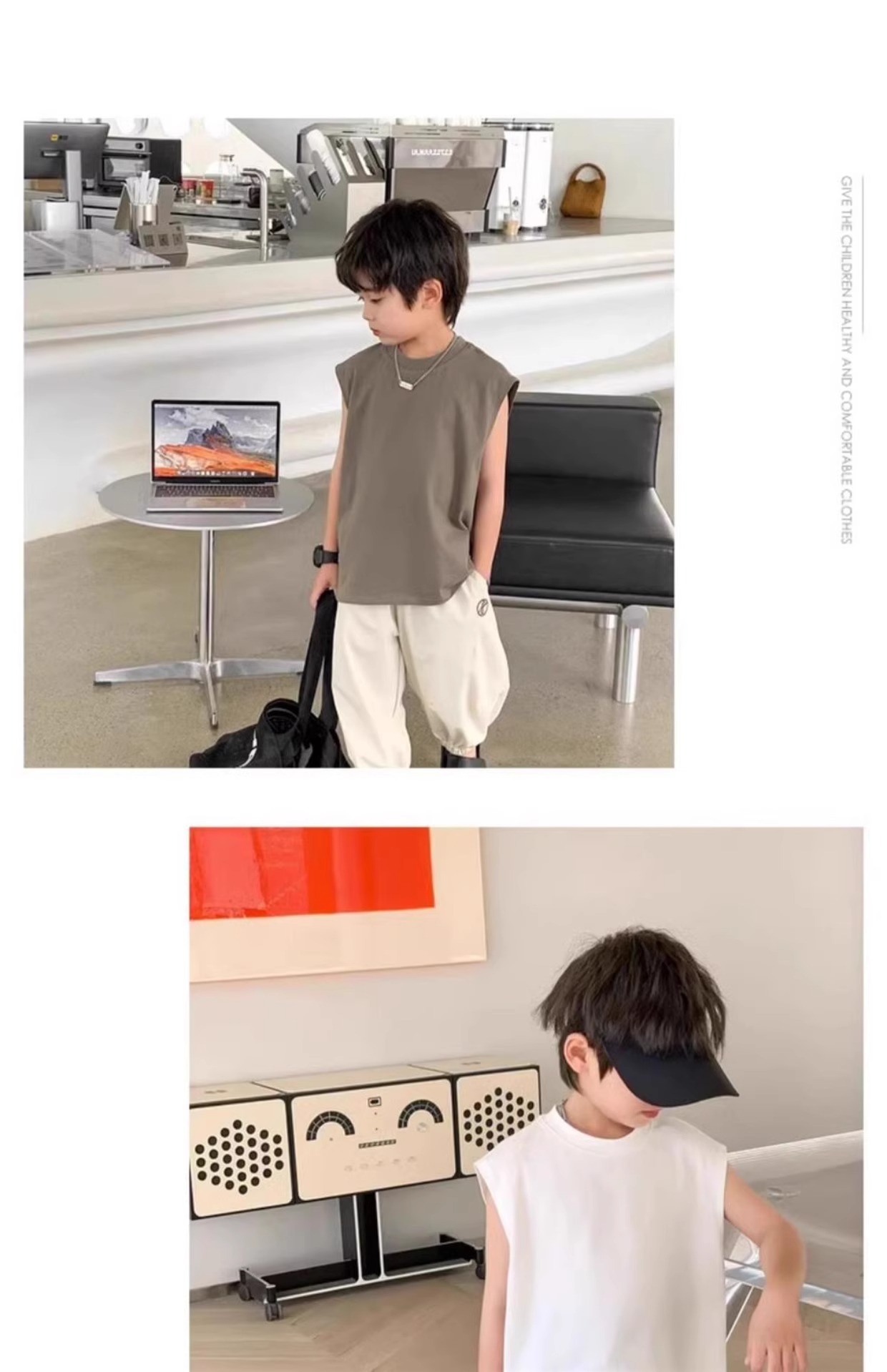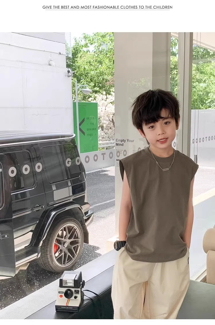 한팬 아동복 소년 티셔츠 2025 신아동 한팬 민소매 조끼 소년 솔리드 컬러 탑 루즈 티셔츠스토어 가기