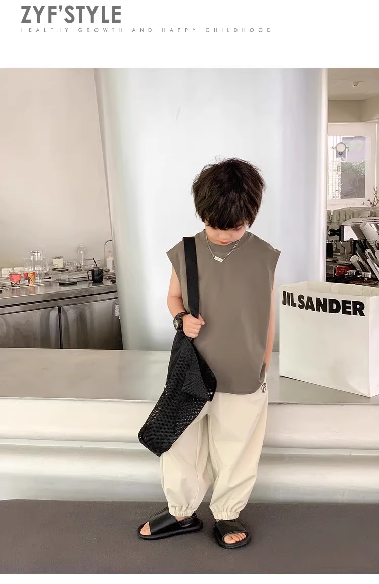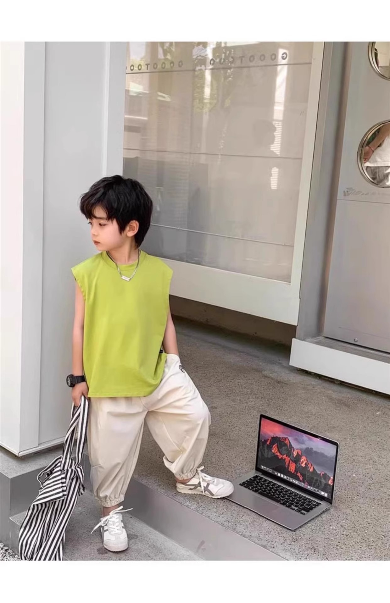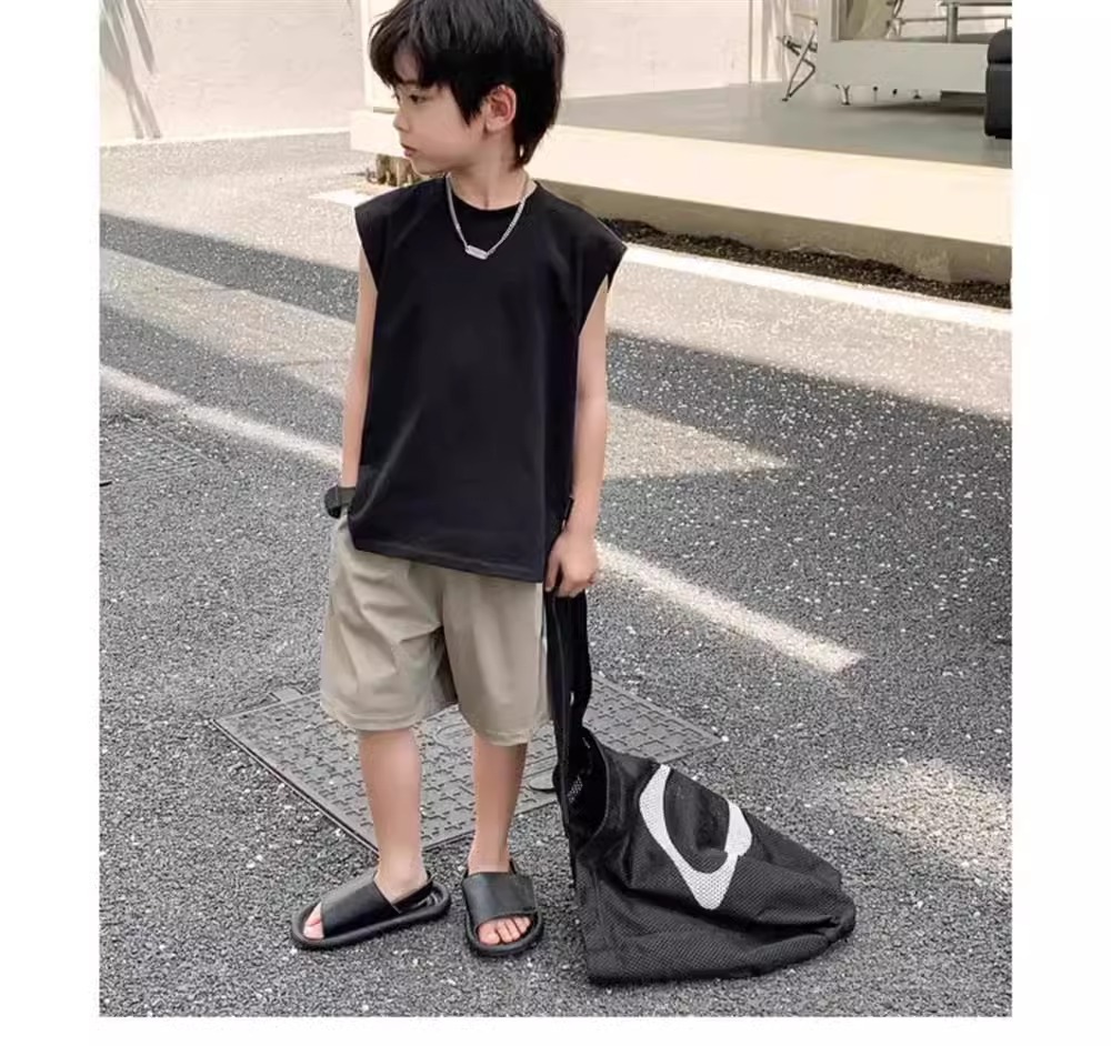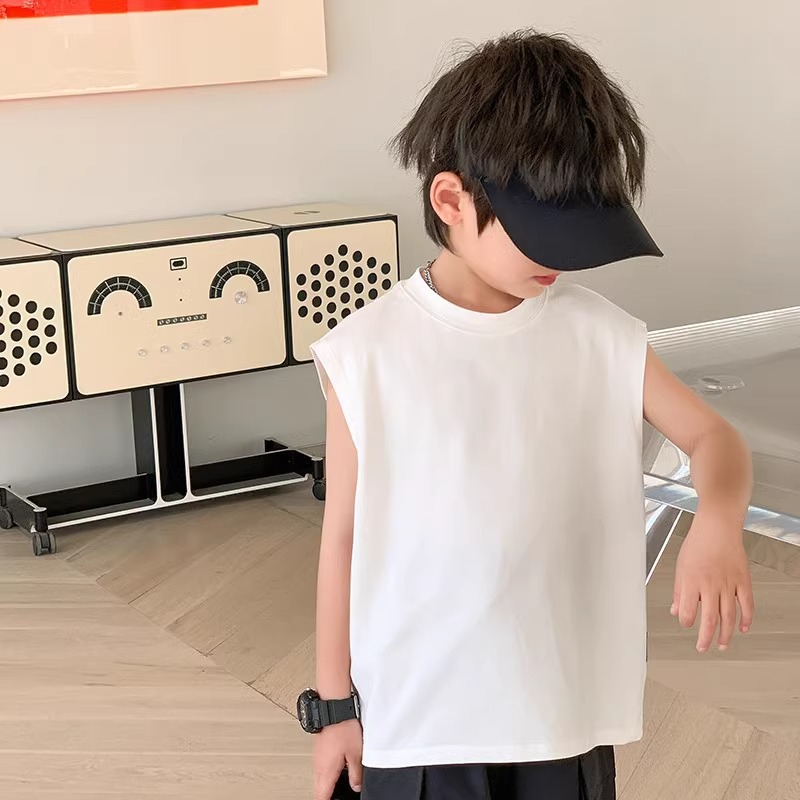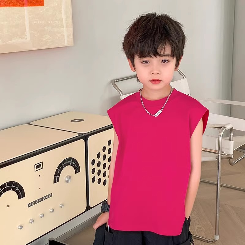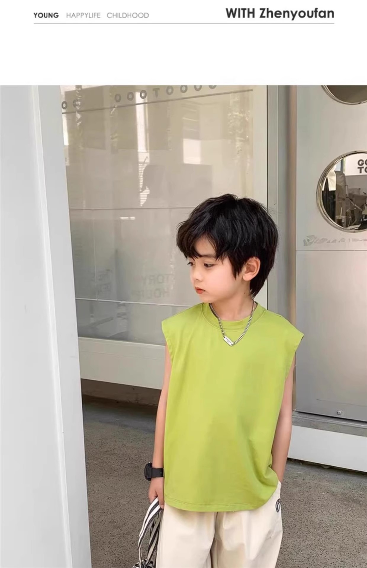 한팬 아동복 소년 티셔츠 2025 신아동 한팬 민소매 조끼 소년 솔리드 컬러 탑 루즈 티셔츠