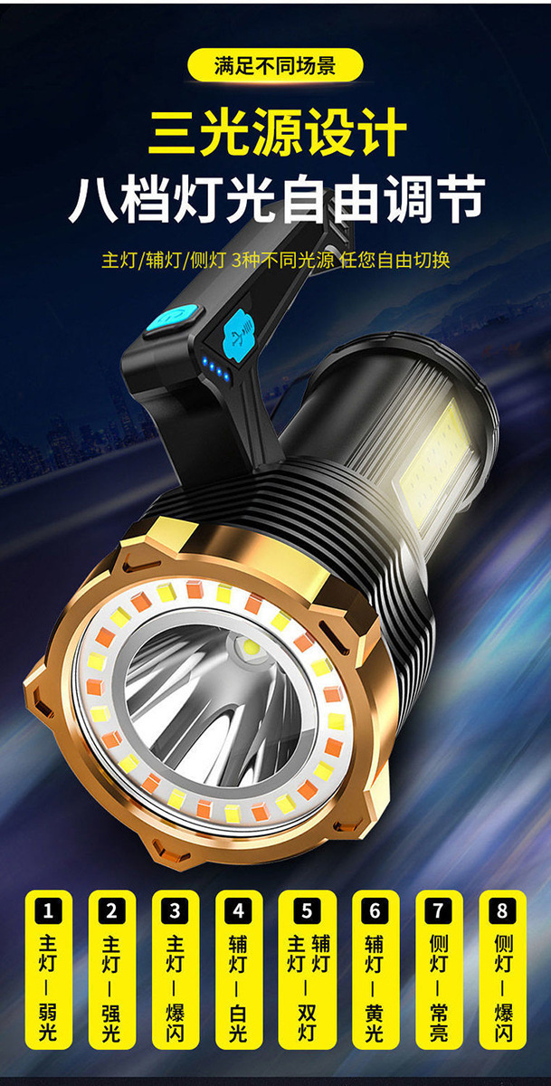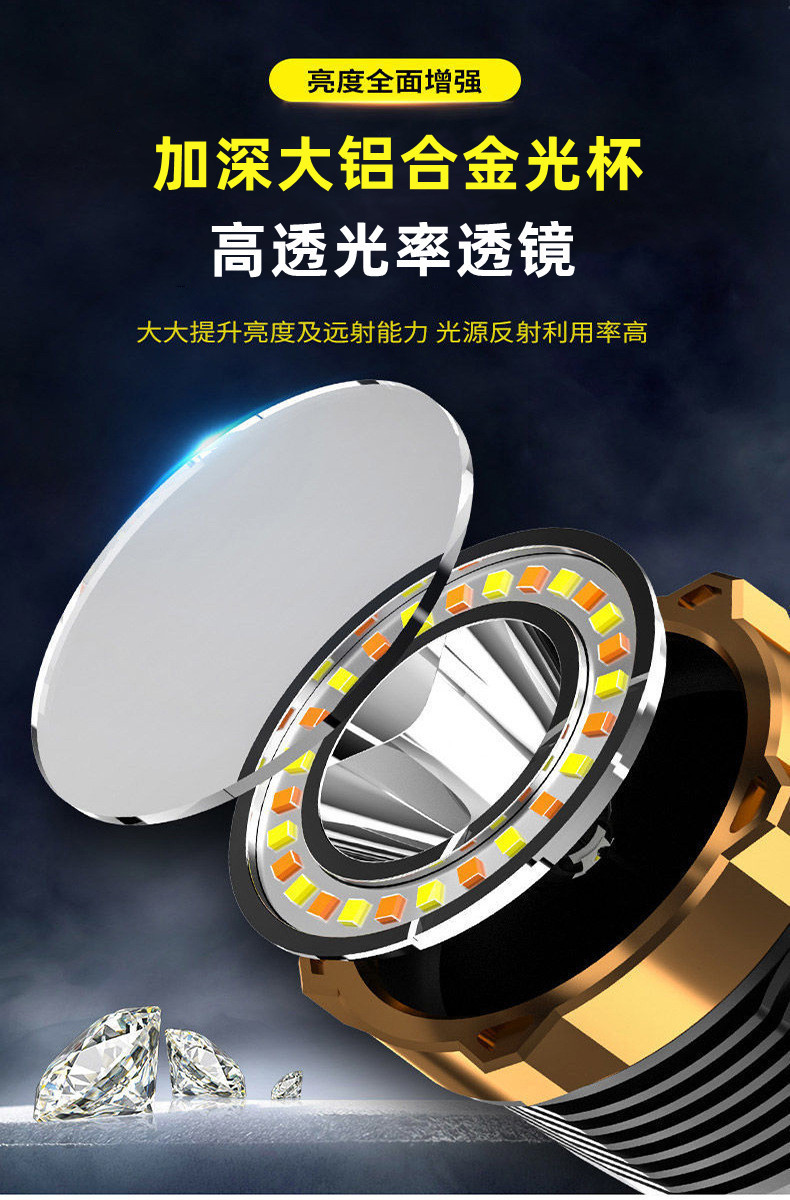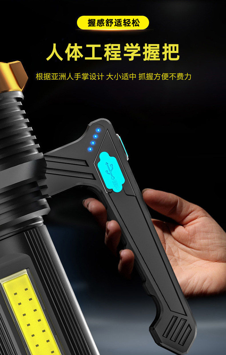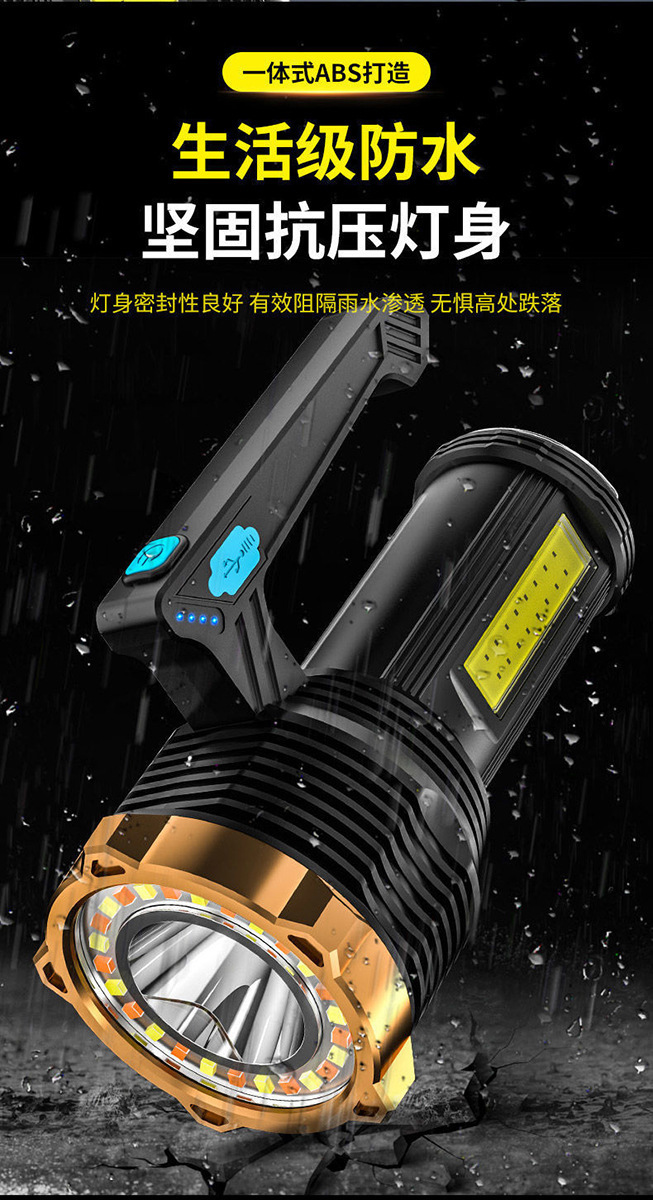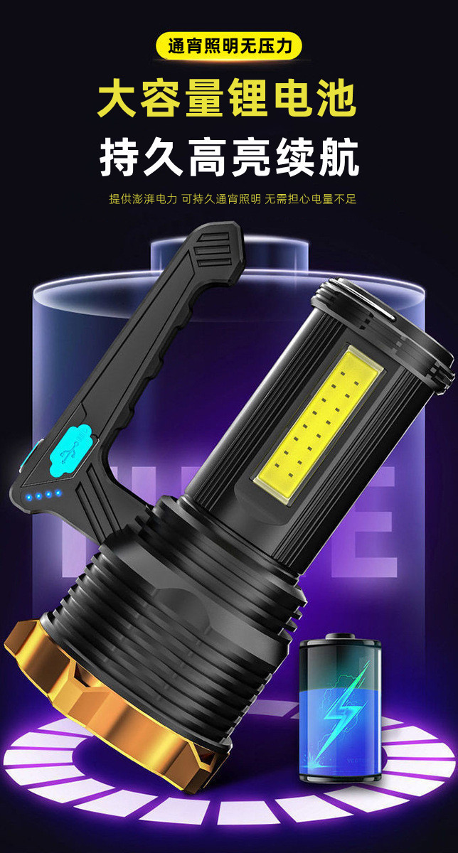LED 손전등 USB 충전식 야외 장거리 탐조등(측면 조명 작업등 포함) 듀오 노란색 조명 휴대용 램프스토어 가기