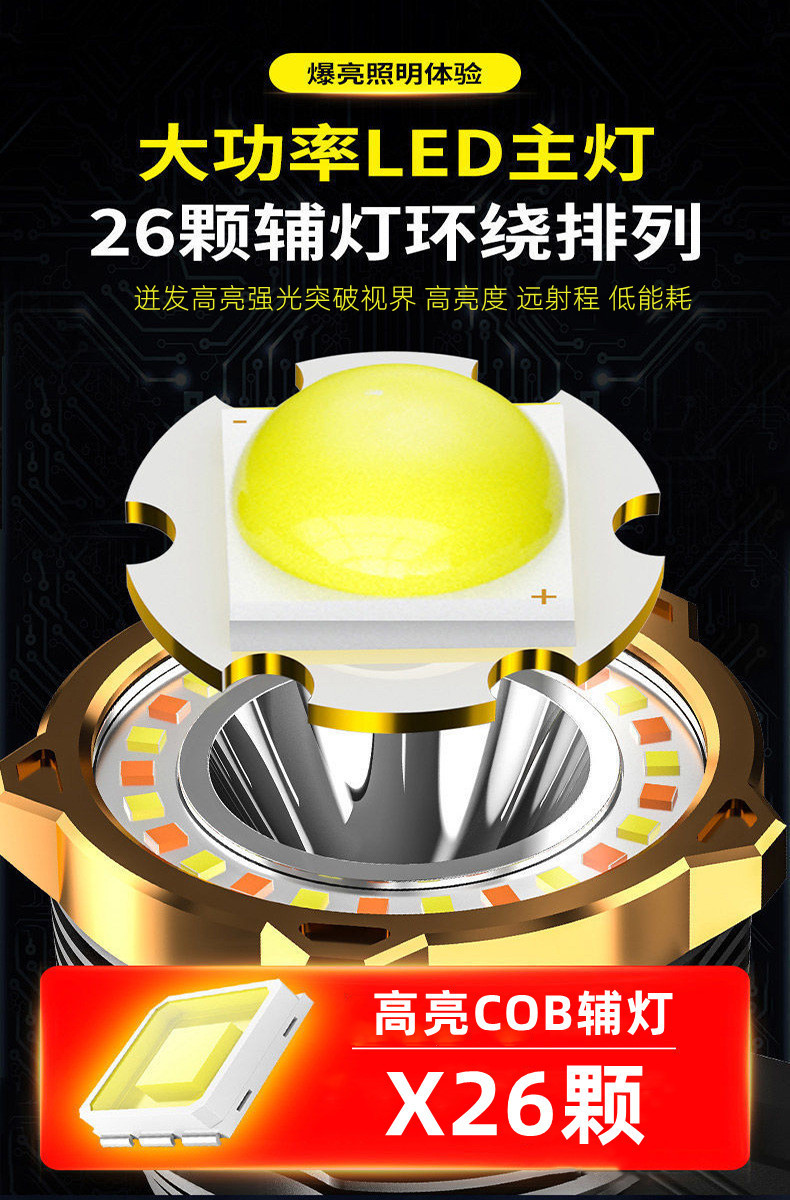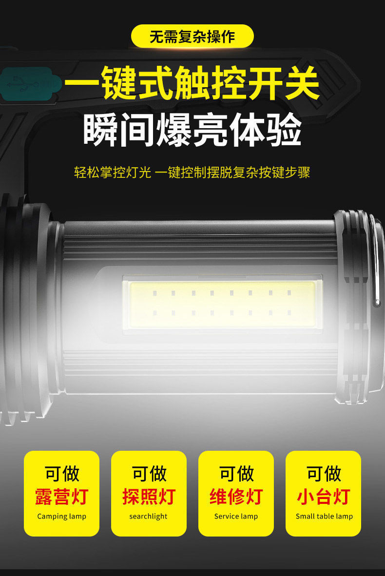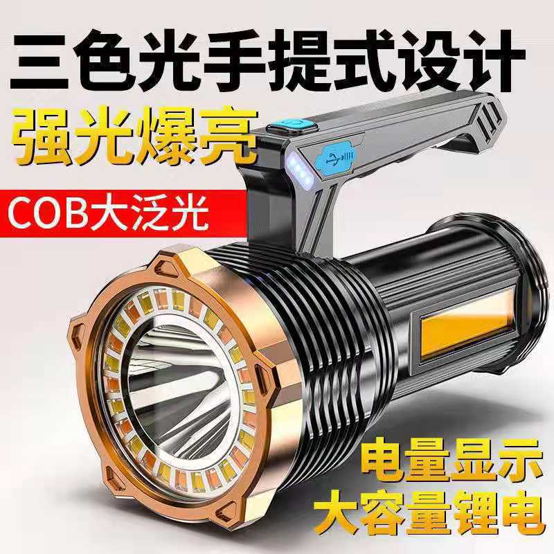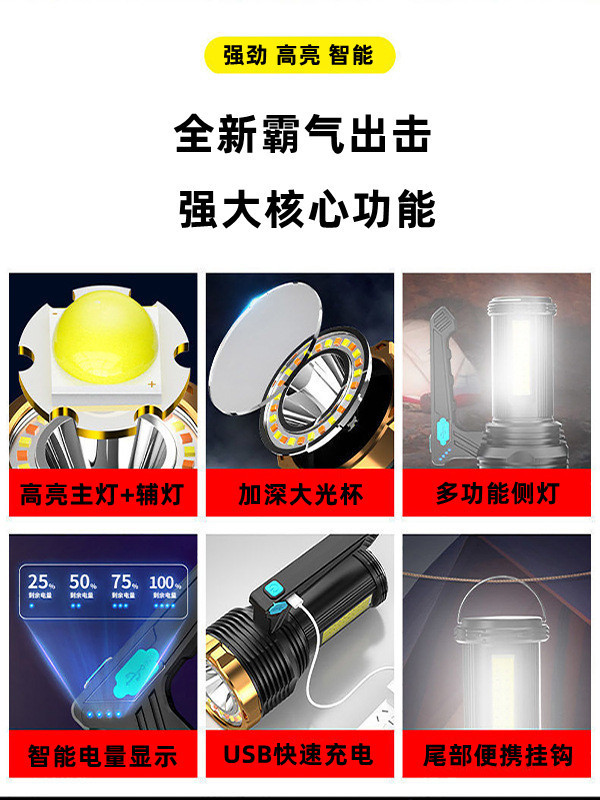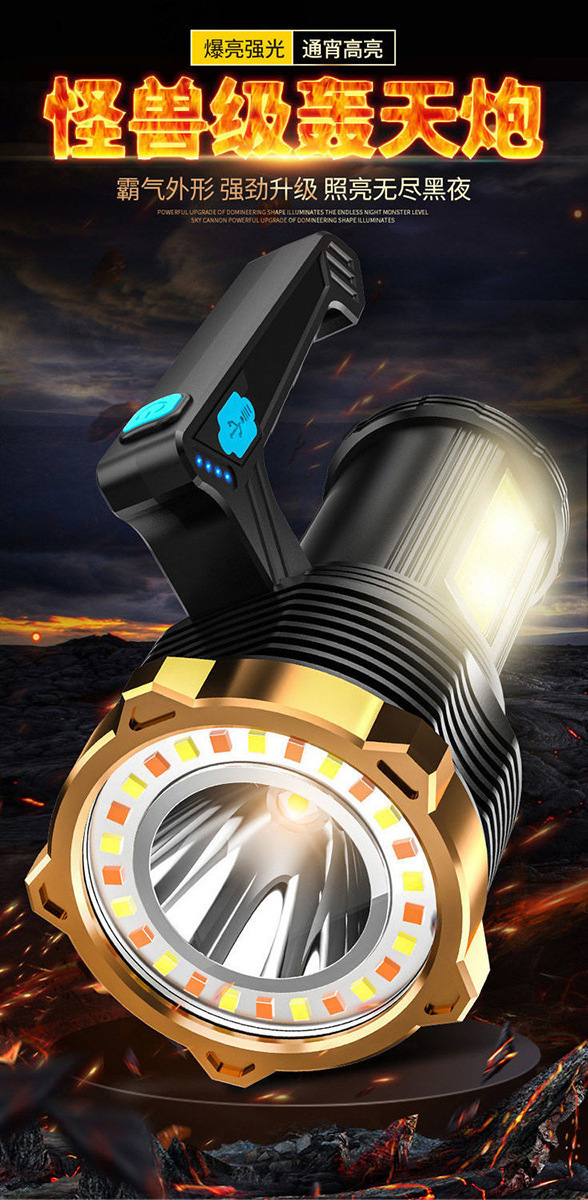 LED 손전등 USB 충전식 야외 장거리 탐조등(측면 조명 작업등 포함) 듀오 노란색 조명 휴대용 램프스토어 가기