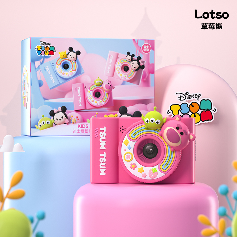 어린이의 새로운 딸기 곰 카메라 소년과 소녀 장난감은 사진과 비디오를 찍을 수 있습니다 미니 고화질 디지털 카메라 선물스토어 가기