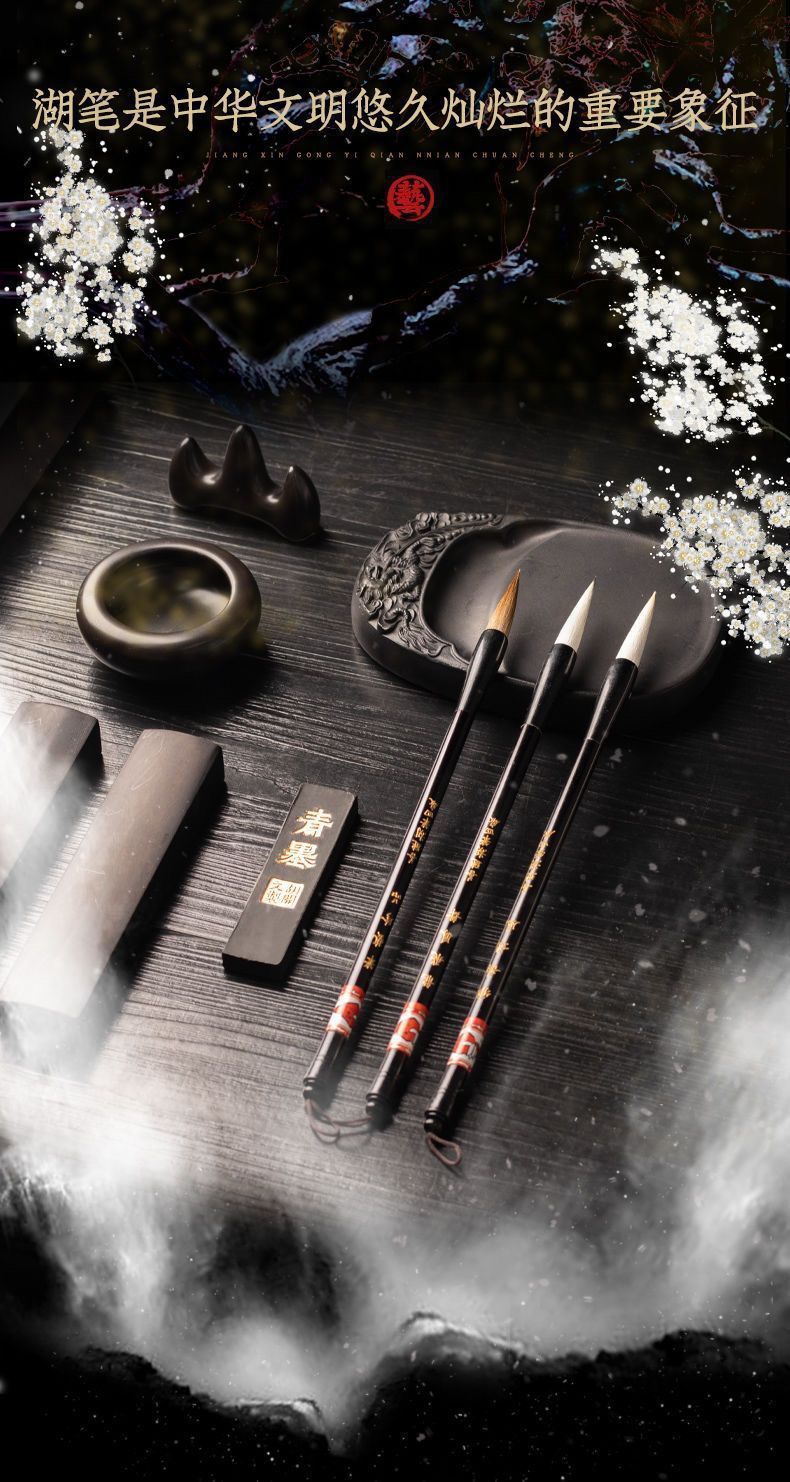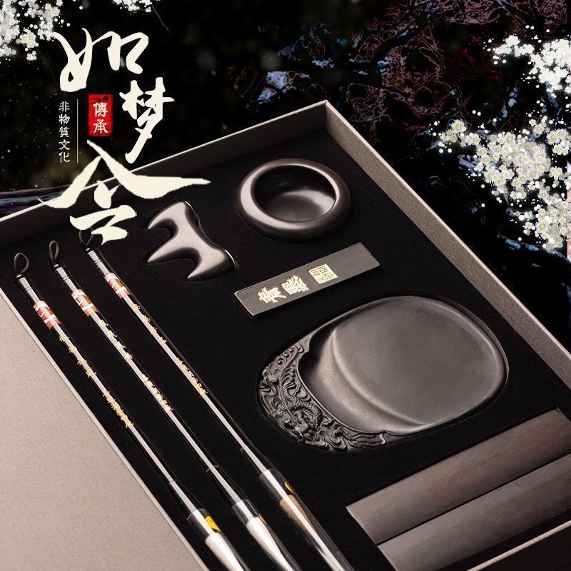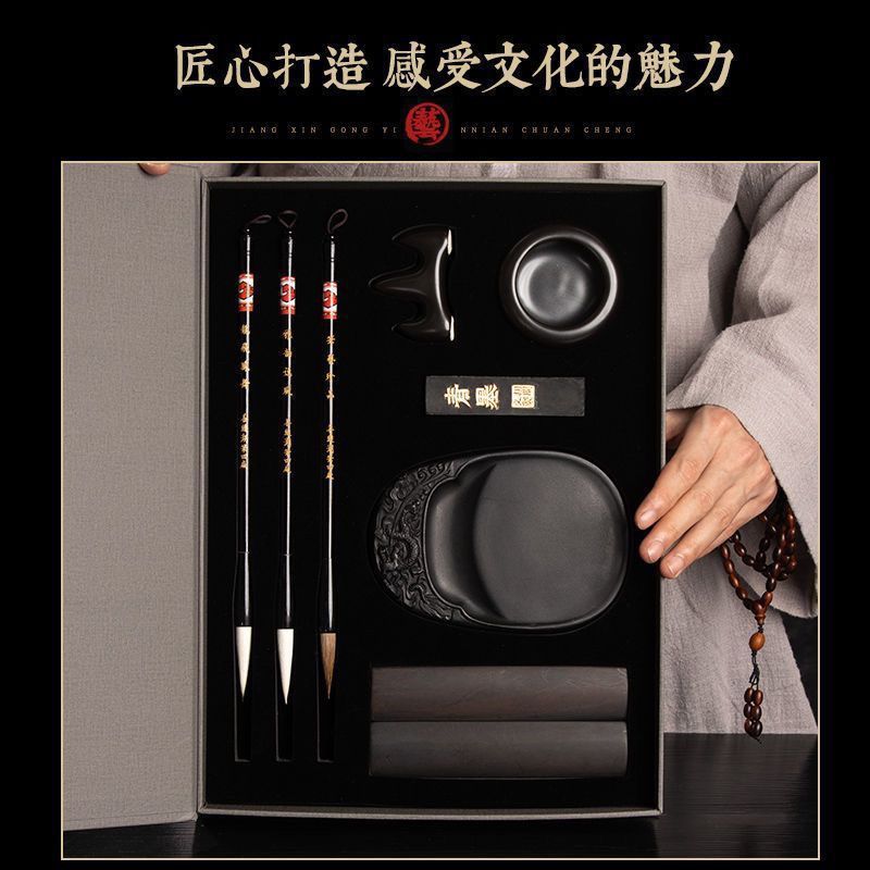 브러쉬 문방 4대 보물, 러몽링펜, 고대풍 선물상자, 펜, 잉크, 종이, 잉크 세트, 초보자를 위한 고급 초급 세트