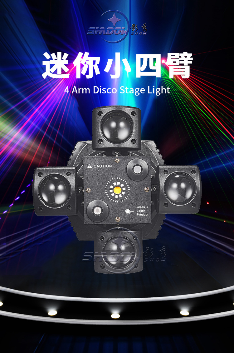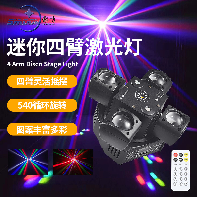 미니 4암 LED 다채로운 회전 이동 헤드 라이트 KTV 바 무대 조명 원격 제어 분위기 조명 빔 레이저 라이트스토어 가기