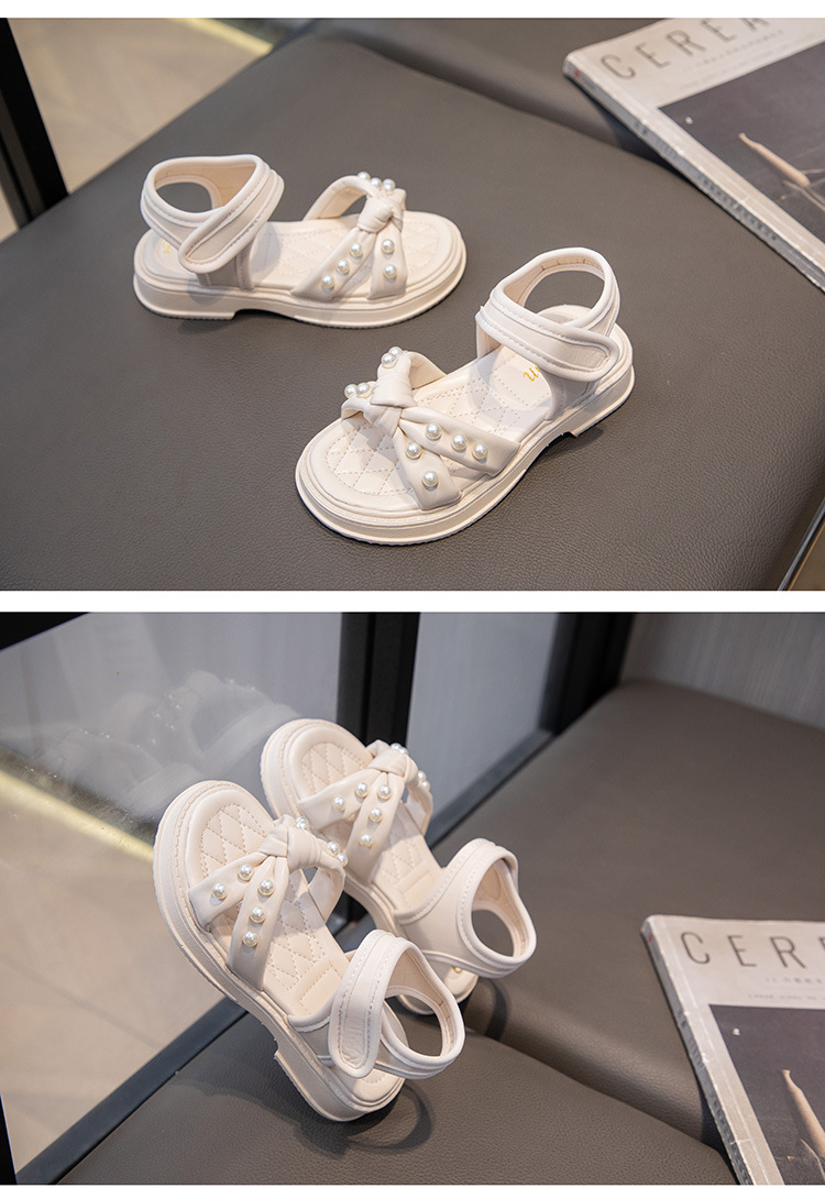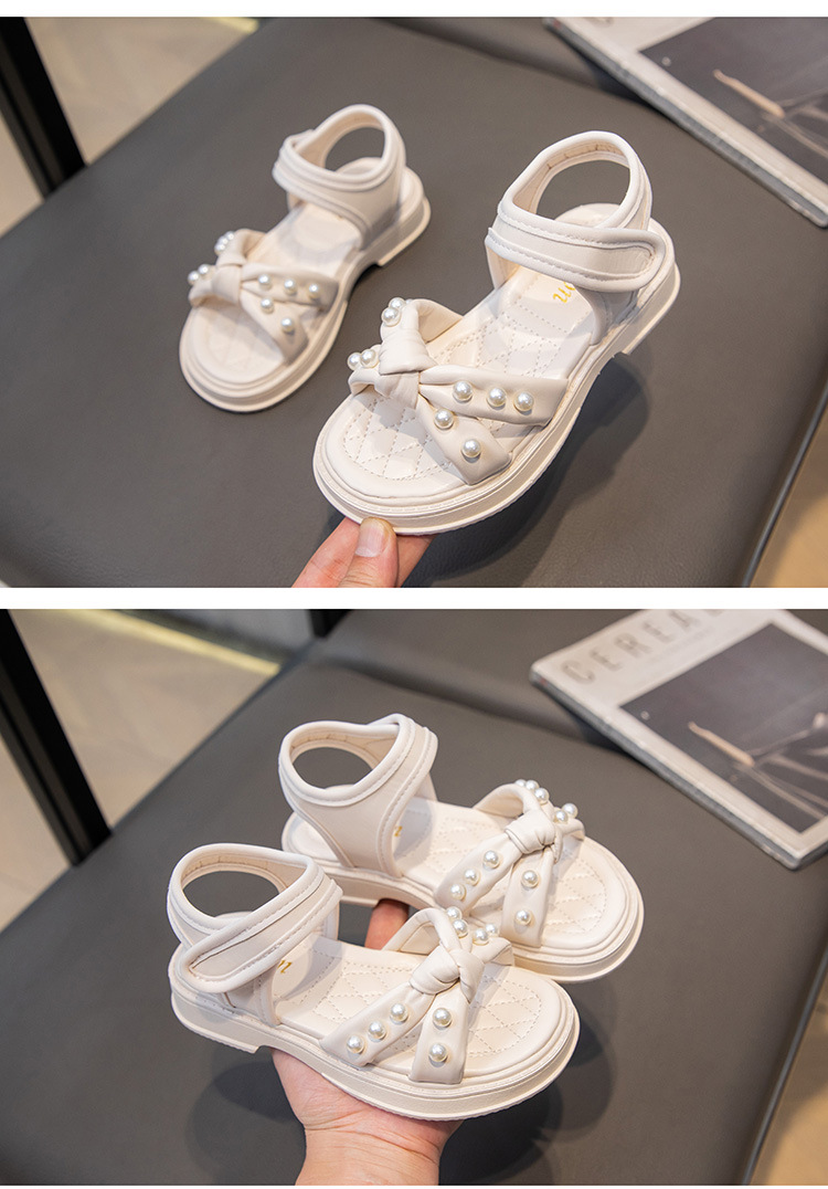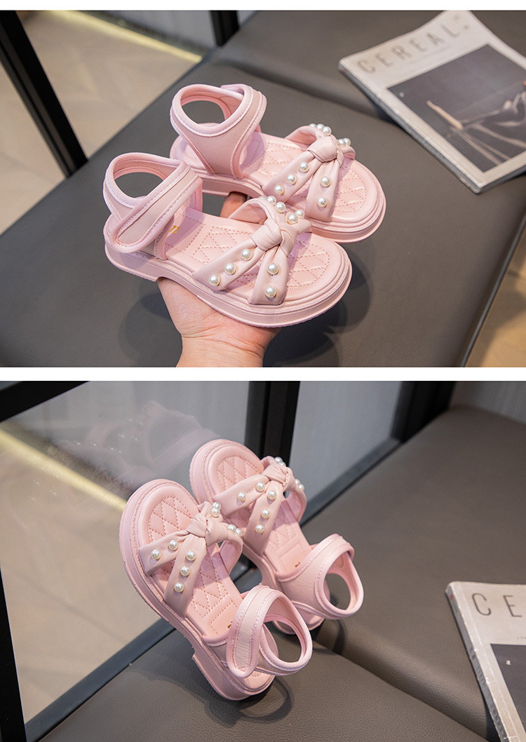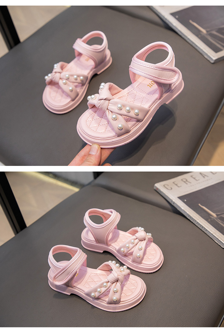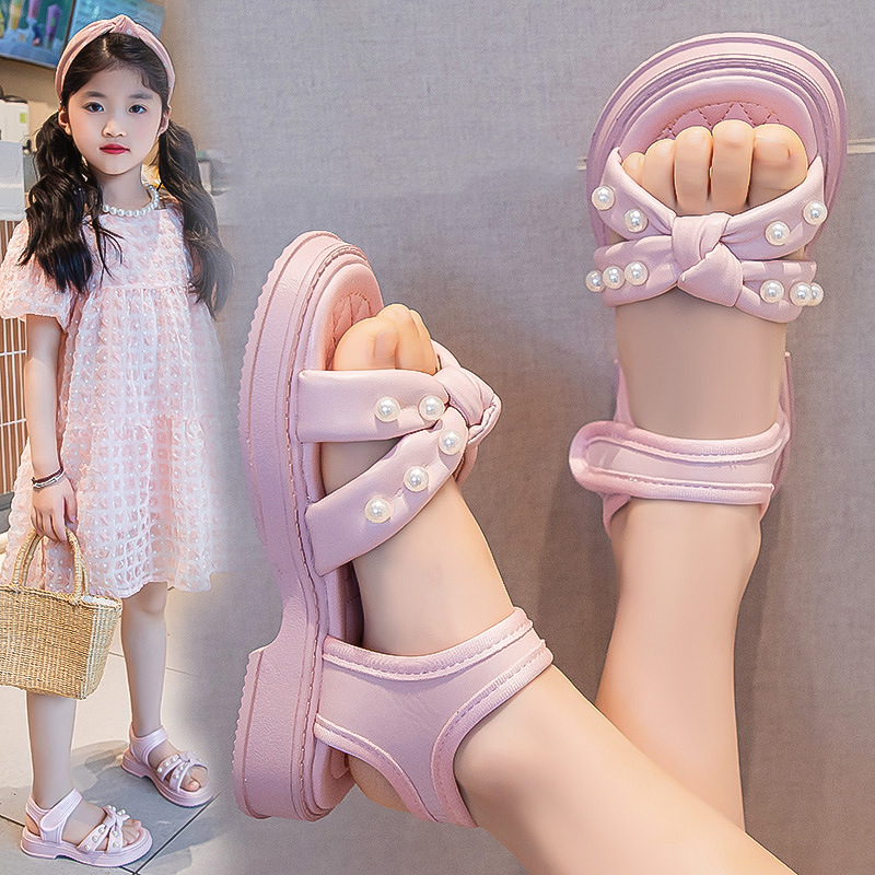소녀 샌들 2025 여름 새로운 진주 어린이 신발 여름 소녀 스타일 공주 신발 비 슬립 비치 신발스토어 가기