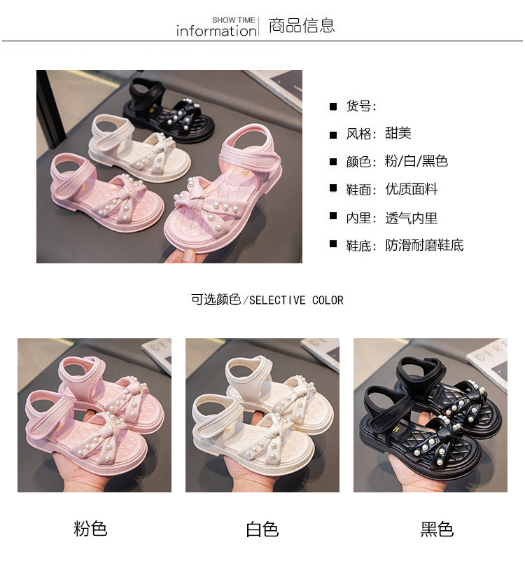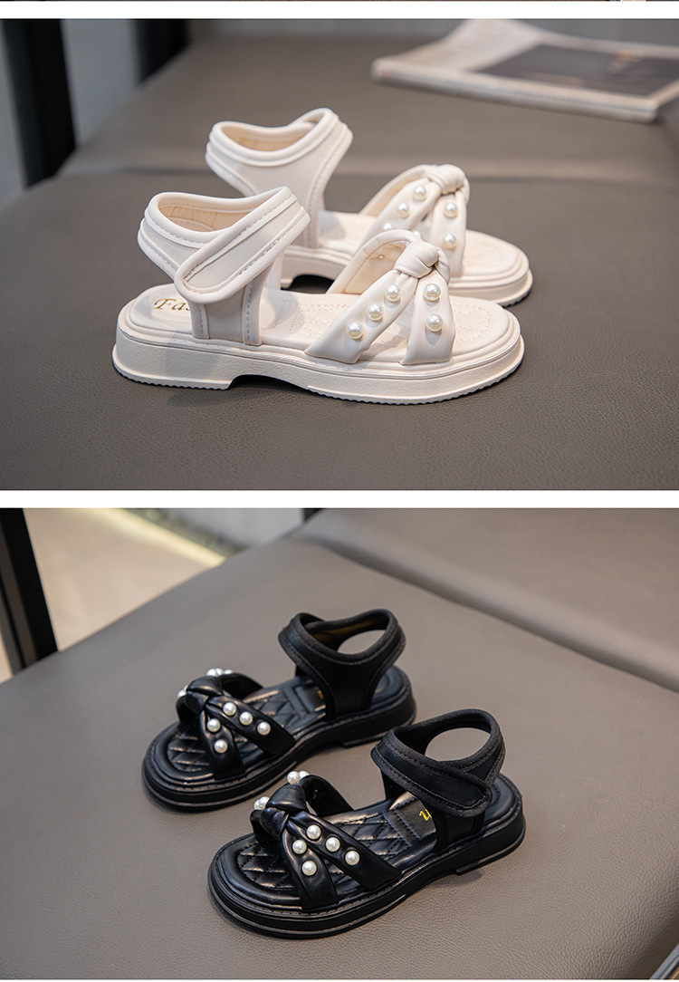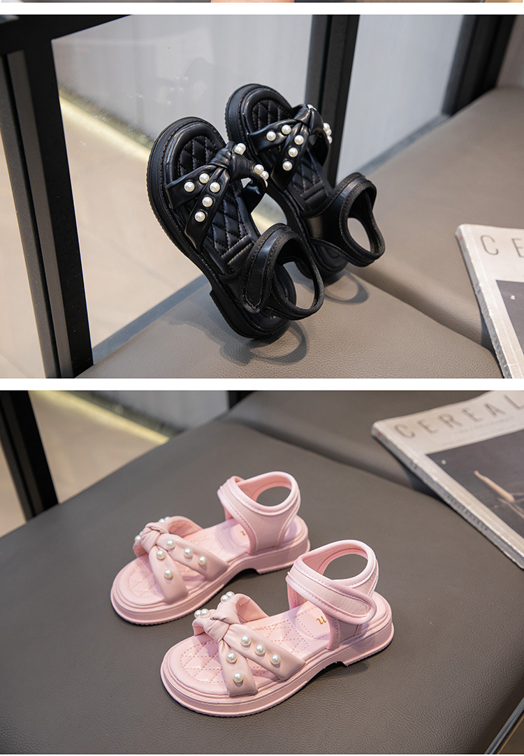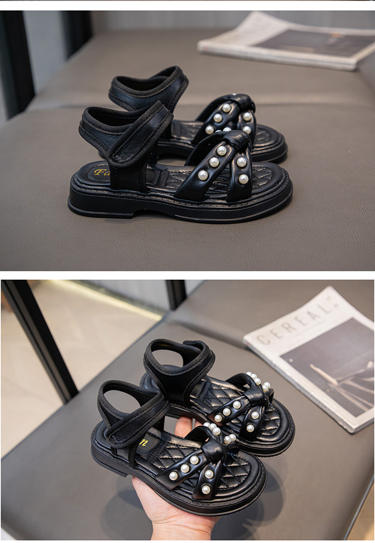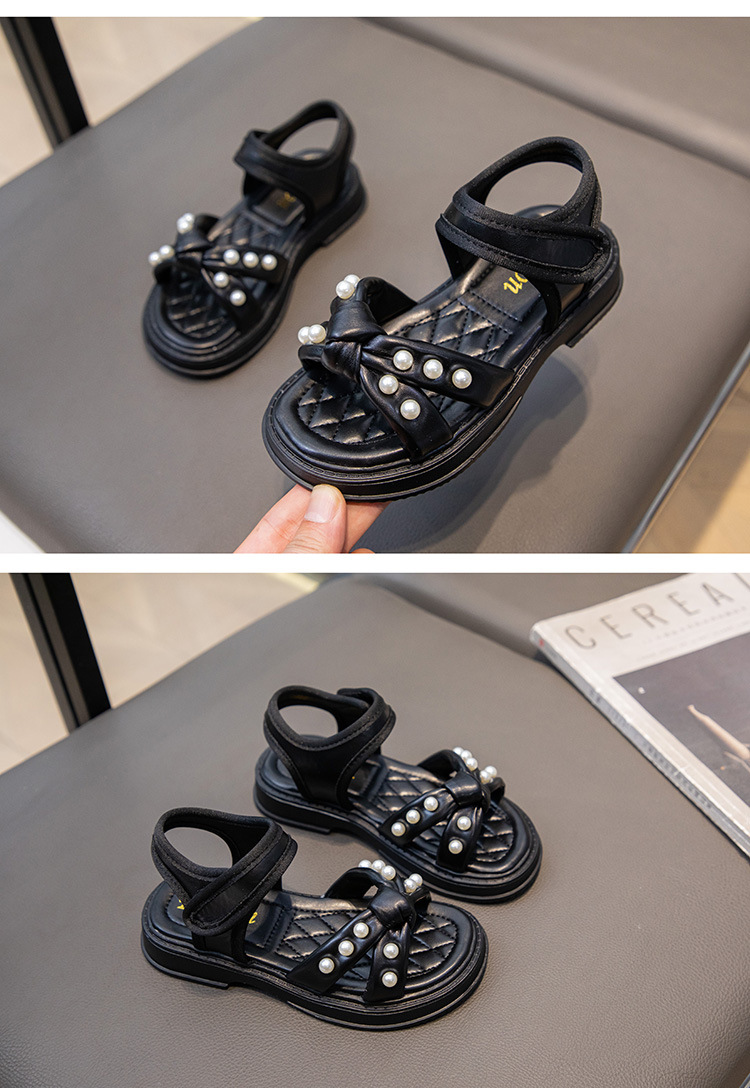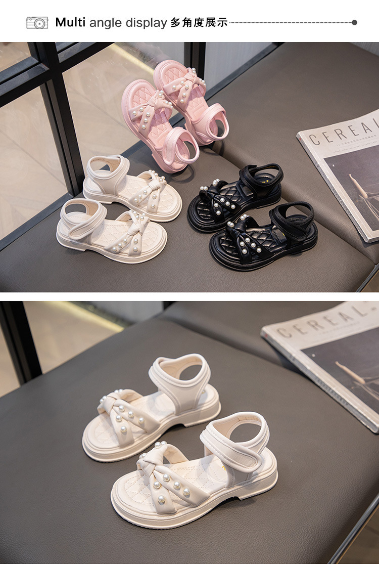 소녀 샌들 2025 여름 새로운 진주 어린이 신발 여름 소녀 스타일 공주 신발 비 슬립 비치 신발스토어 가기