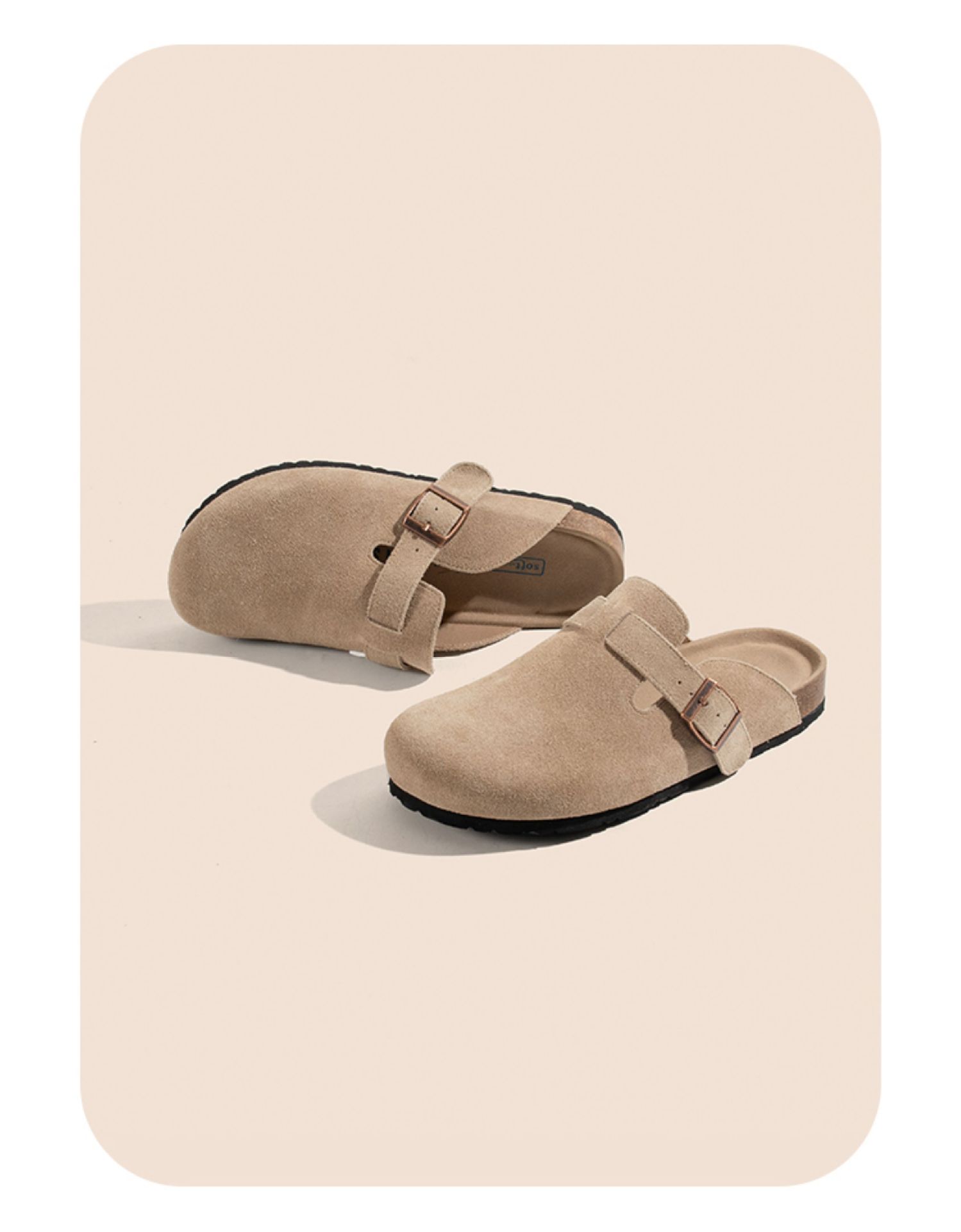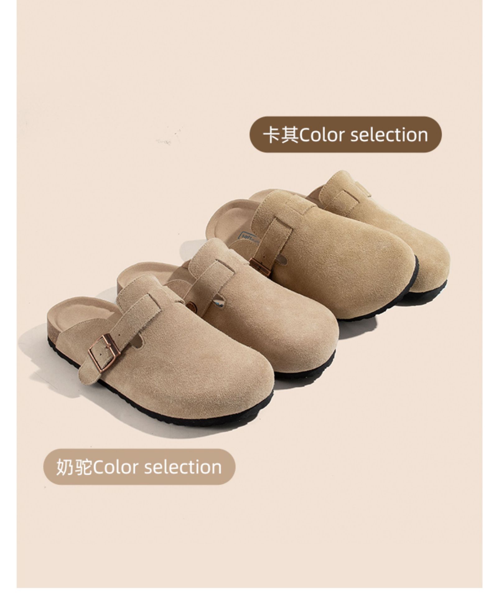 Birkken Source ~ 정품 가죽 Birkken 신발 Cowhide 두꺼운 유일한 외부 슬리퍼 여성용 새 여성용 Xaboken 하프 슬리퍼 초가을스토어 가기