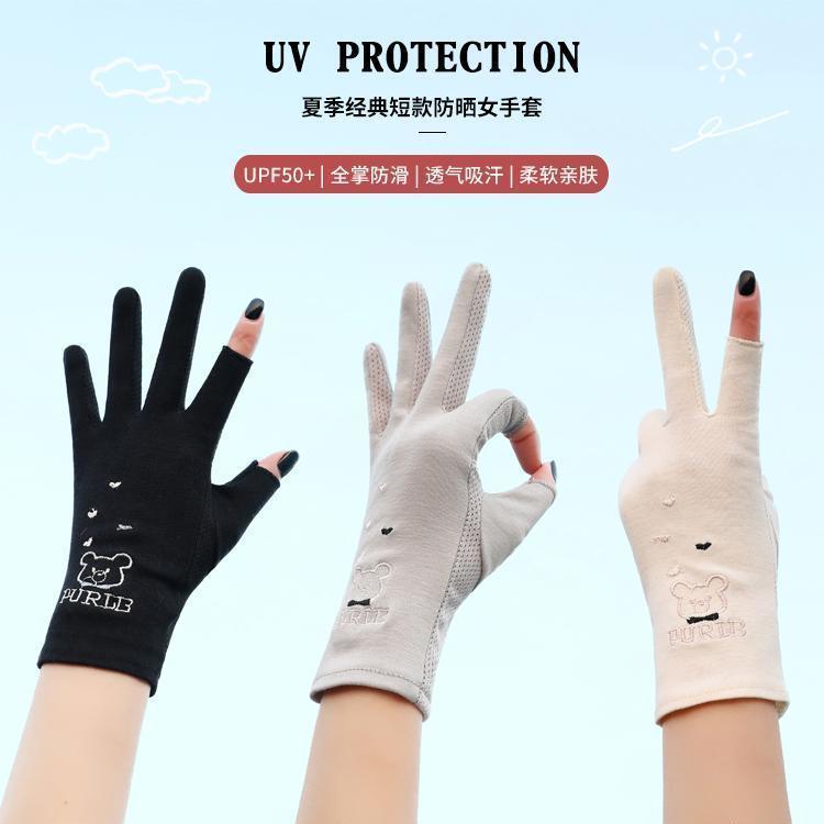 여름철 여성을 위한 새로운 자외선 차단제 얇은 장갑, 자외선 차단, 두 손가락 운전 및 사이클링, 통기성 미끄럼 방지 터치 스크린 장갑