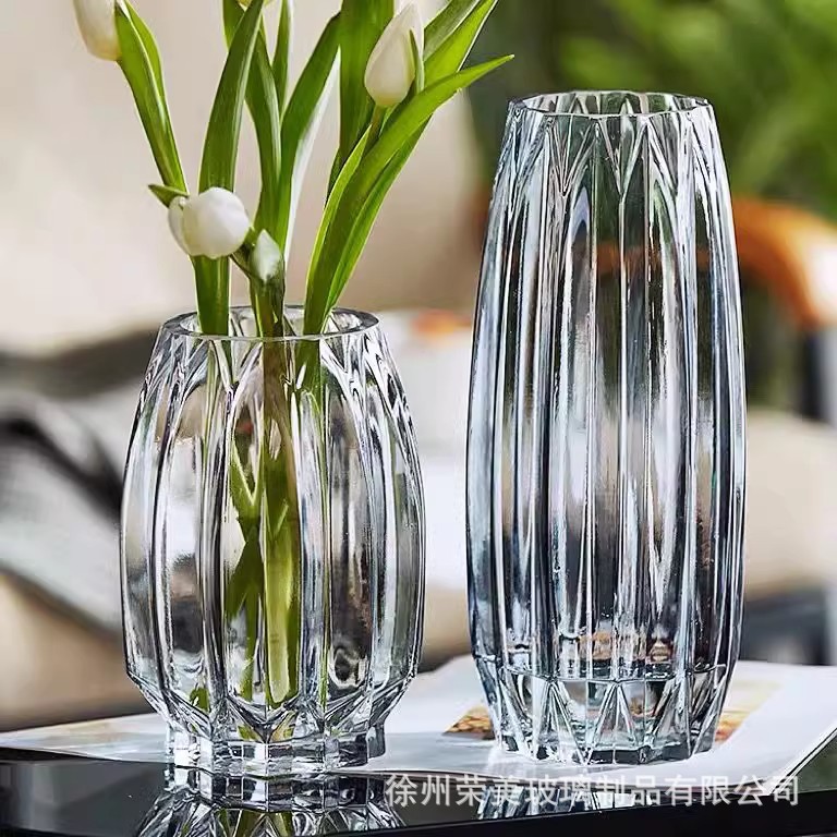 도매 간단한 북유럽 빛 럭셔리 유리 꽃병 투명 거실 꽃꽂이 물 꽃 데스크탑 장식 꽃 장식품