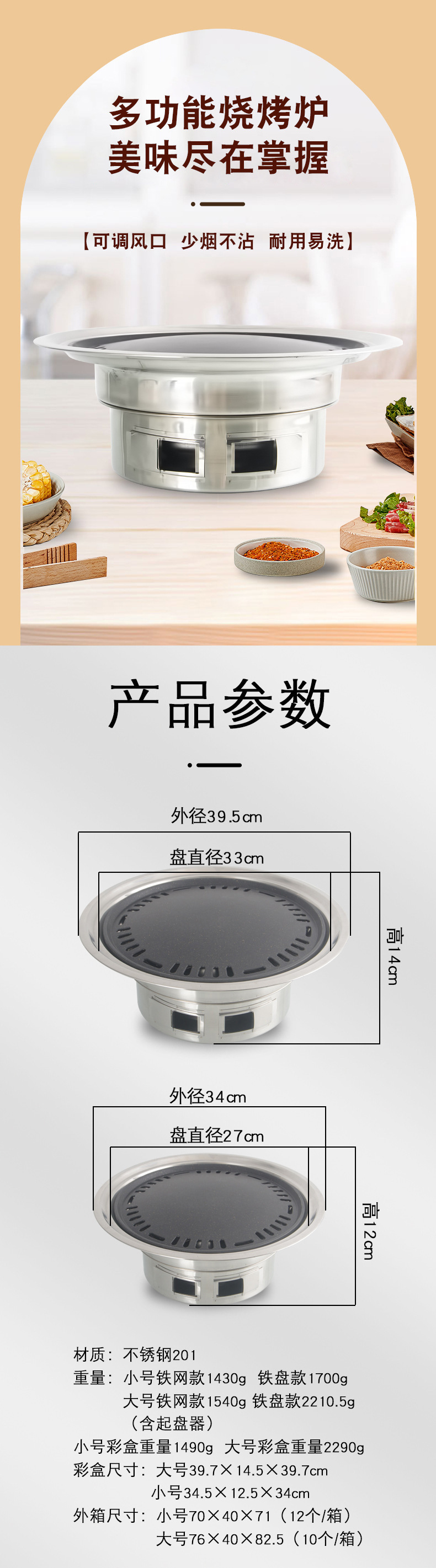 스테인레스 스틸 한국식 바베큐 그릴 숯불 그릴 작은 가정 상업 라운드 야외 캠핑 바베큐 그릴 바베큐 접시