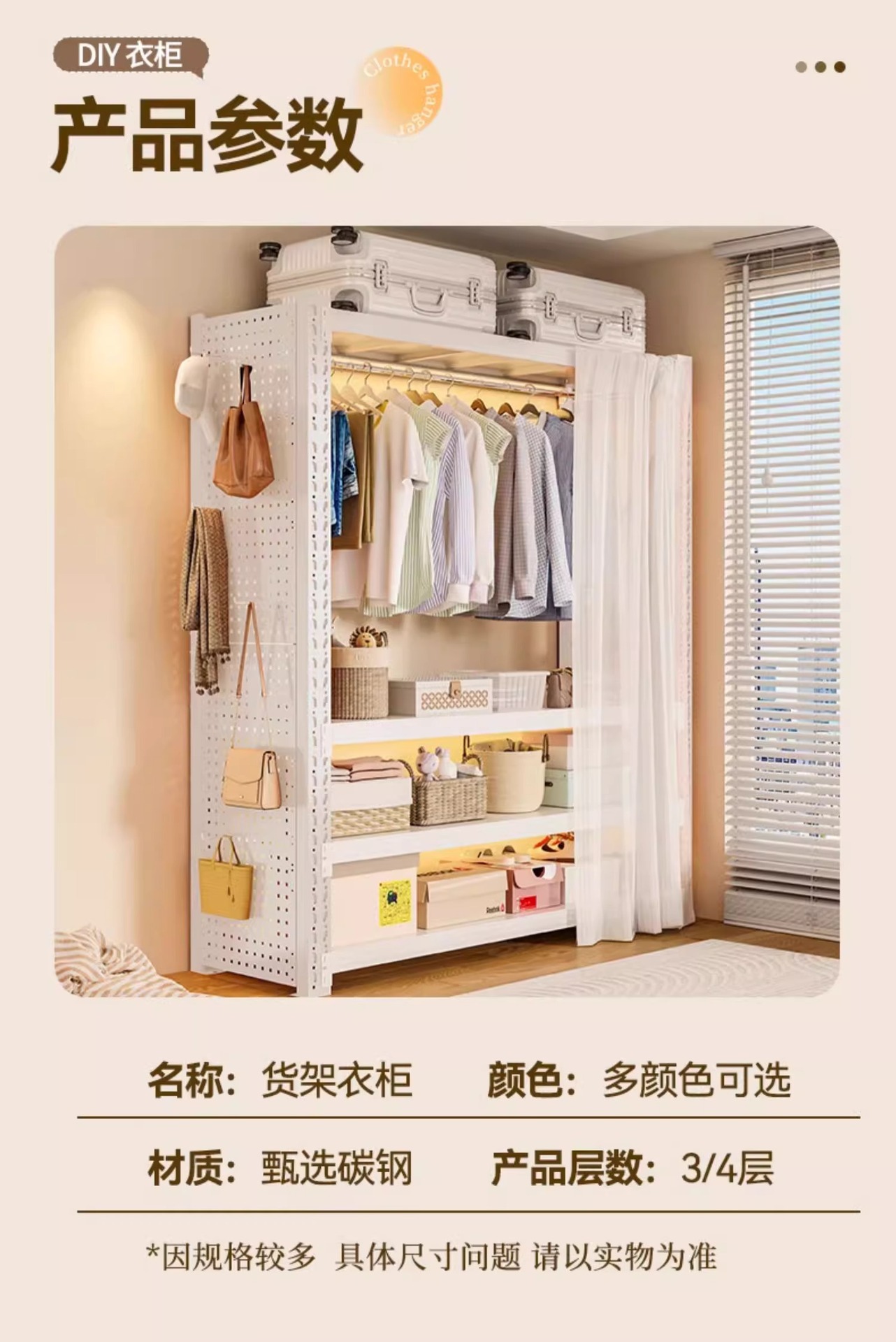 오픈 의류 옷걸이 침실 보관 캐비닛 간단한 조립 바닥 보관 랙 코트 랙 렌탈 룸 선반 옷장