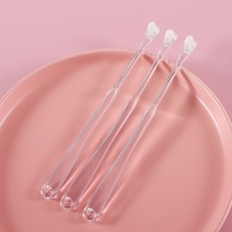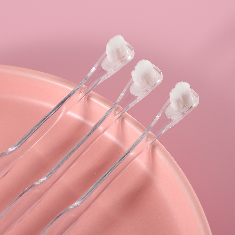 새로운 투명한 작은 머리 편안한 수천 개의 부드러운 강모 유아 칫솔 수동 크리스탈 칫솔 재고 있음스토어 가기