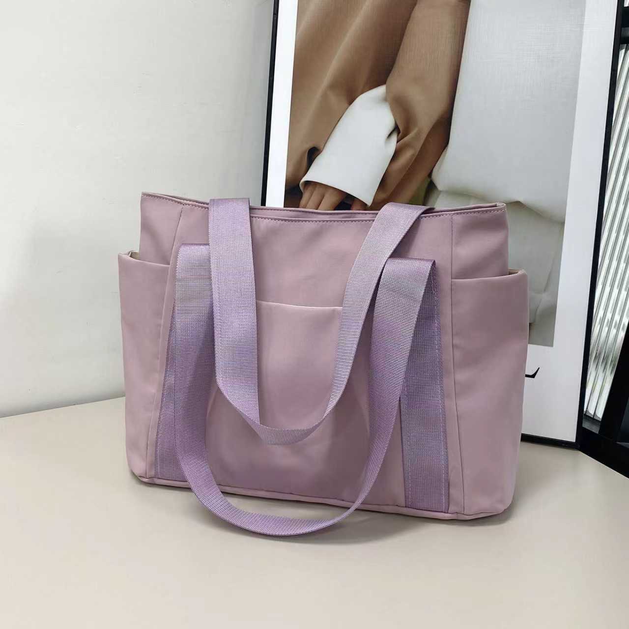 일본 스타일 단색 신상 토트백 패셔너블하고 다용도인 숄더백 심플한 출퇴근 가방 캔버스 핸드백 여성 트렌드