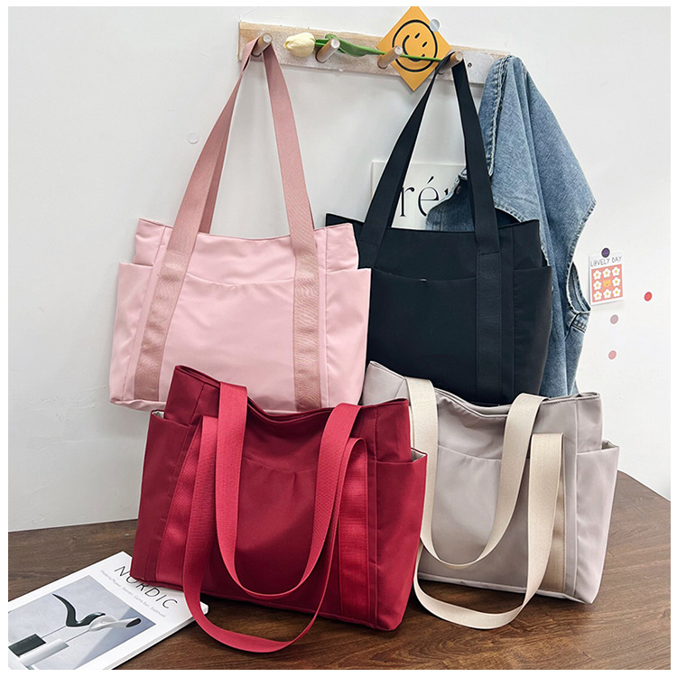 일본 스타일 단색 신상 토트백 패셔너블하고 다용도인 숄더백 심플한 출퇴근 가방 캔버스 핸드백 여성 트렌드스토어 가기