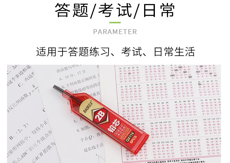 Baoke 학생용 응답 시트 리드 컴퓨터 읽기 시험 카드 2B 연필심 교체 도매 QX116