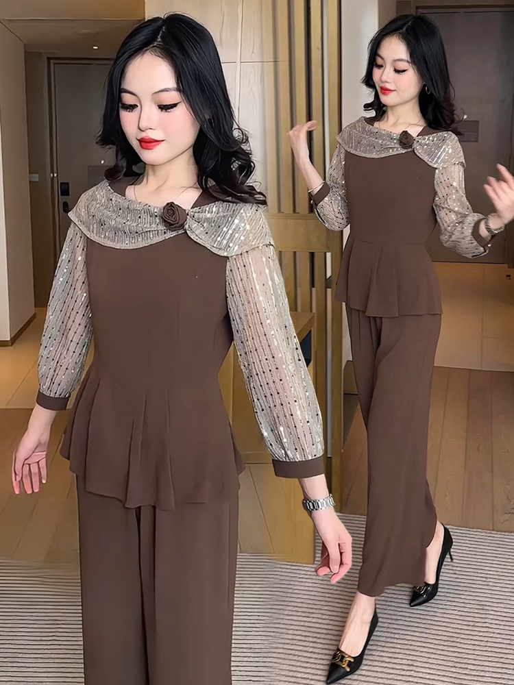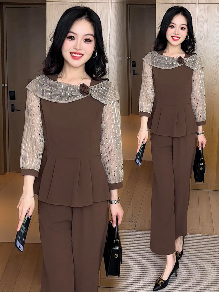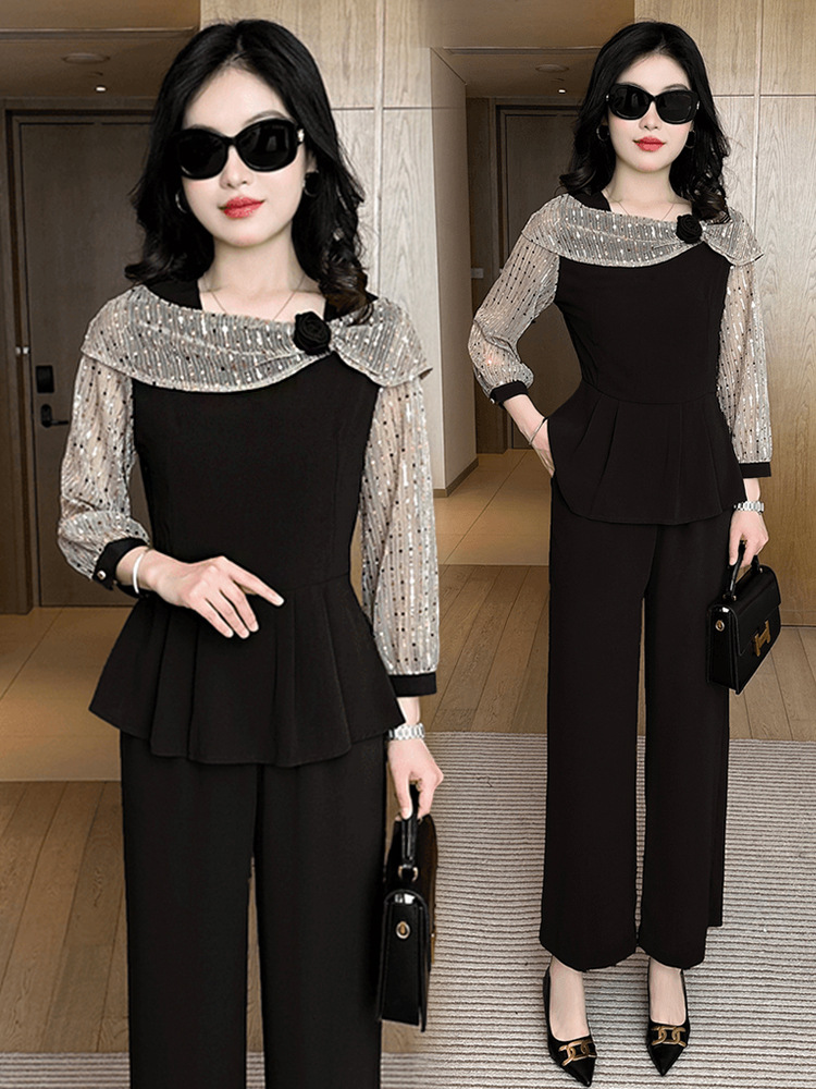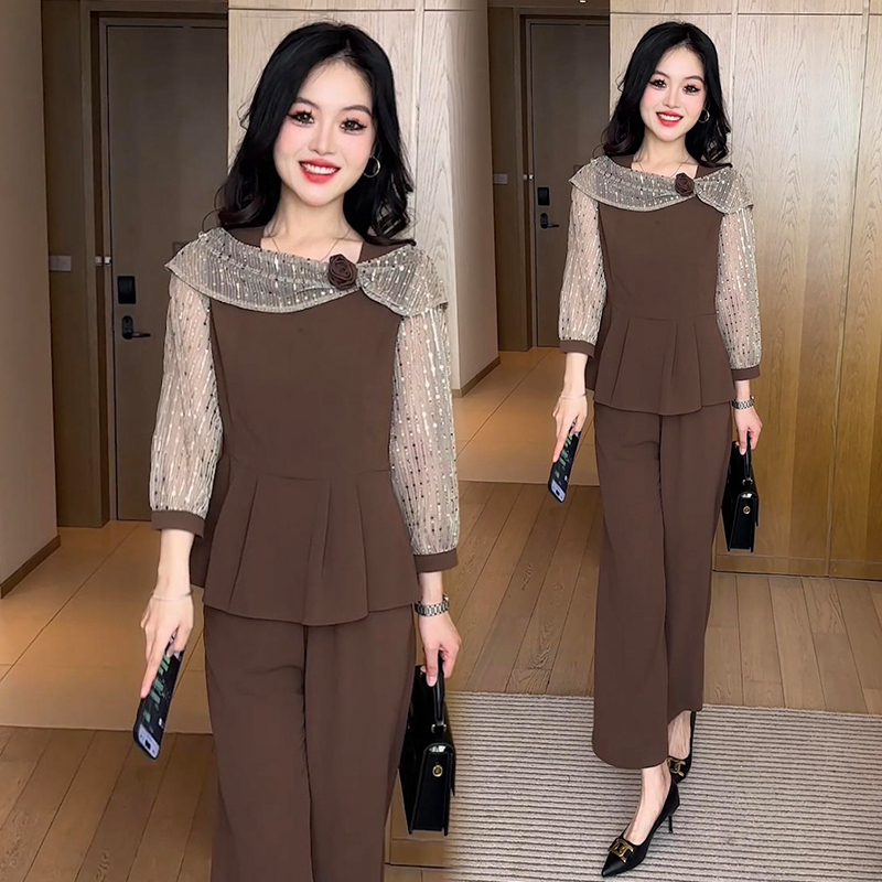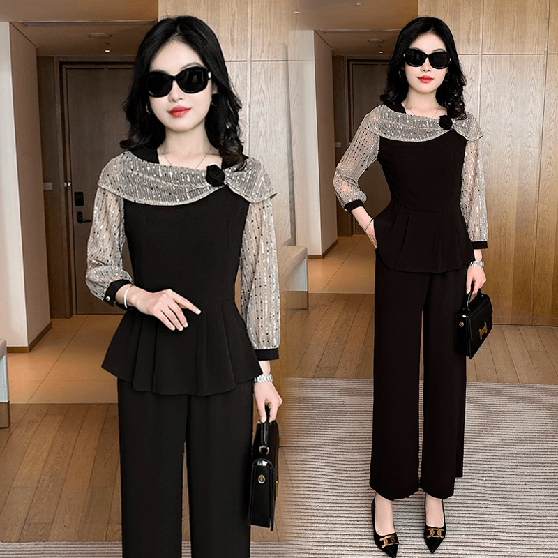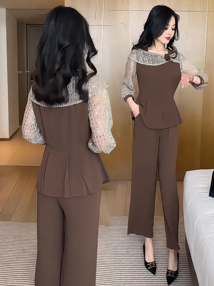 유럽 패션 아마존 레이스 쉬폰 세트 여성 2025 봄과 여름 새로운 수직 느낌 작은 스타일 외국 스타일 2 피스 세트
