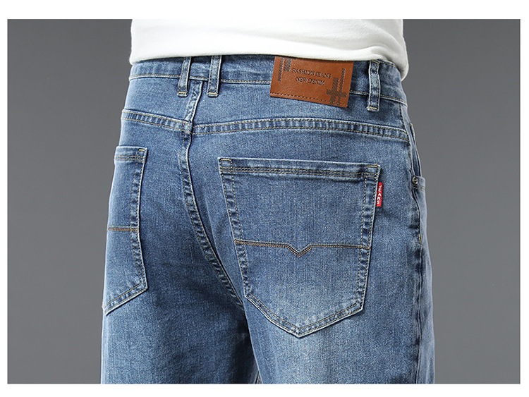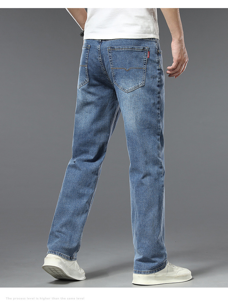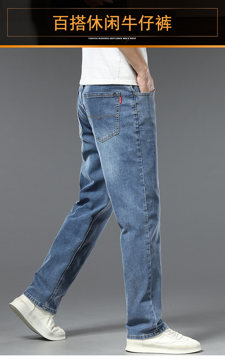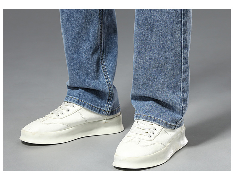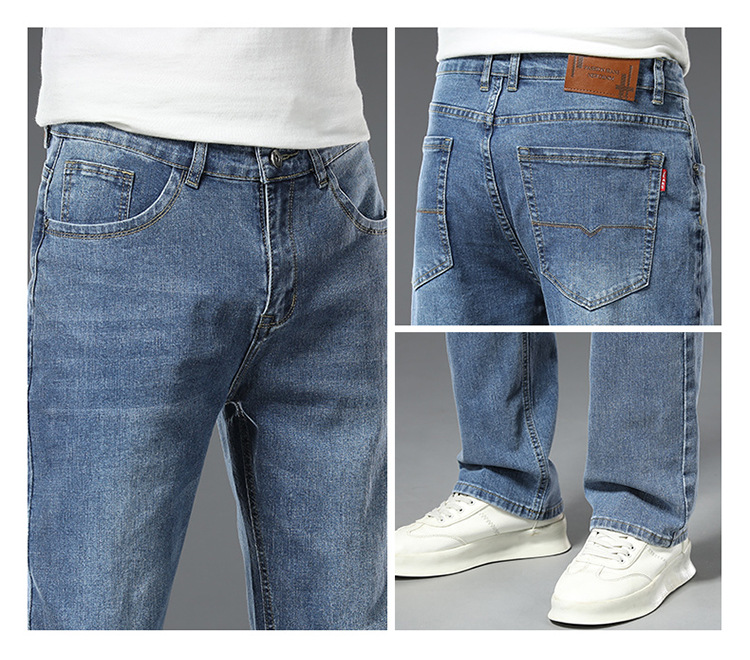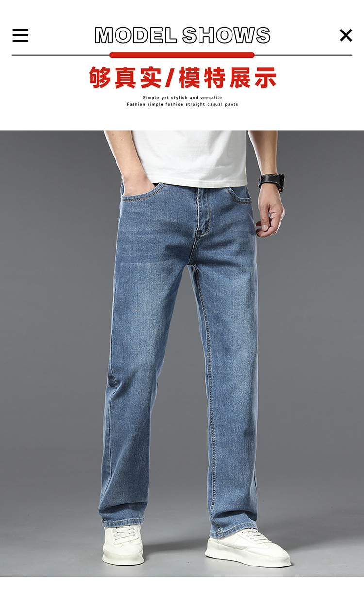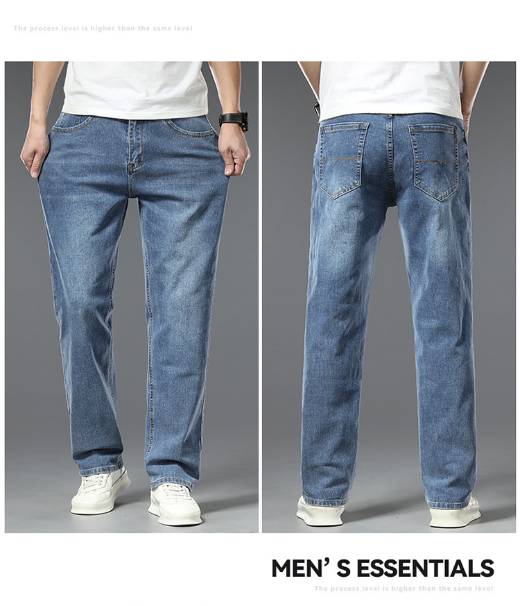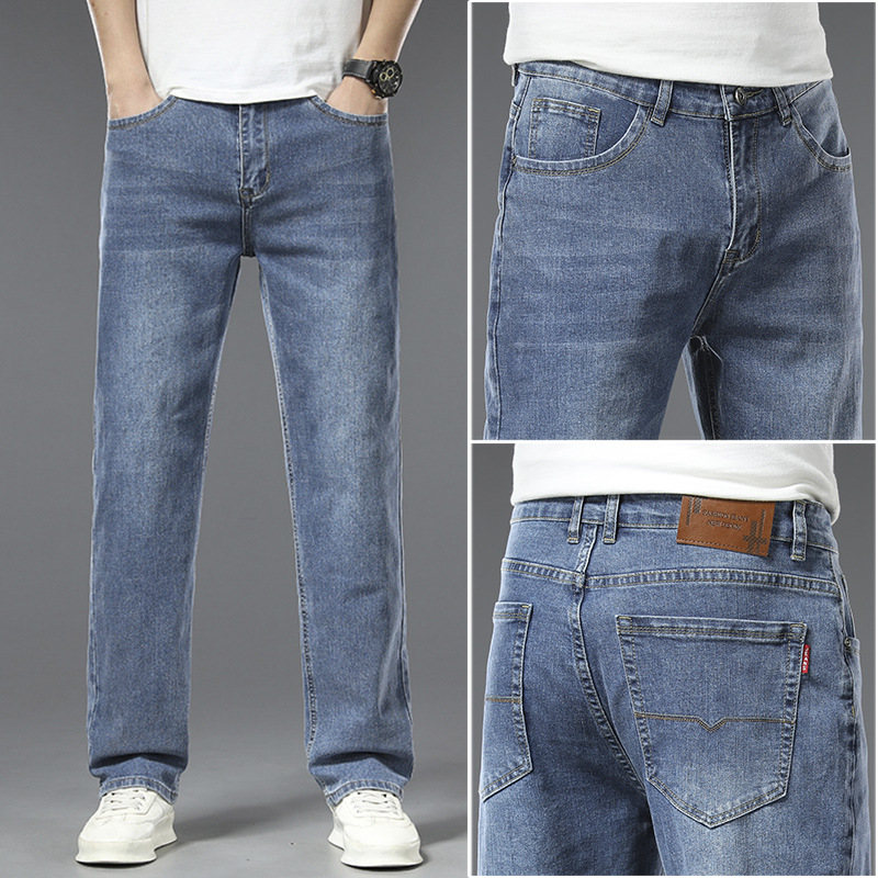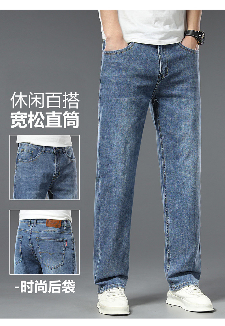 편안한 청바지, 얇은 연색 청바지, 남성용 스트레이트 루즈핏, 부드러운 얇은 청바지, 남성용 긴바지, 와이드 레그, 고급형스토어 가기