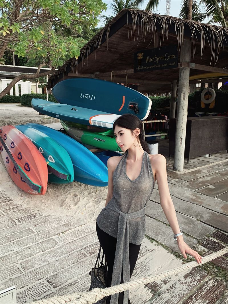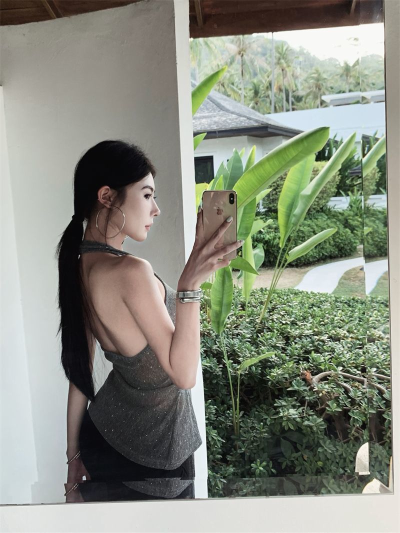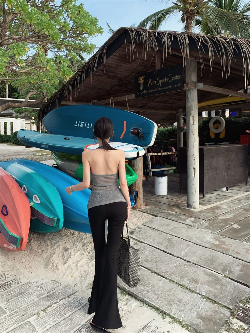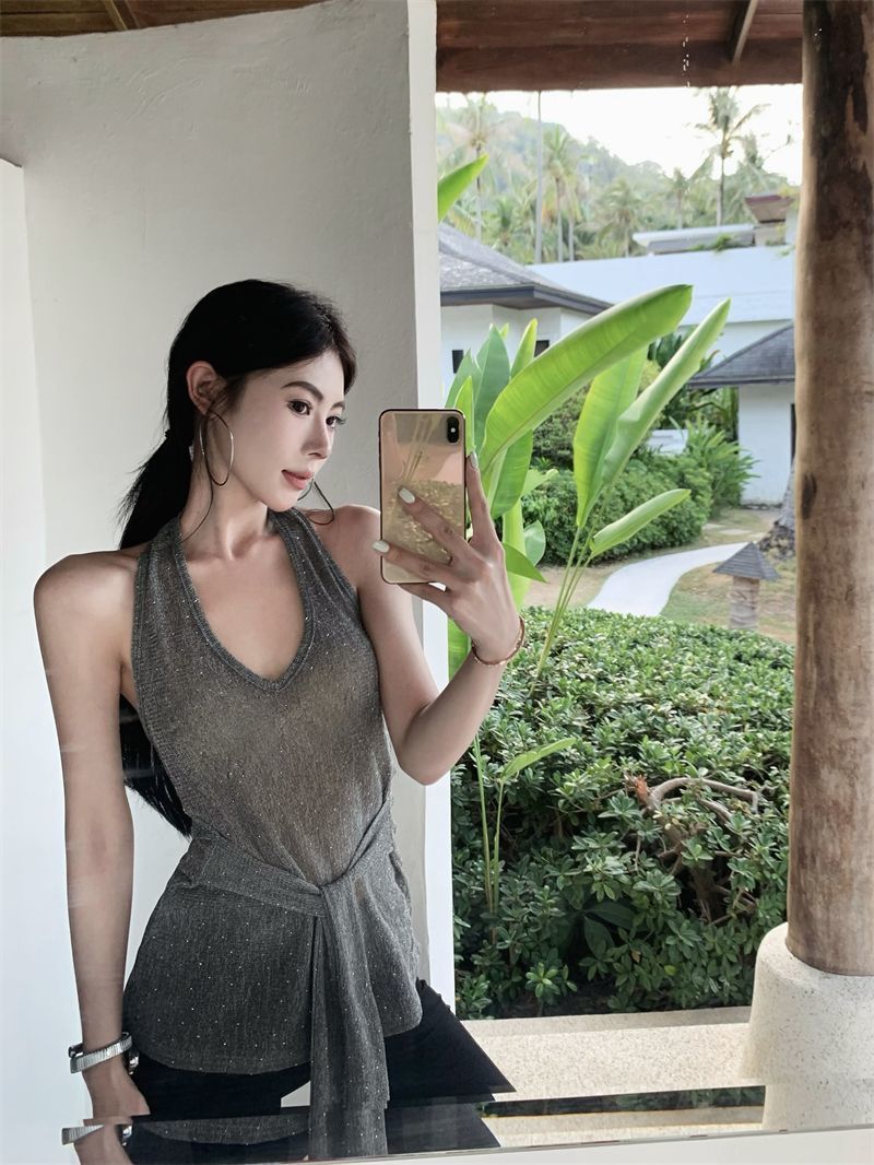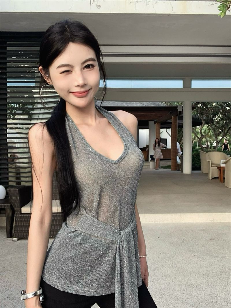 뜨거운 소녀 핫 다이아몬드 아름다운 등 교수형 목 조끼 여성 여름 스트랩 슬림핏 민소매 외주 디자인 센스 그레이베이스 탑