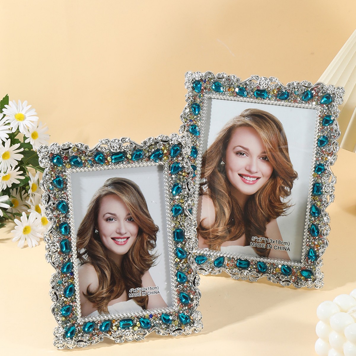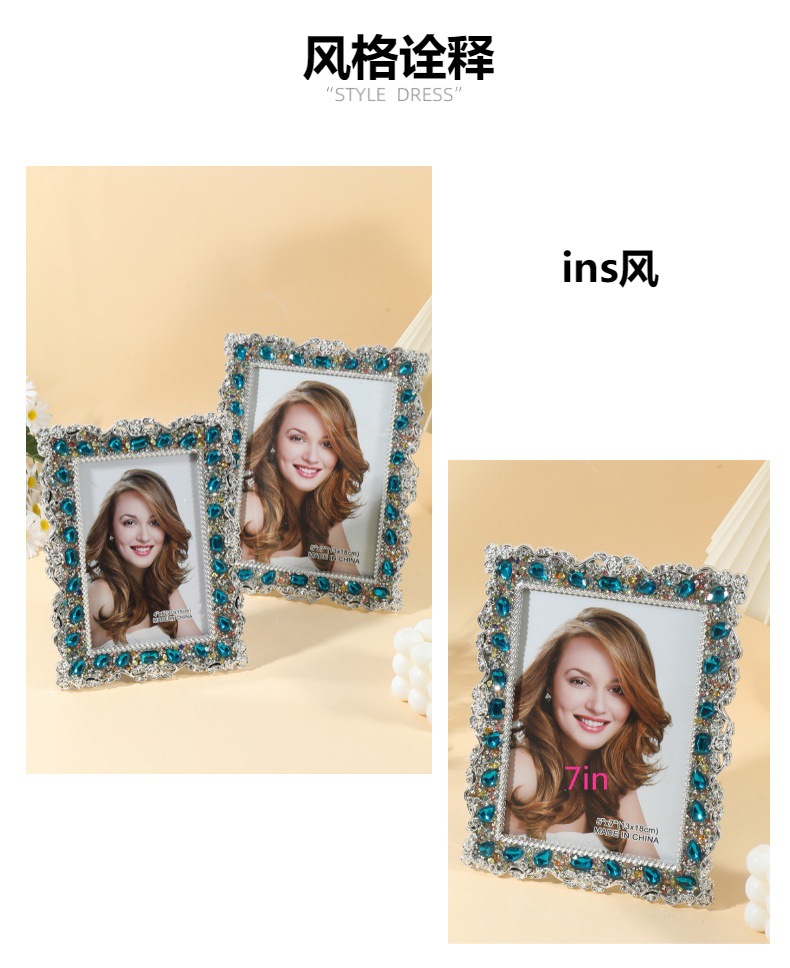 2043 포토 프레임 테이블, 고급 인레이 라인스톤, 심플 테이블, 어린이 커플 웨딩 사진 크리에이티브 오너먼트